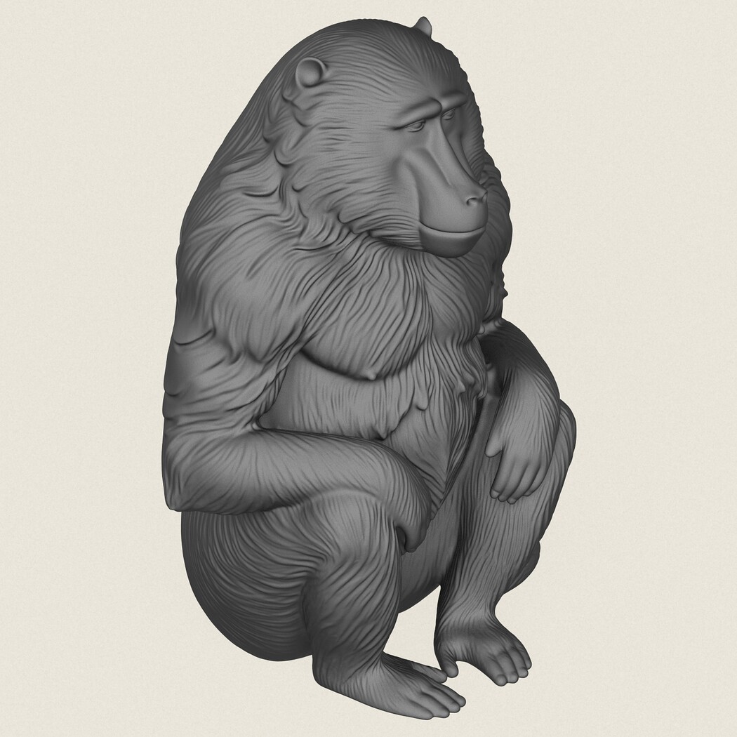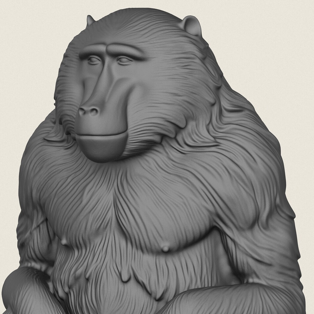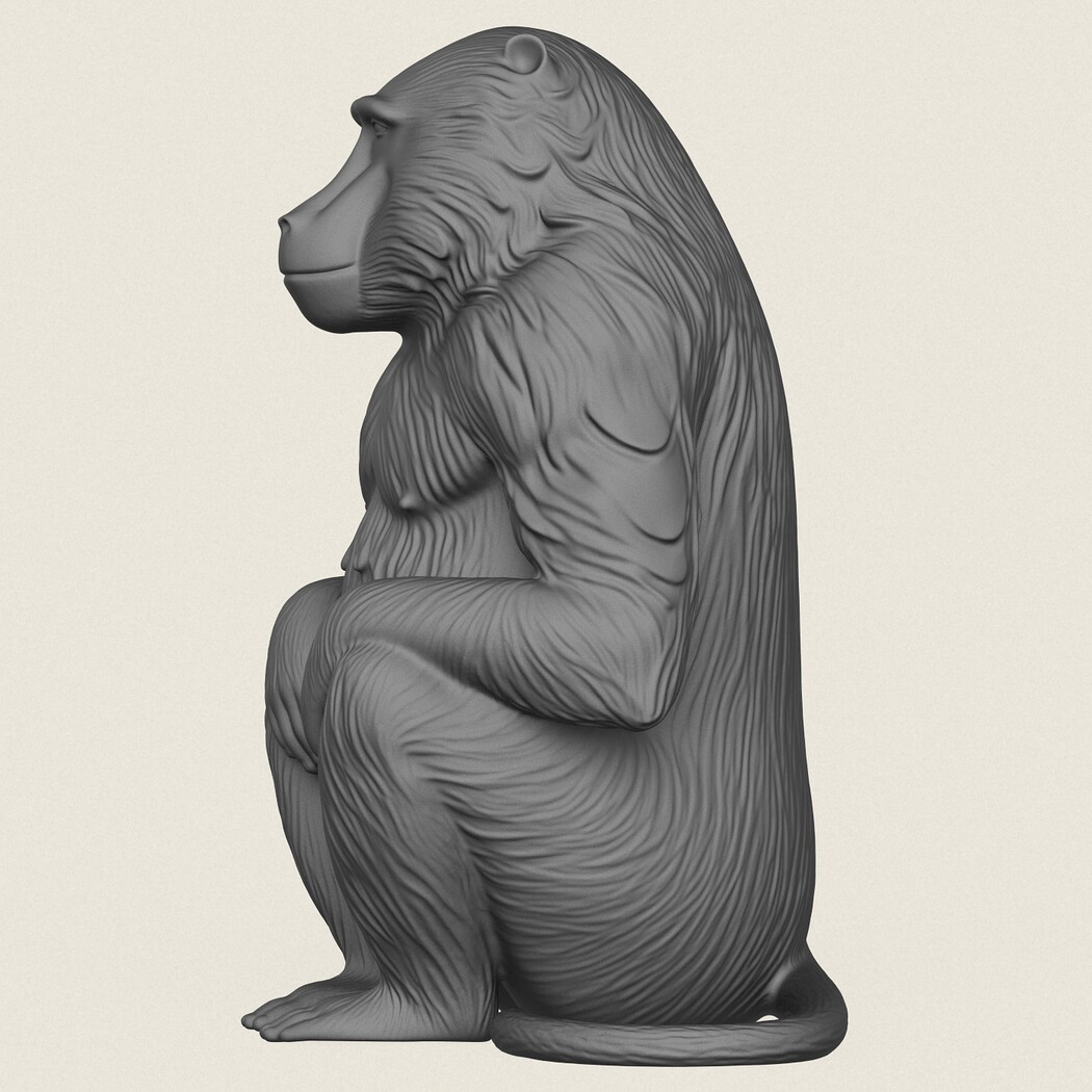 Baboon Monkey Sitting, Print Ready 3D Model.