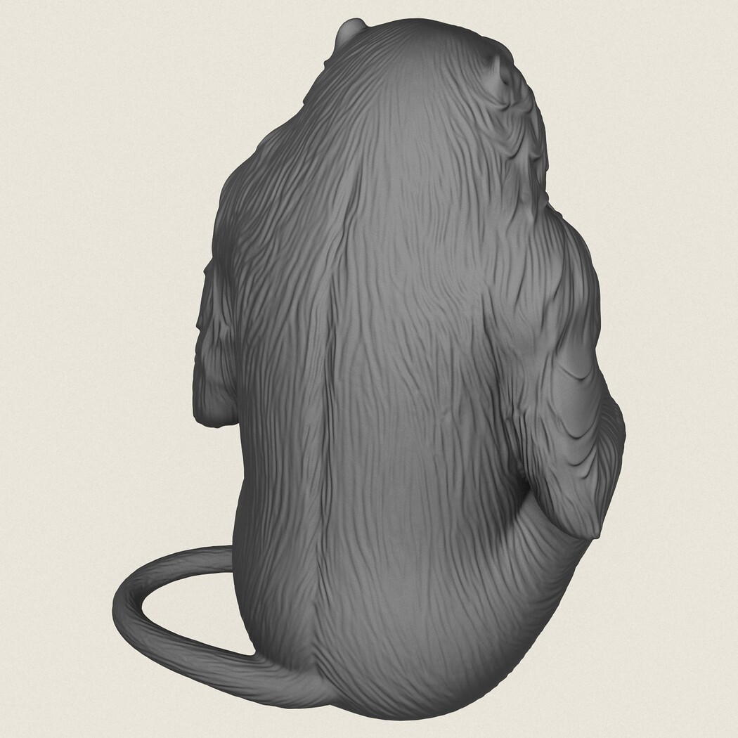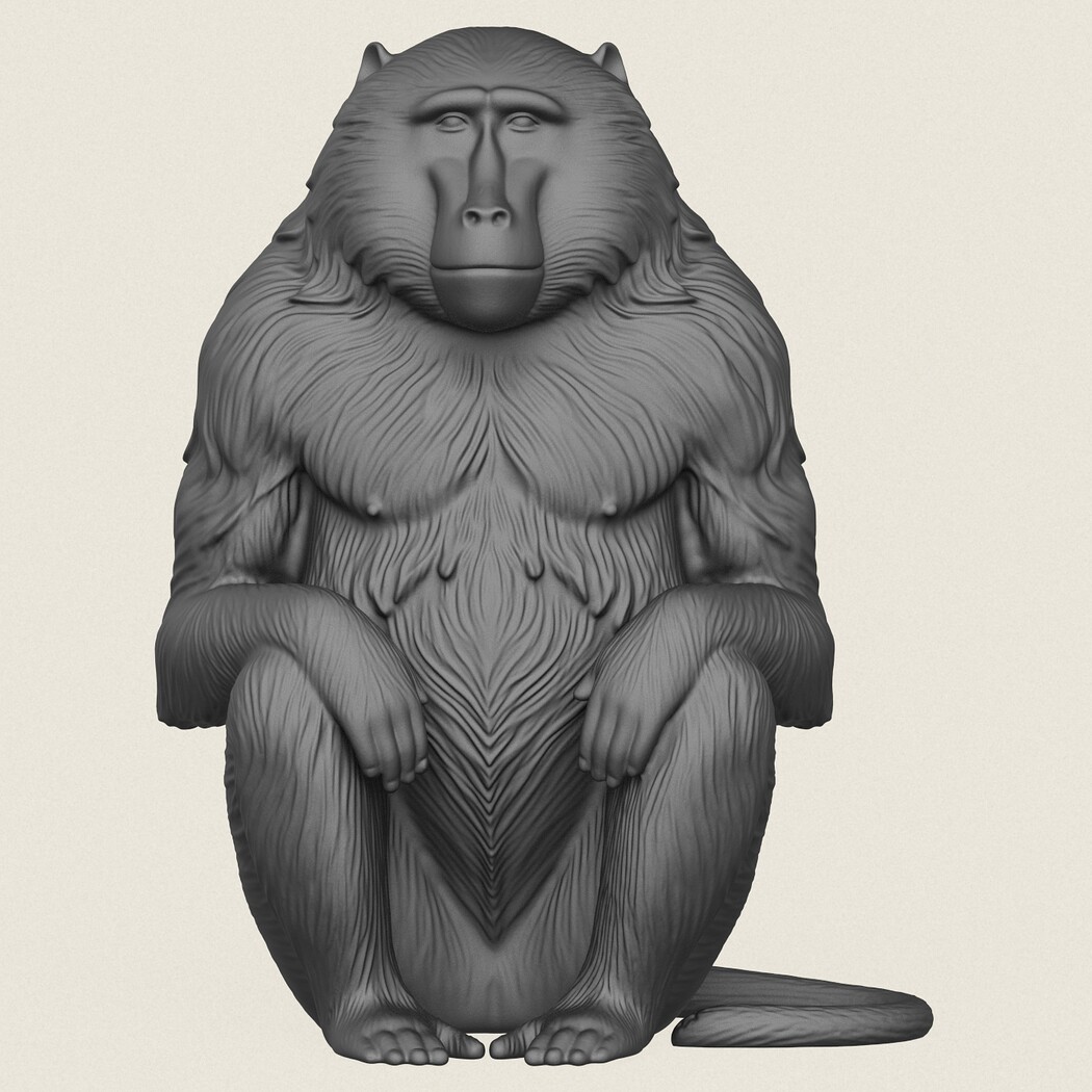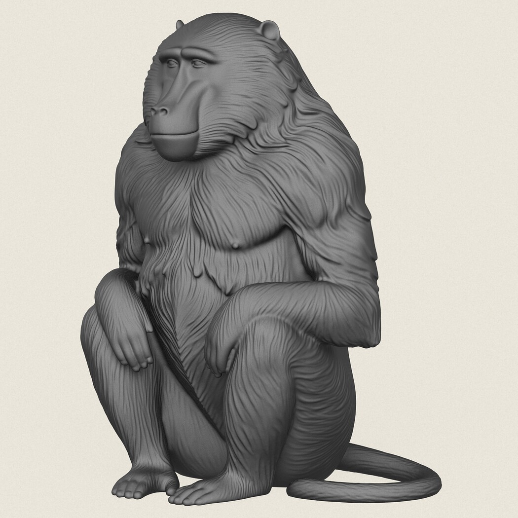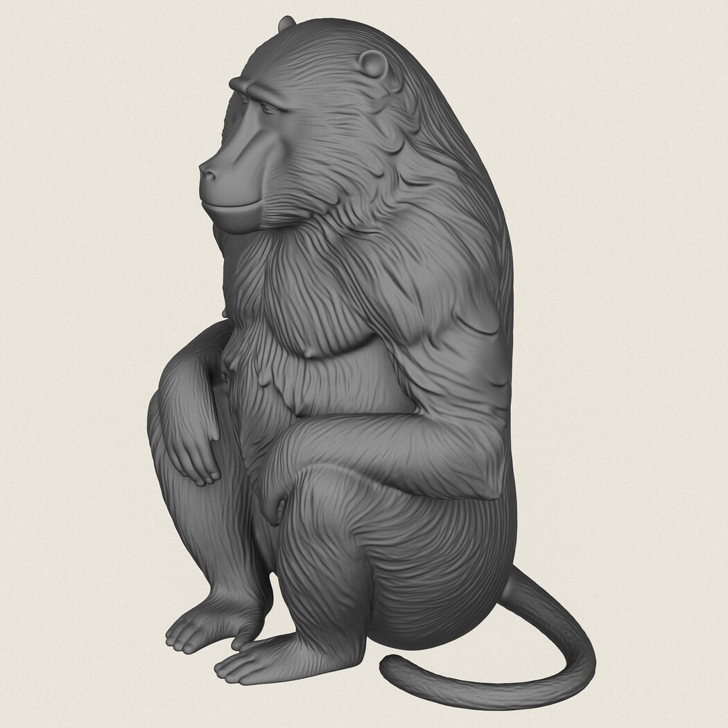 Baboon Monkey Sitting, Print Ready 3D Model.