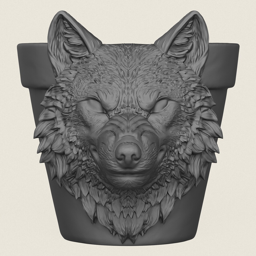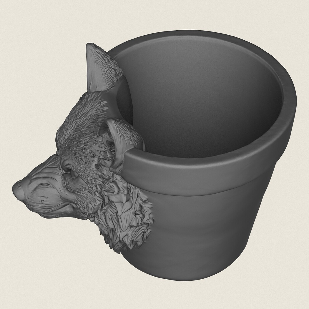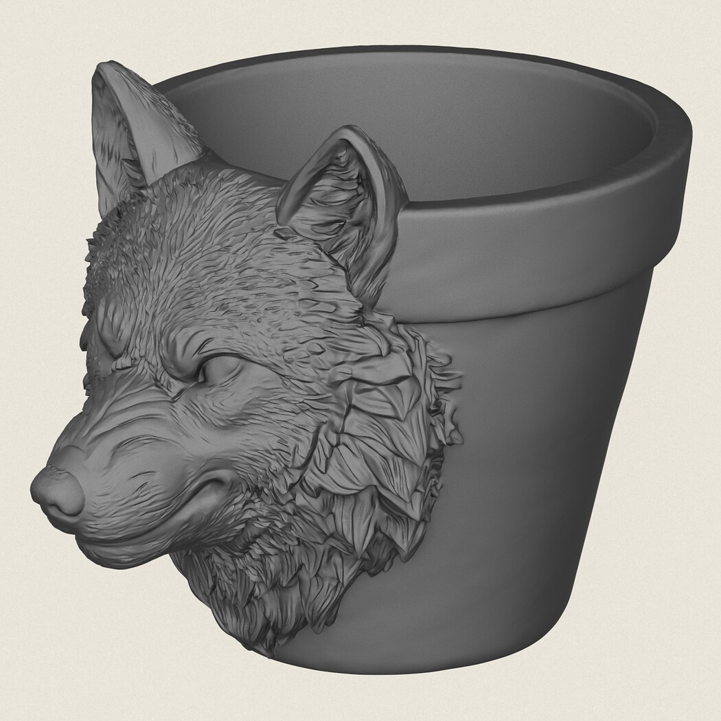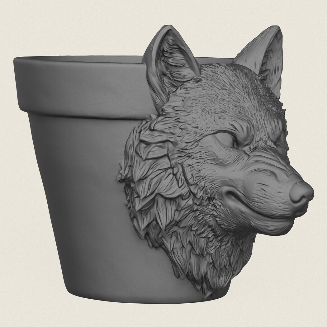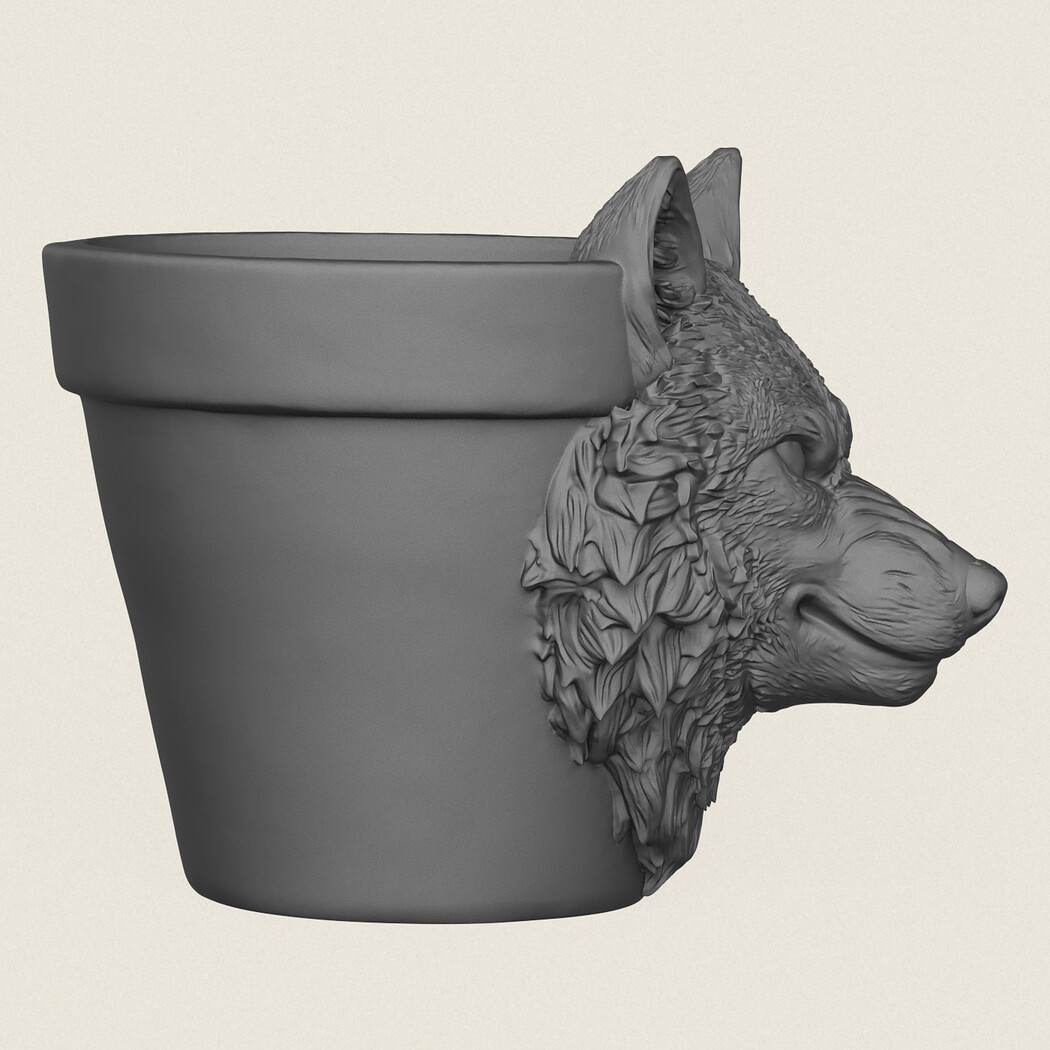 Wolf Head Planter, Print Ready 3D Model.