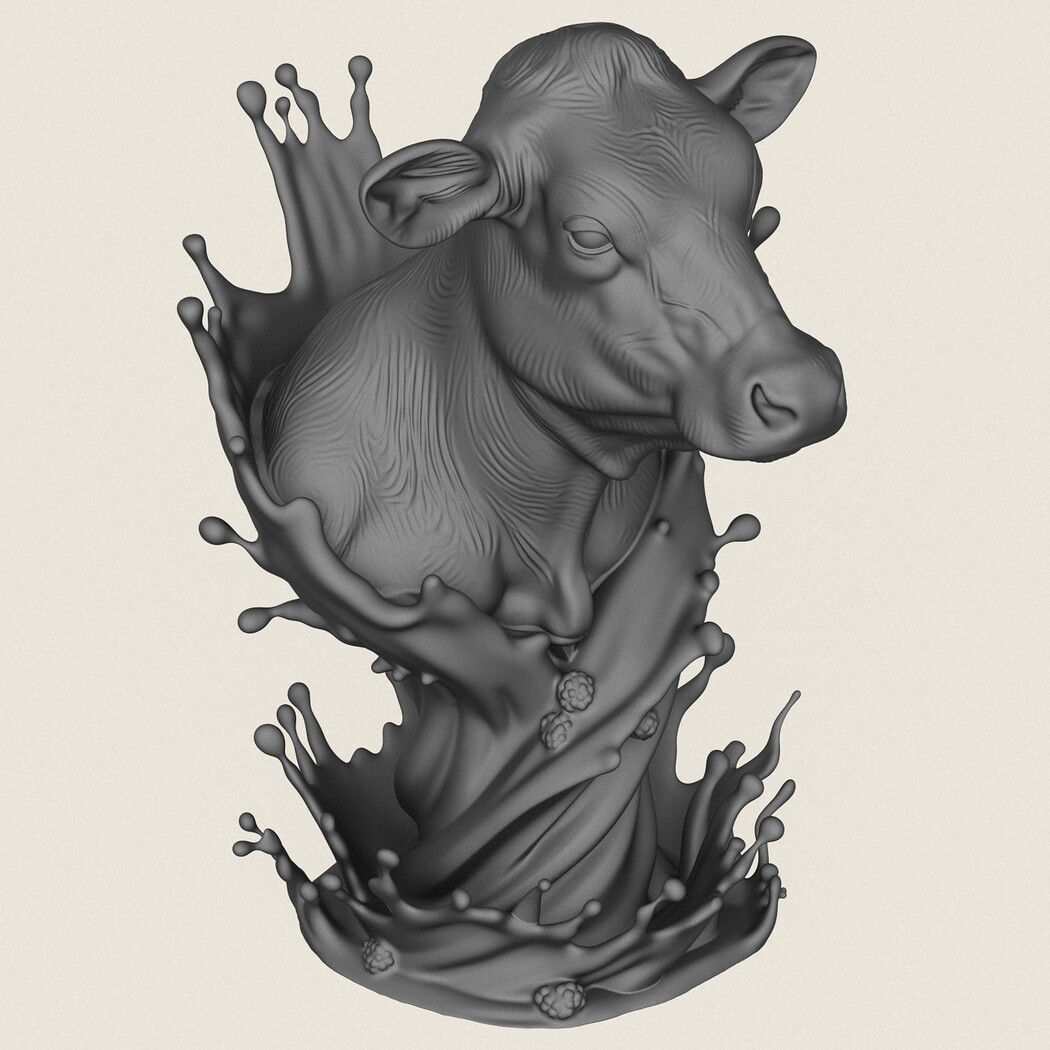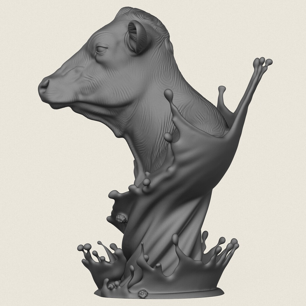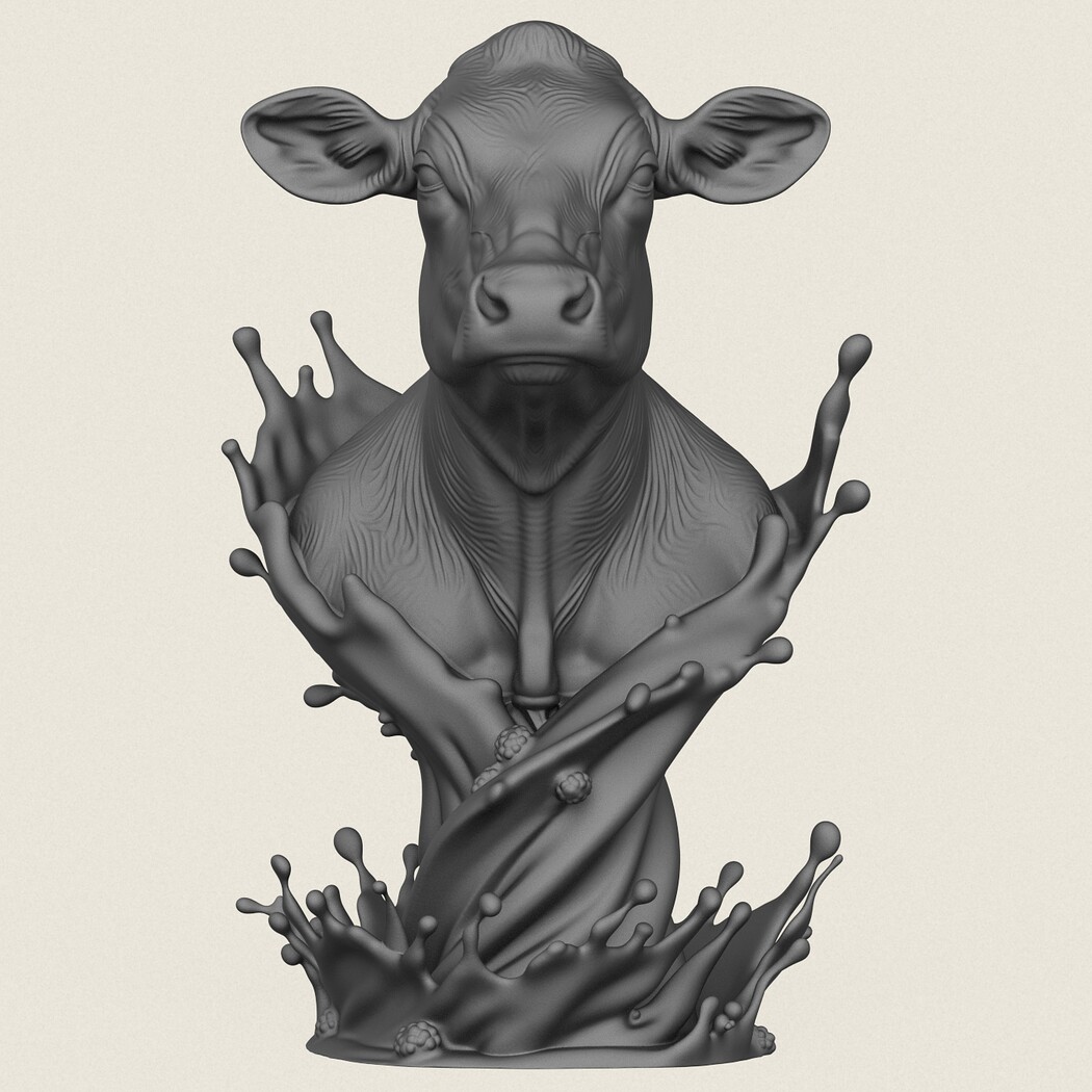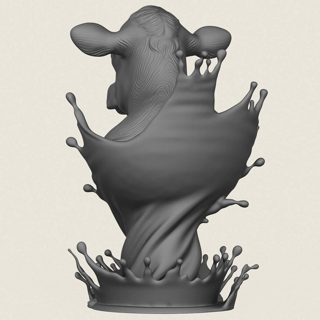 Milk Splash Cow Bust, Print Ready 3D Model.