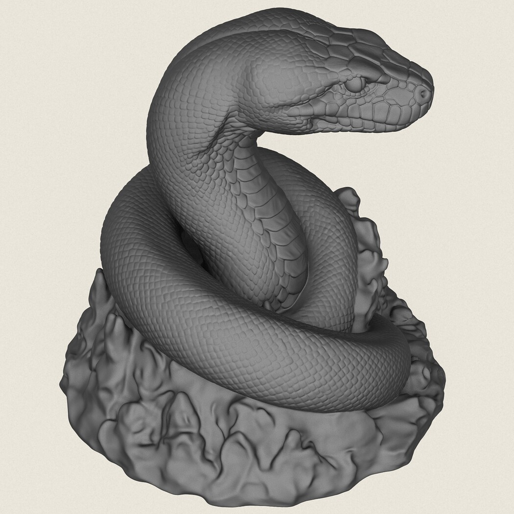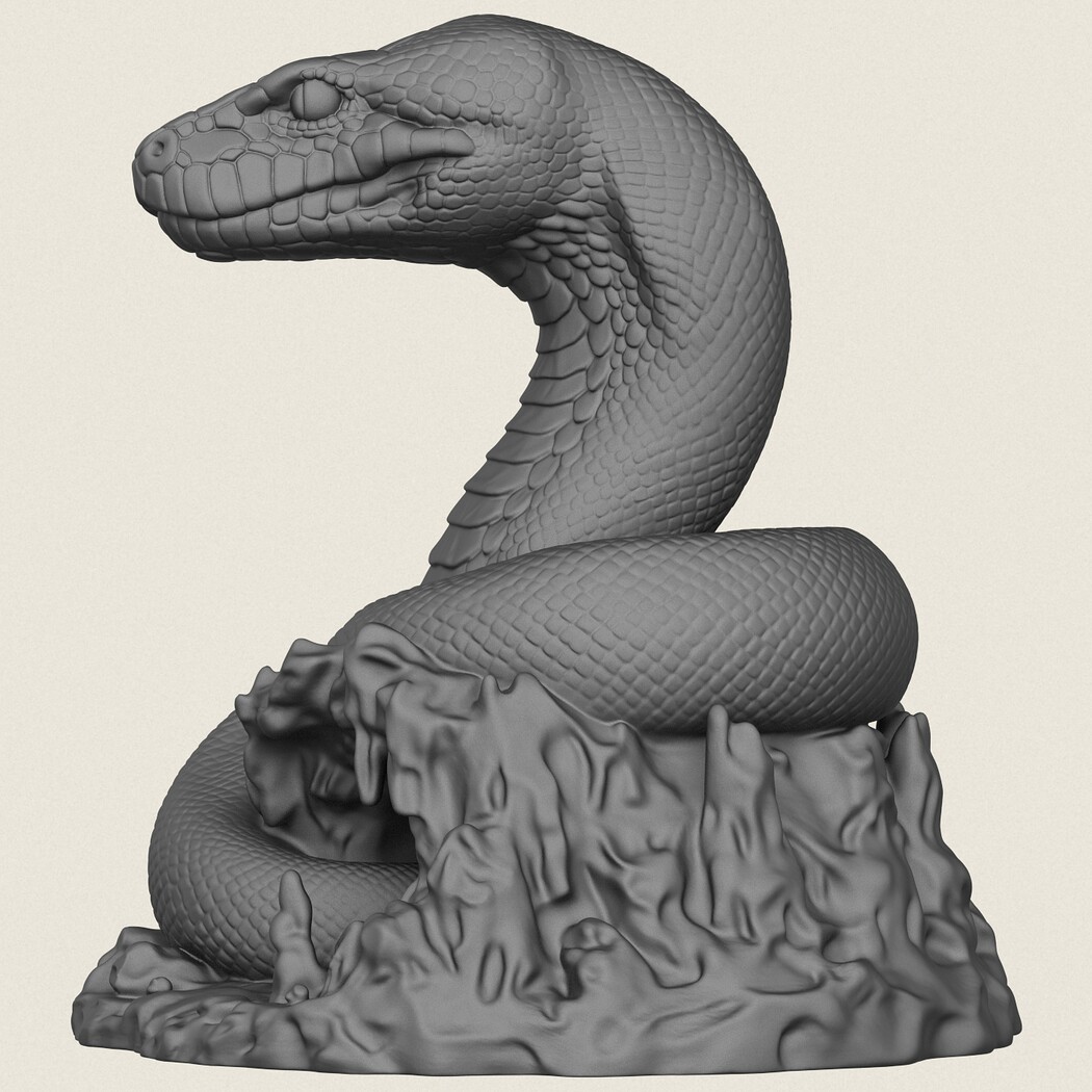 Anaconda Snake Cave Bust, Print Ready 3D Model.