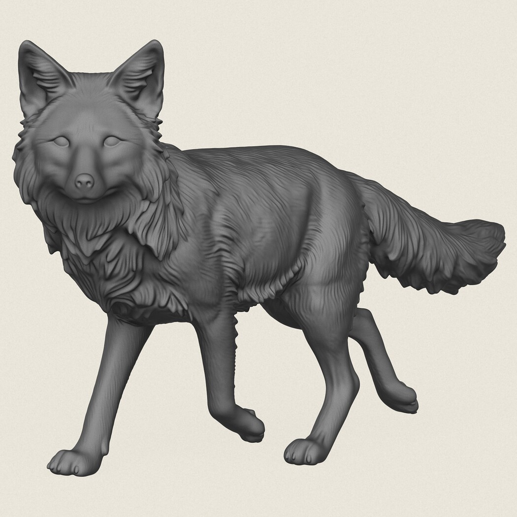 Wild Fox Walking, Print Ready 3D Model.
