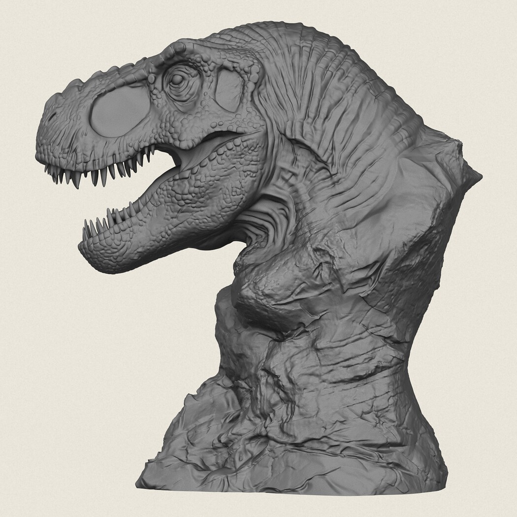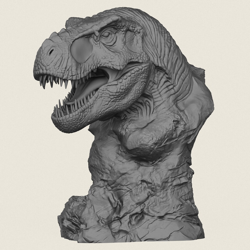 Trex Dinosaur Bust Statue, Print Ready 3D Model.