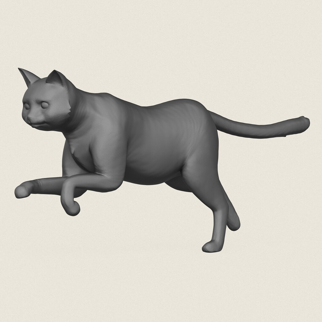 Cat Run Pose, Print Ready 3D Model.