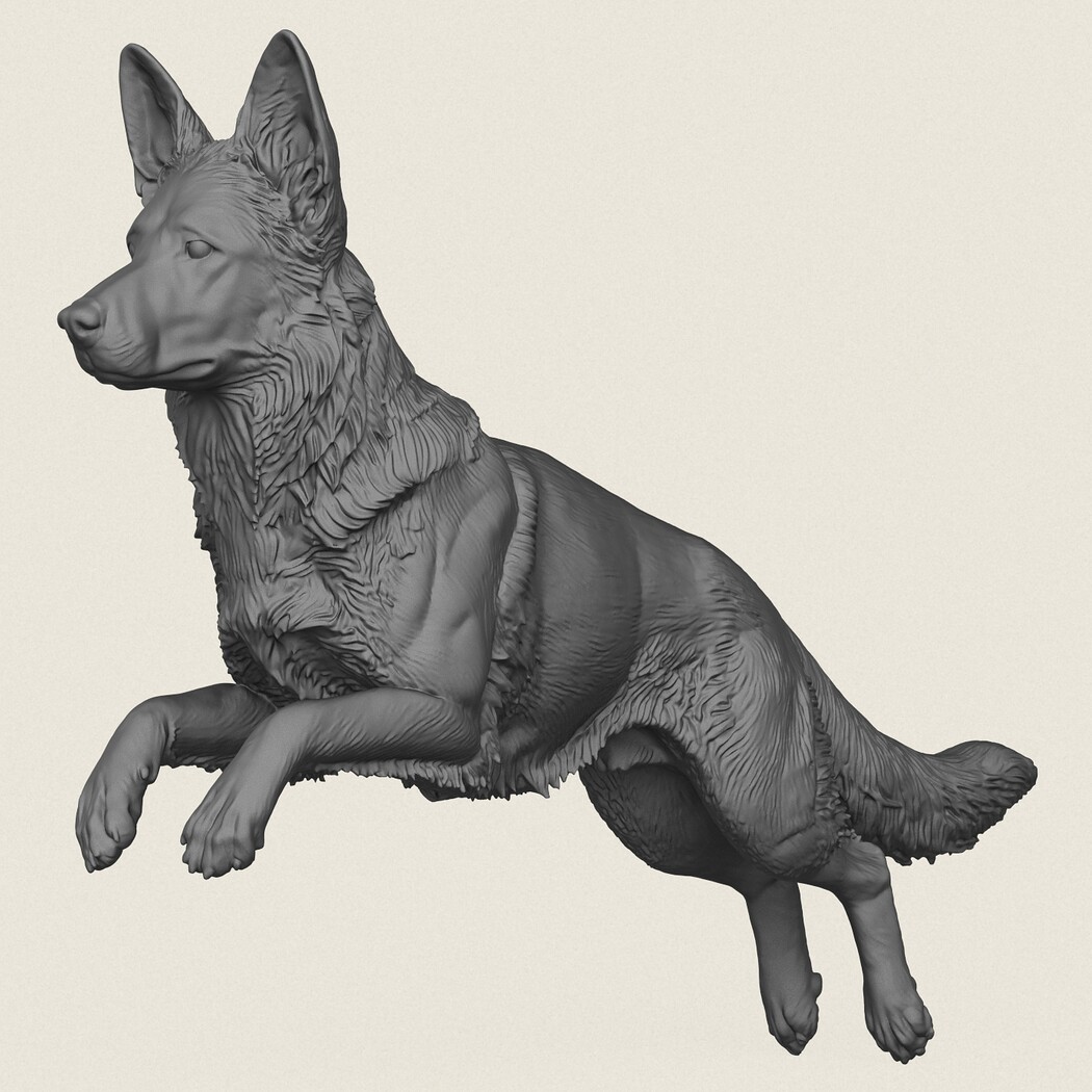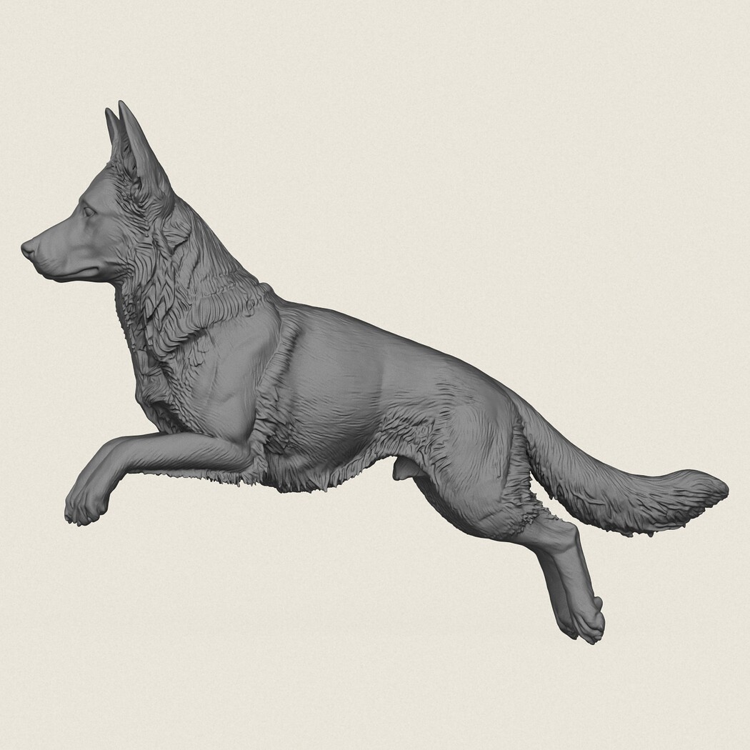 German Shepherd Dog Jumping, Print Ready 3D Model.