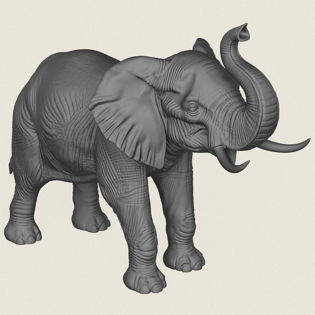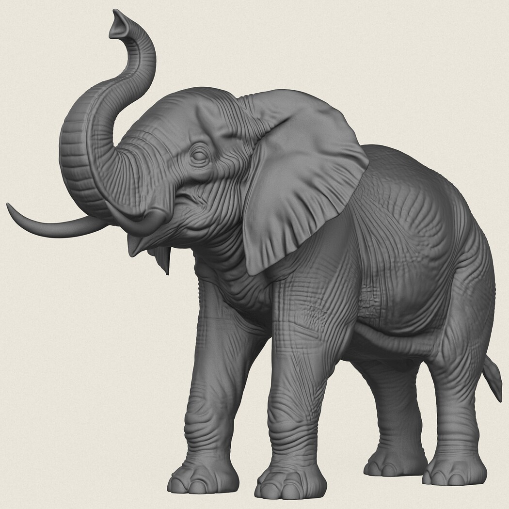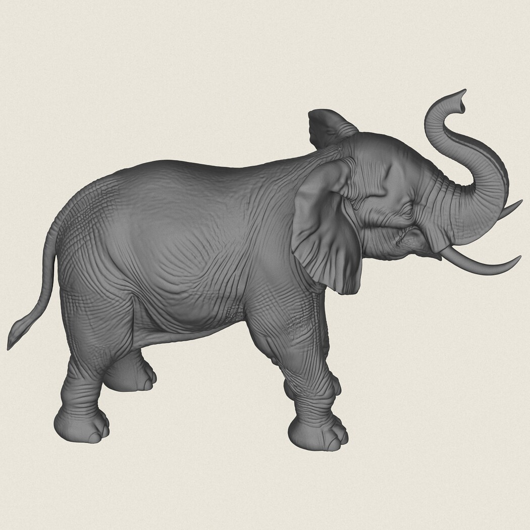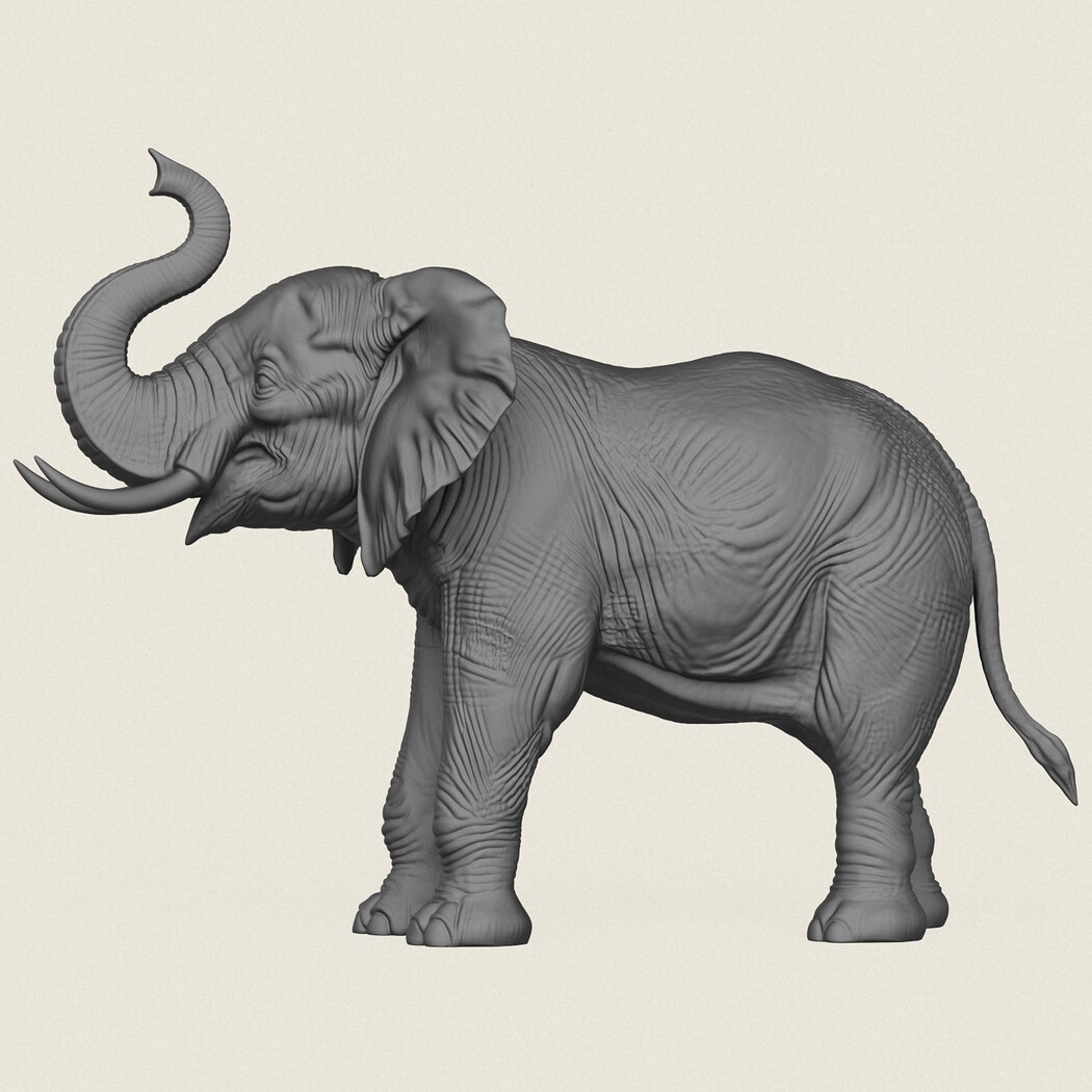 Asian Elephant Salute Pose, Print Ready 3D Model.