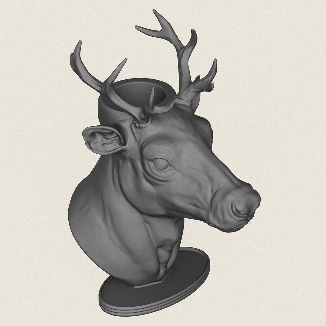 Deer Head Candle Holder, Print Ready 3D Model.