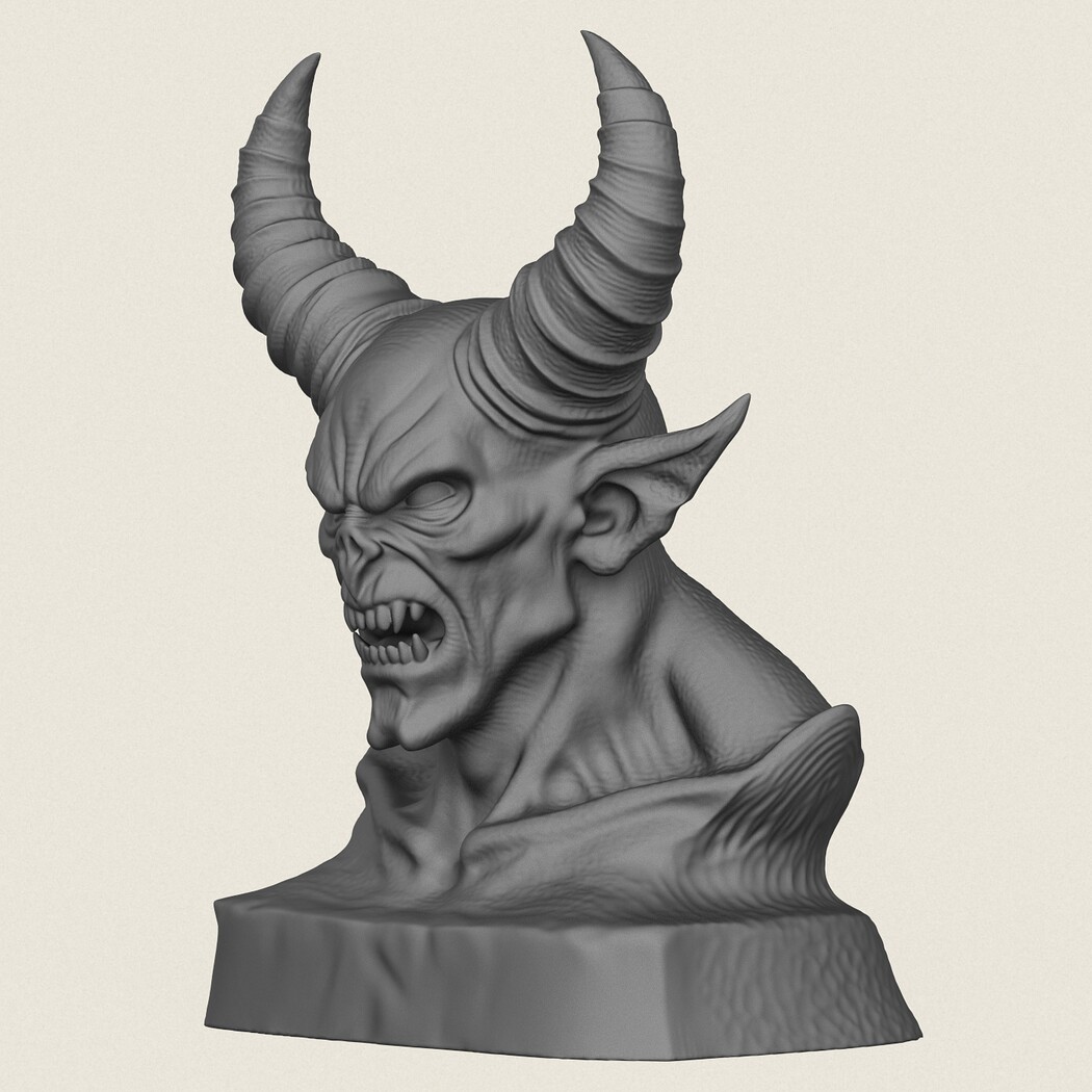 Monster Demon Bust, Print Ready 3D Model.