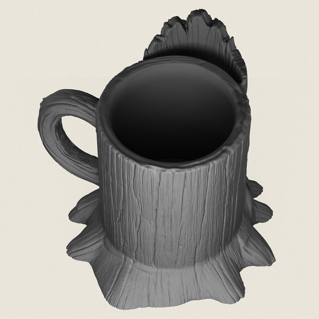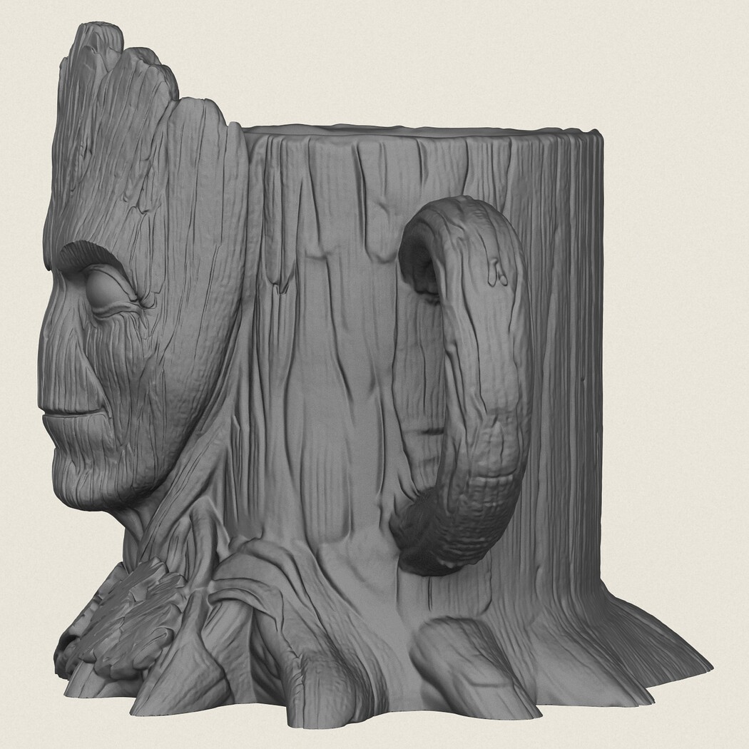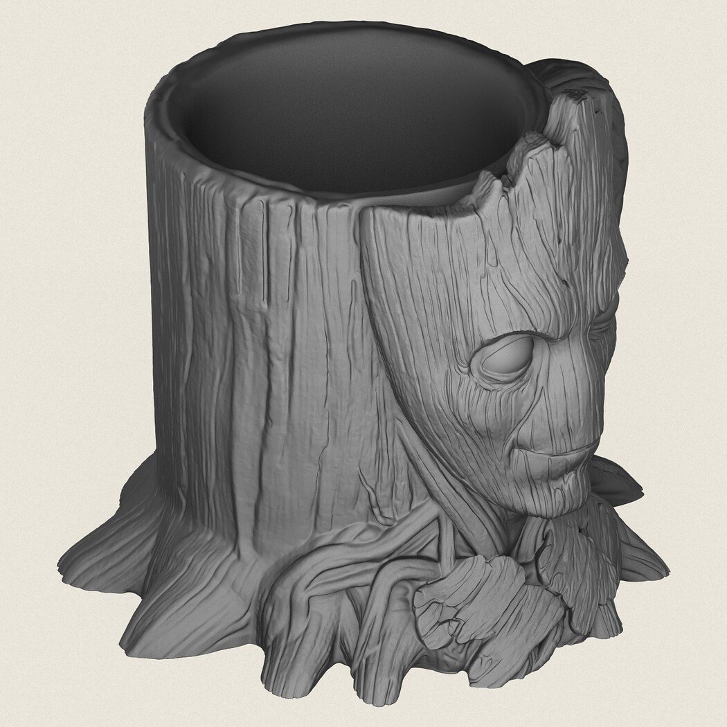 Groot Head Wooden Stump Mug, Print Ready 3D Model.