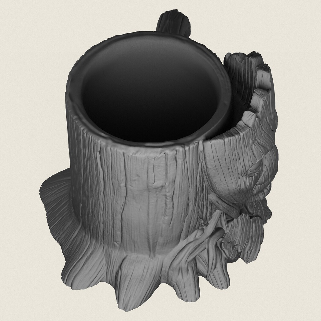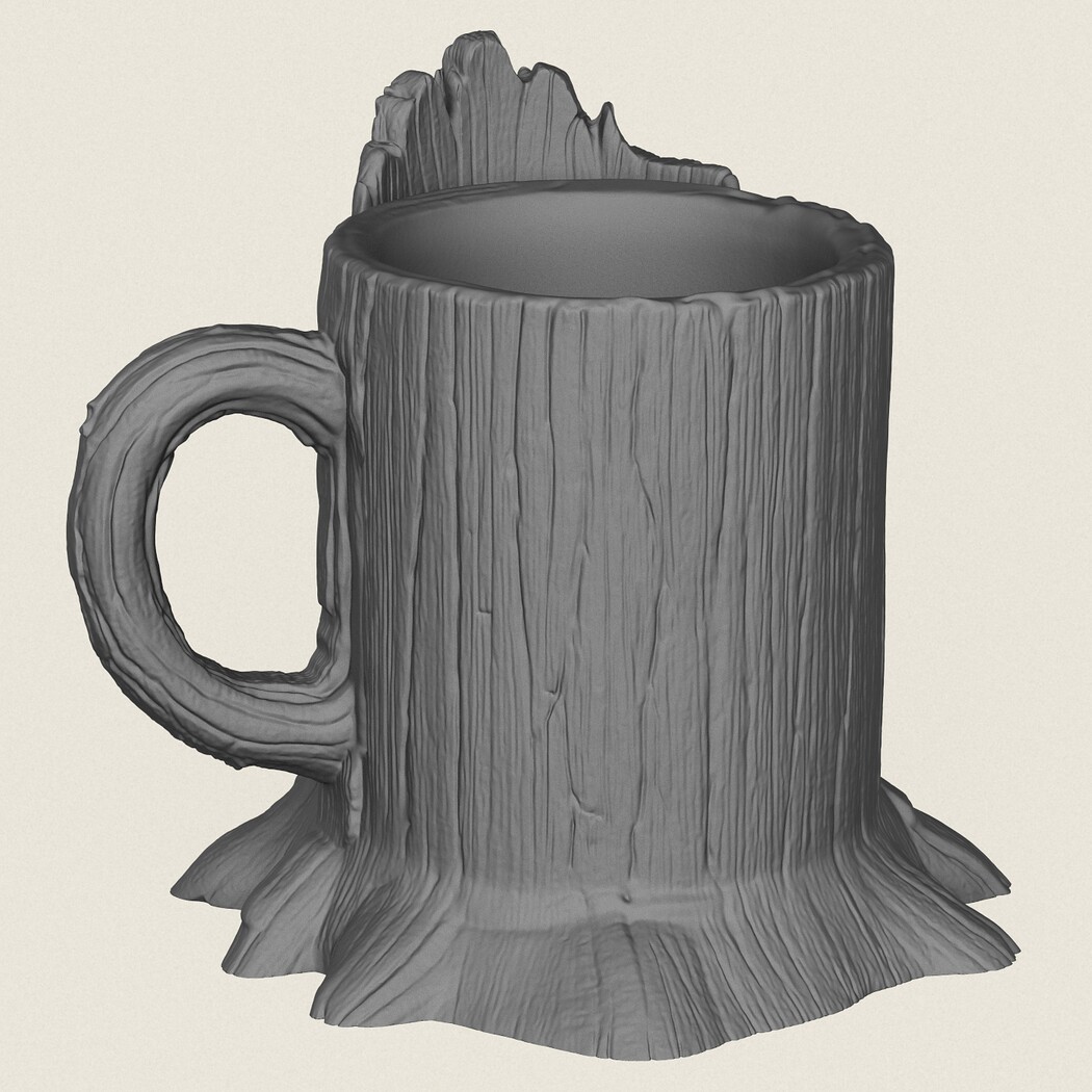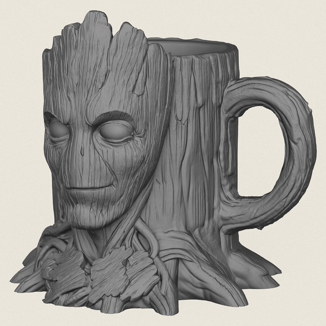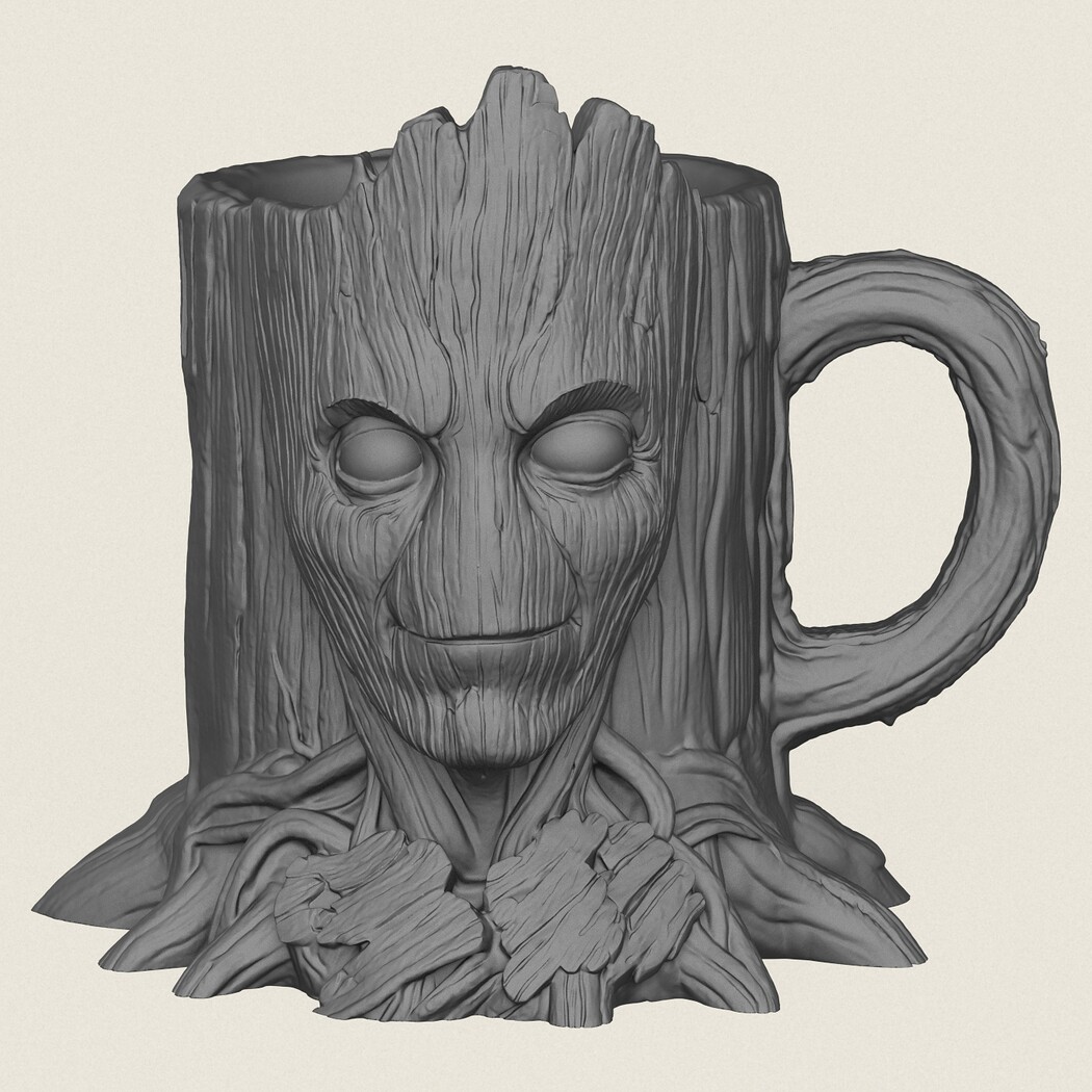 Groot Head Wooden Stump Mug, Print Ready 3D Model.