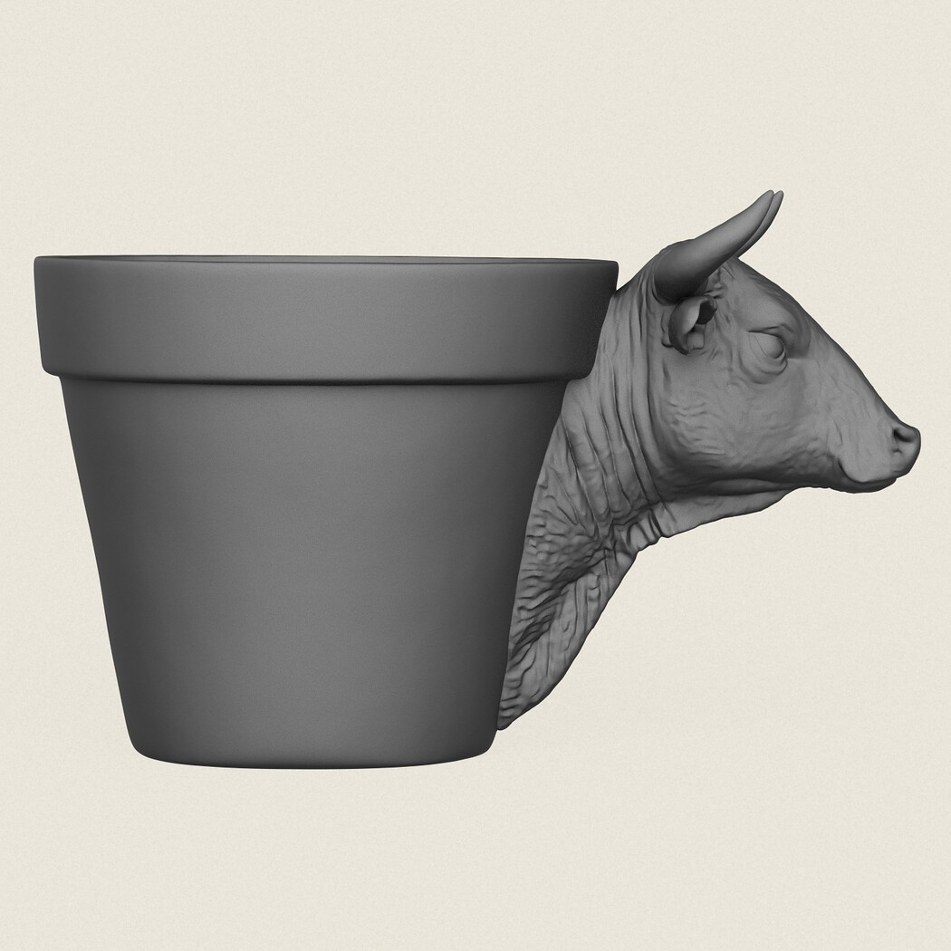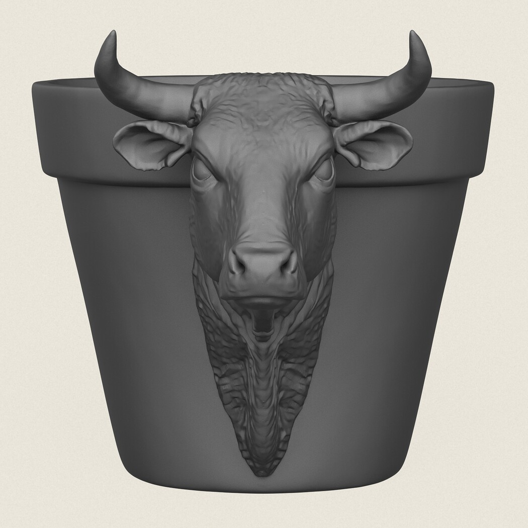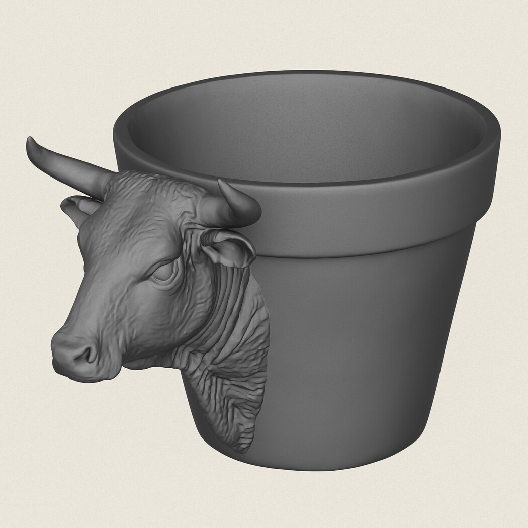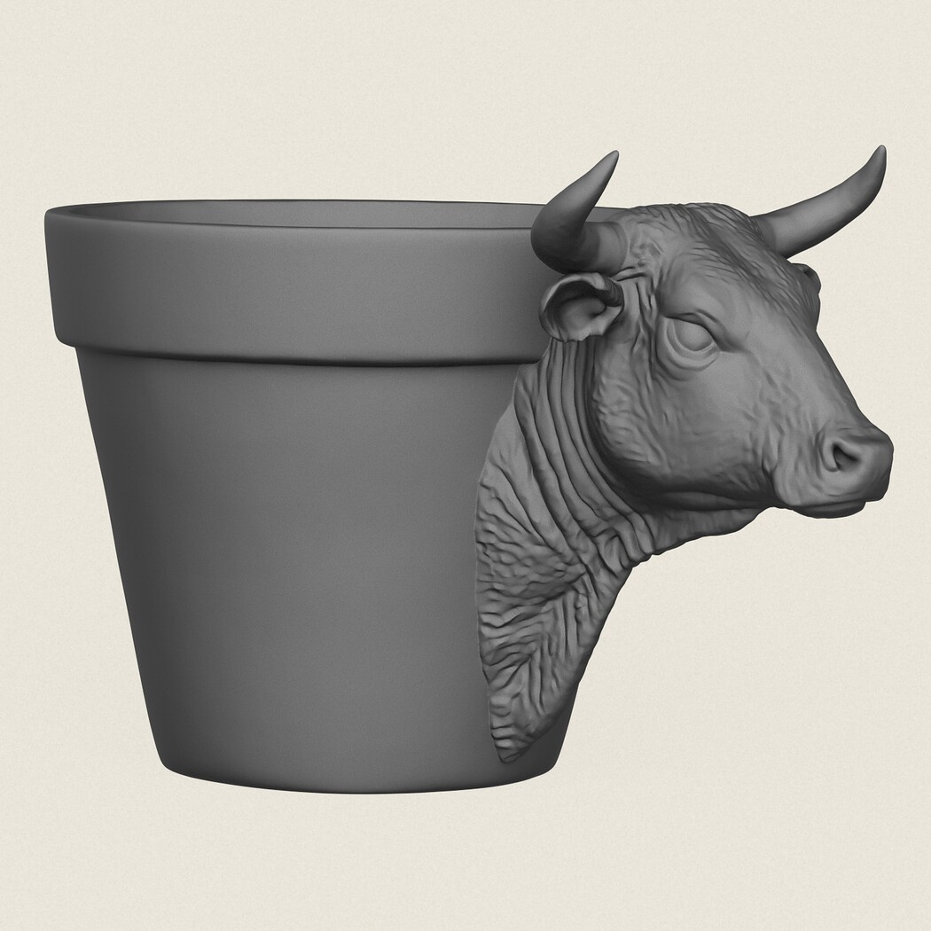 Bull Head Planter, Print Ready 3D Model.