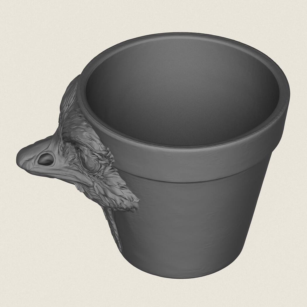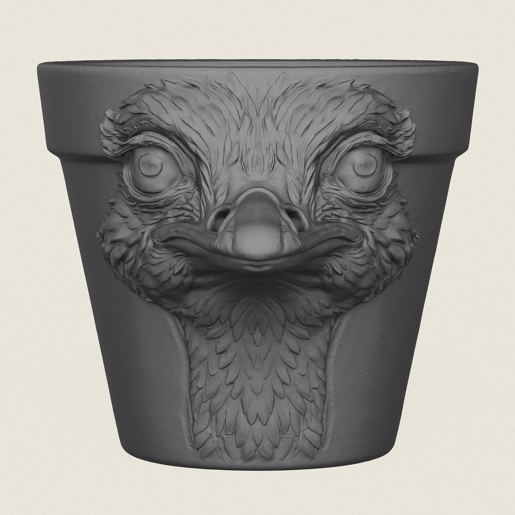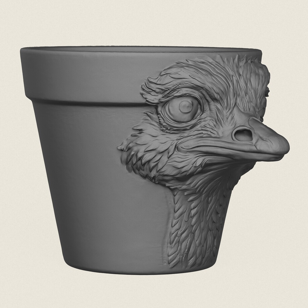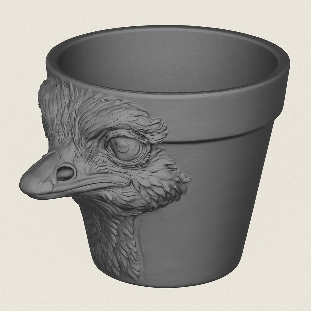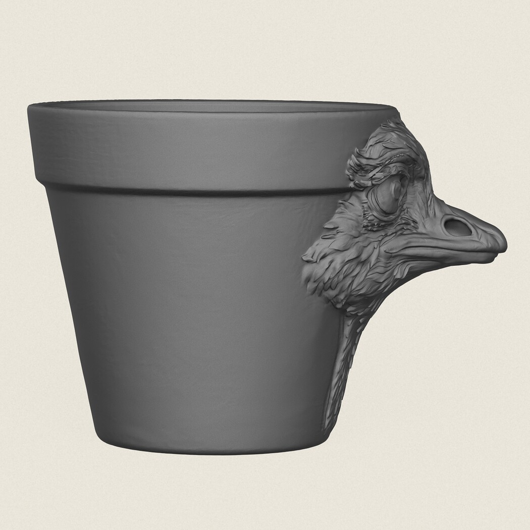 Ostrich Head Planter, Print Ready 3D Model.