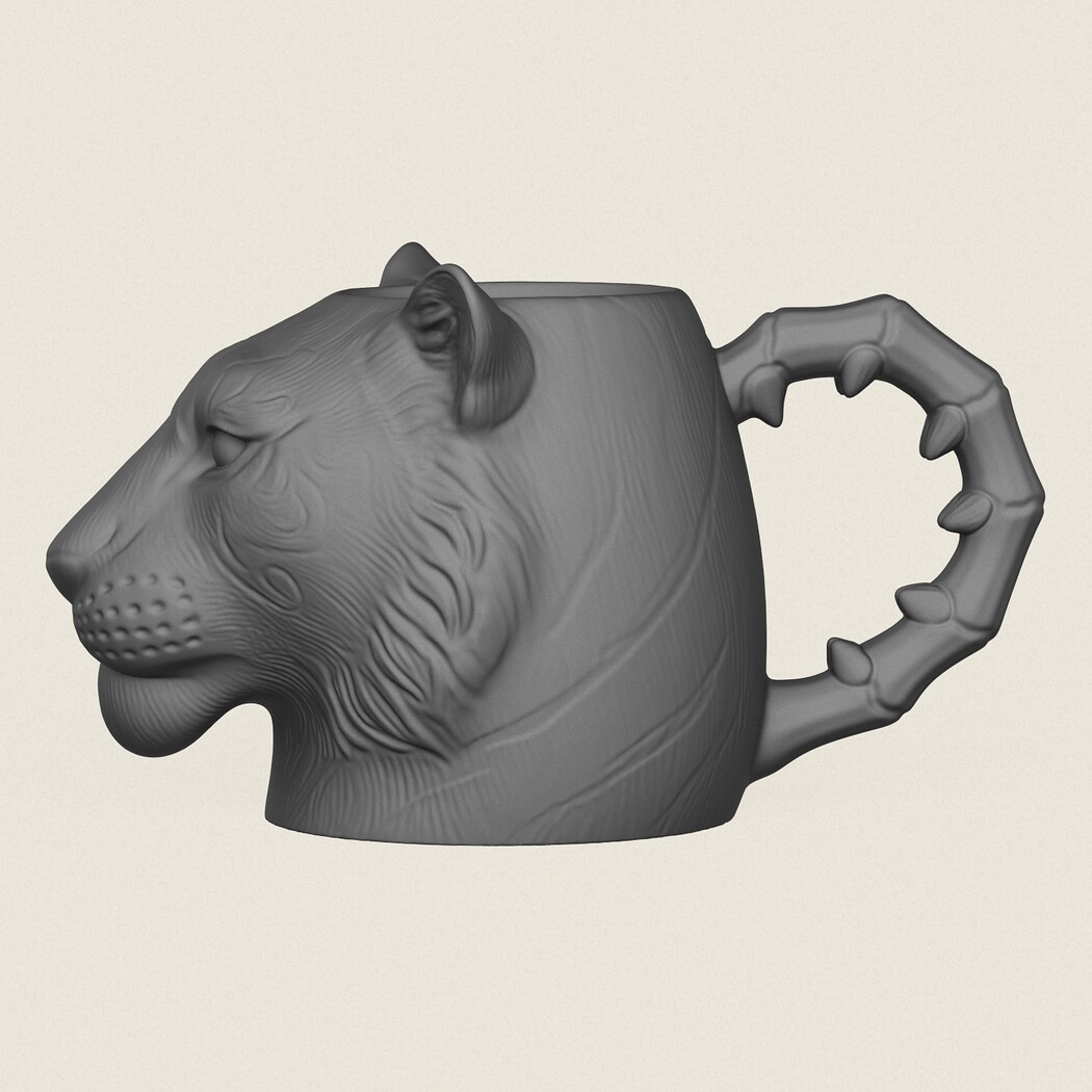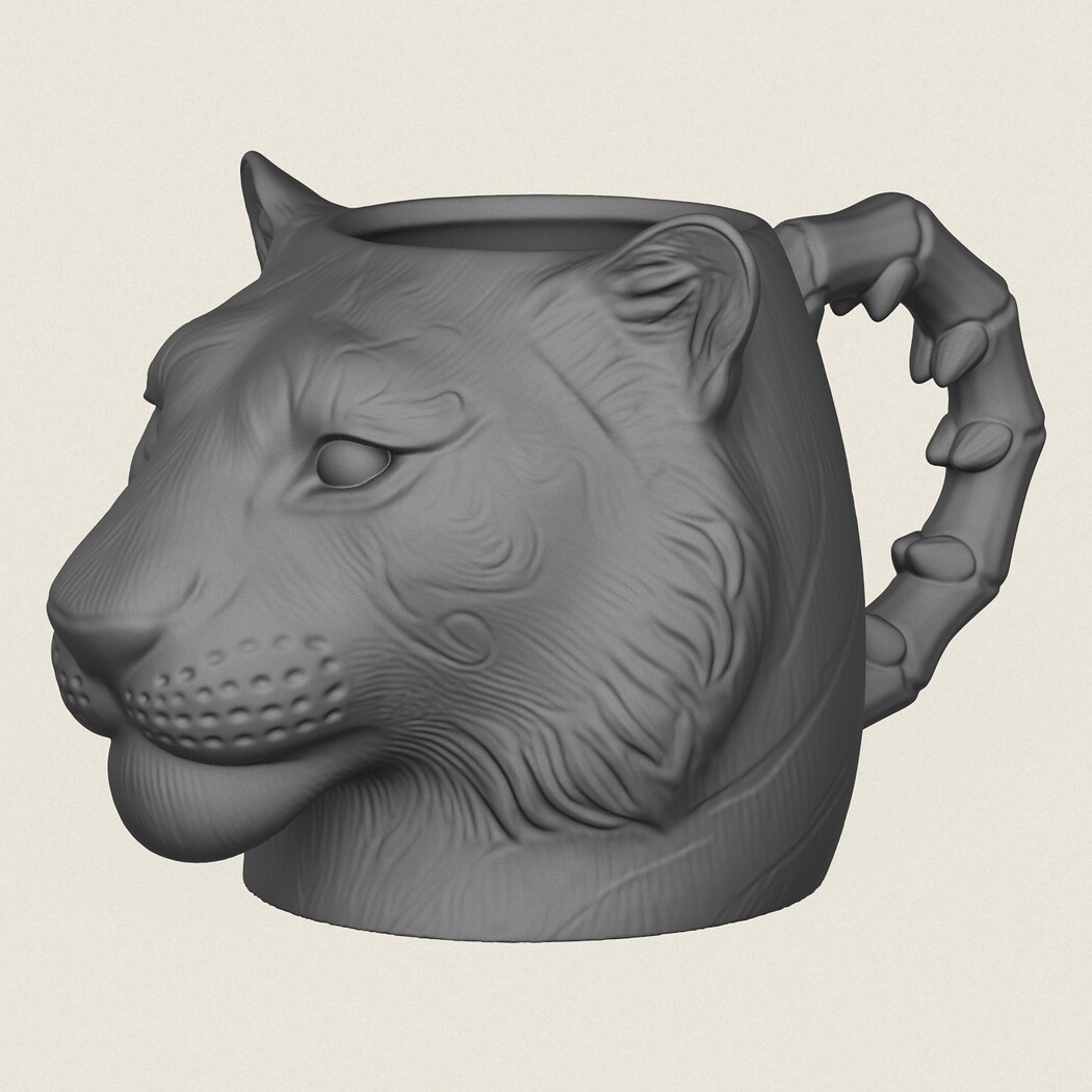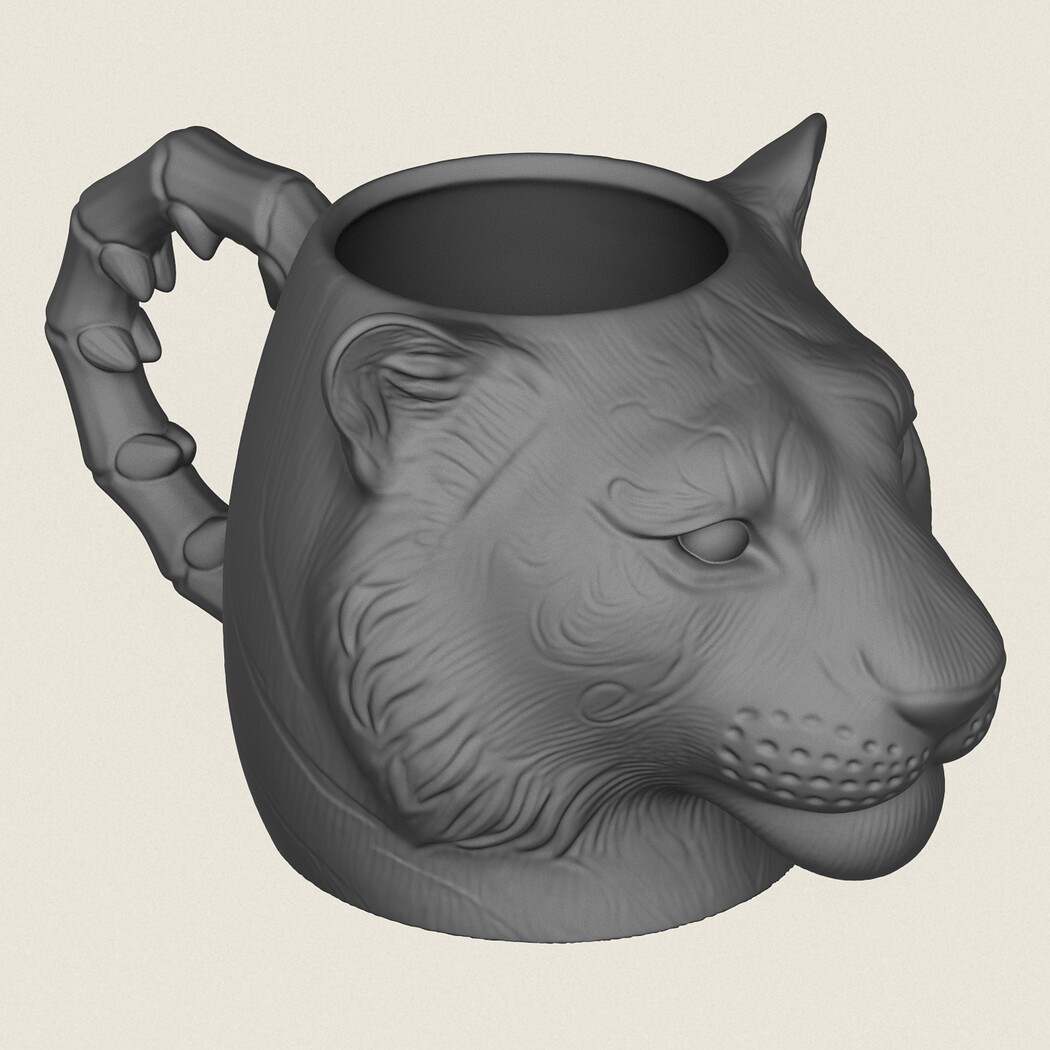 Tiger Head Mug, Print Ready 3D Model.