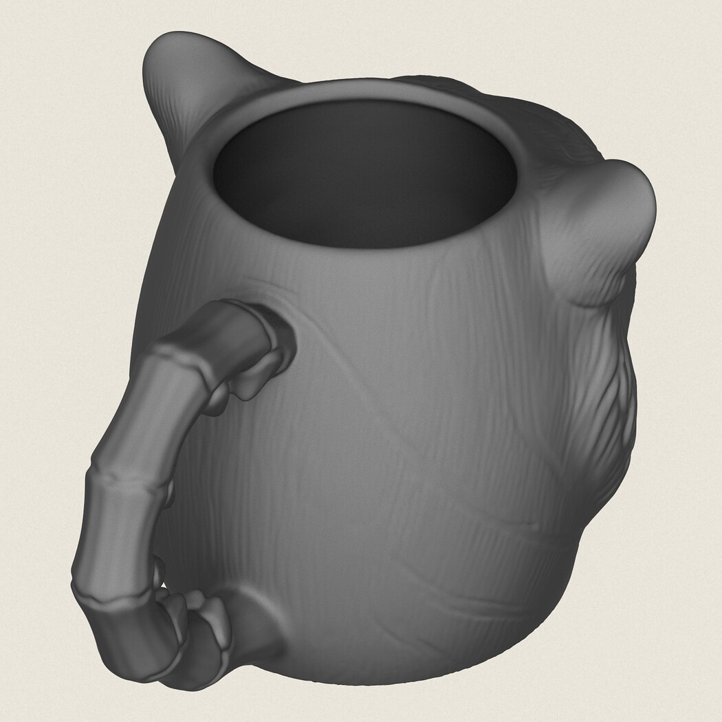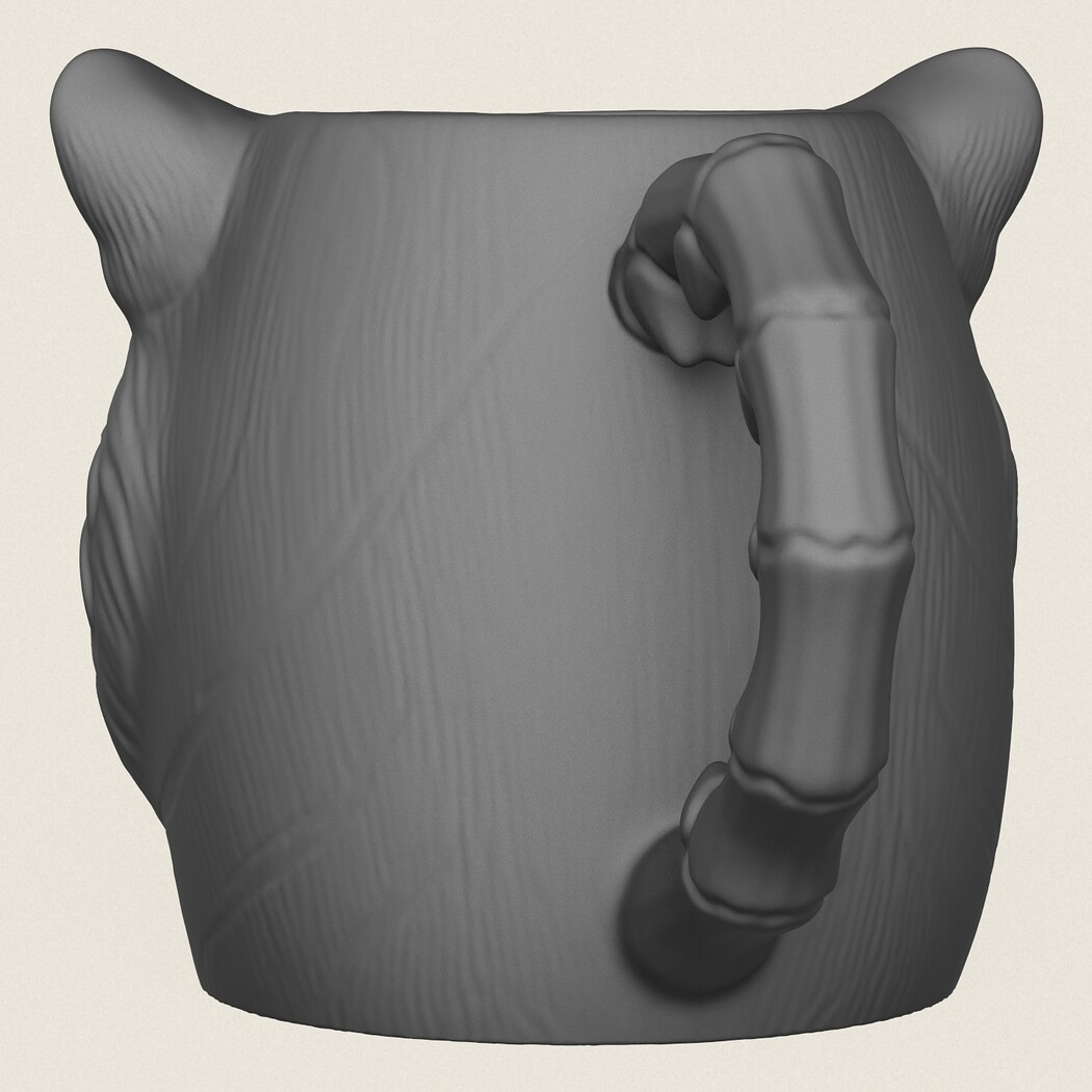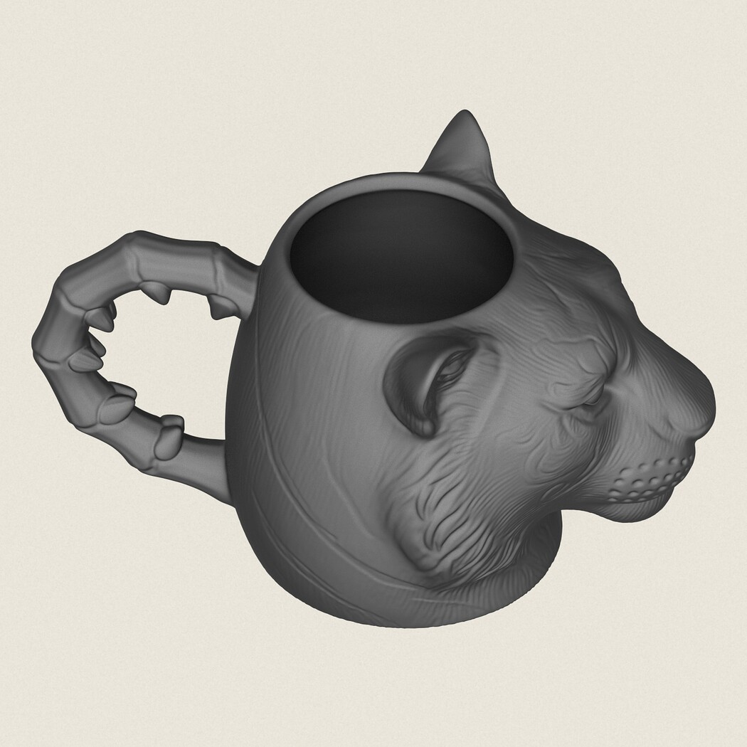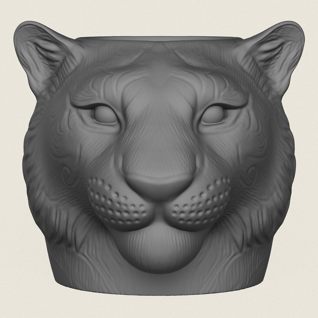 Tiger Head Mug, Print Ready 3D Model.