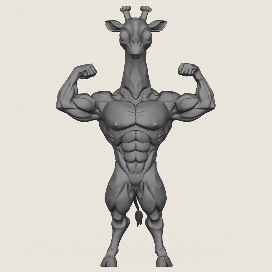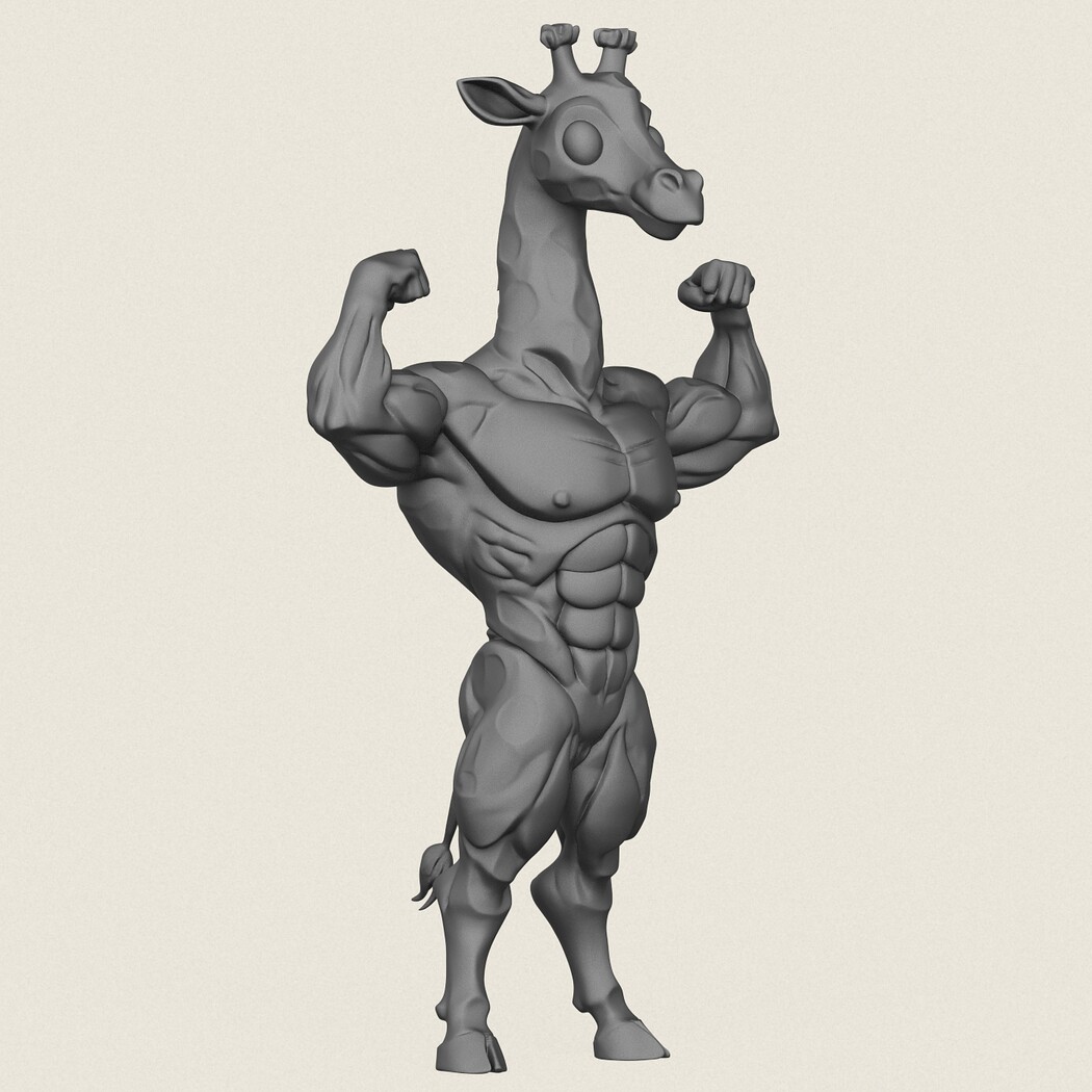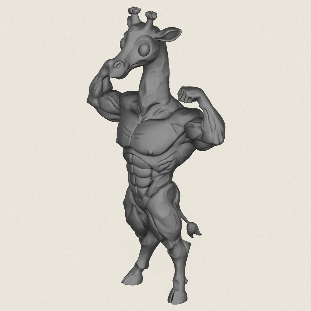 Muscular Giraffe Character, Print Ready 3D Model.