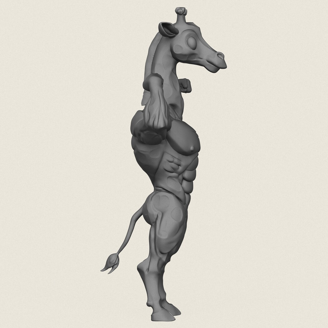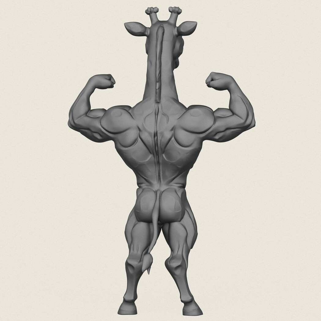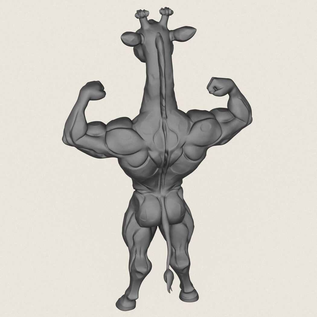 Muscular Giraffe Character, Print Ready 3D Model.