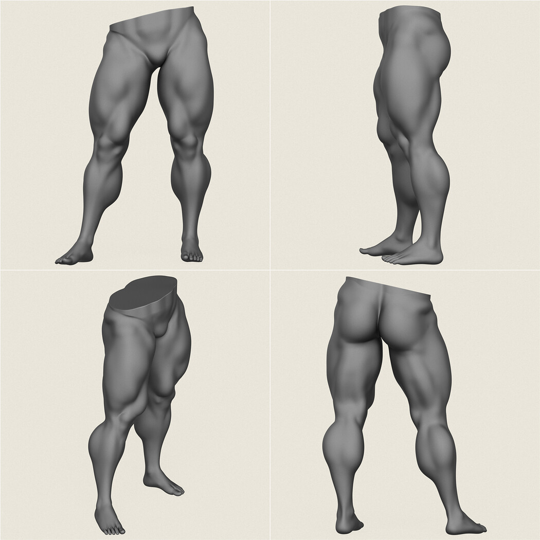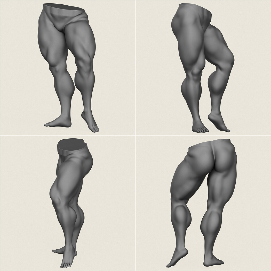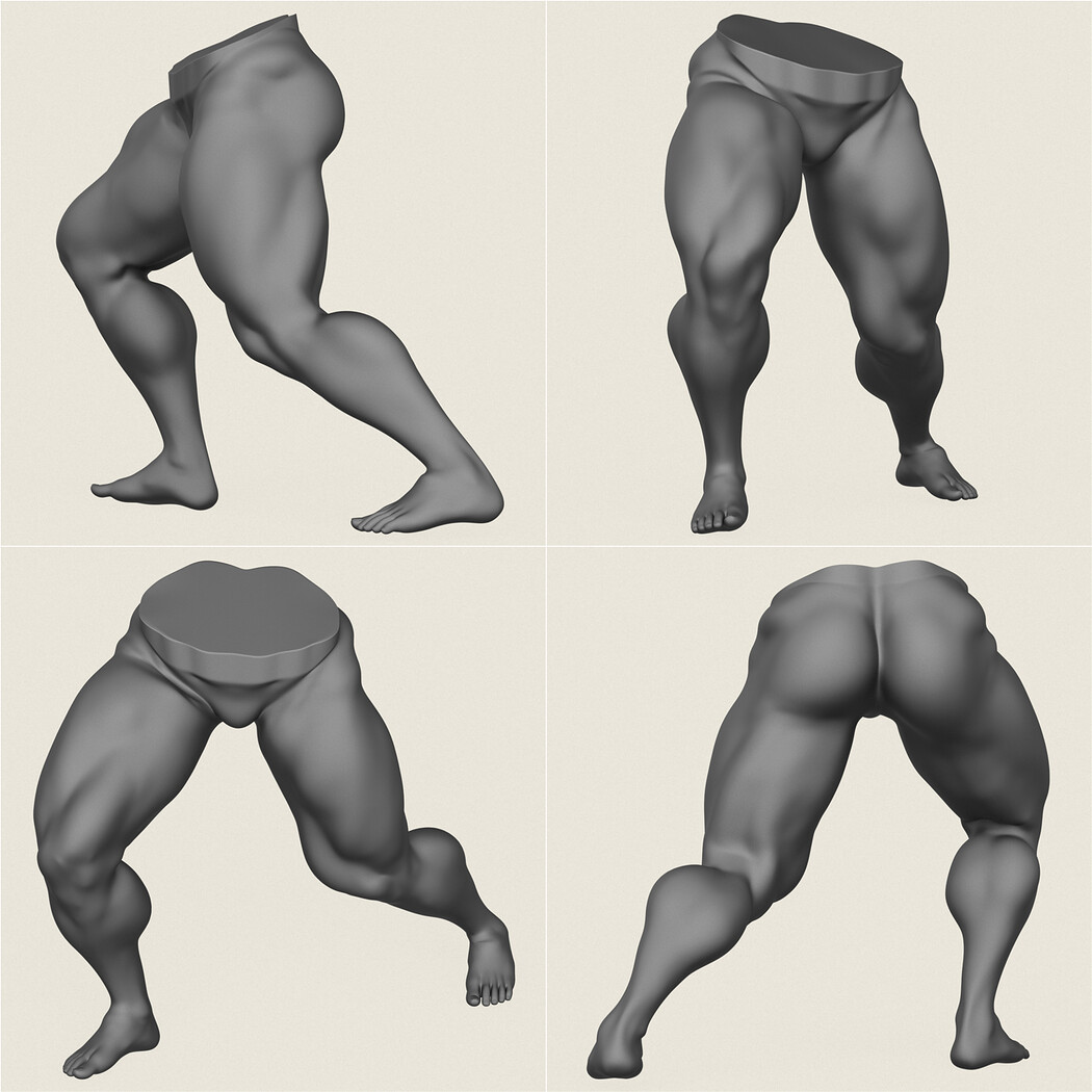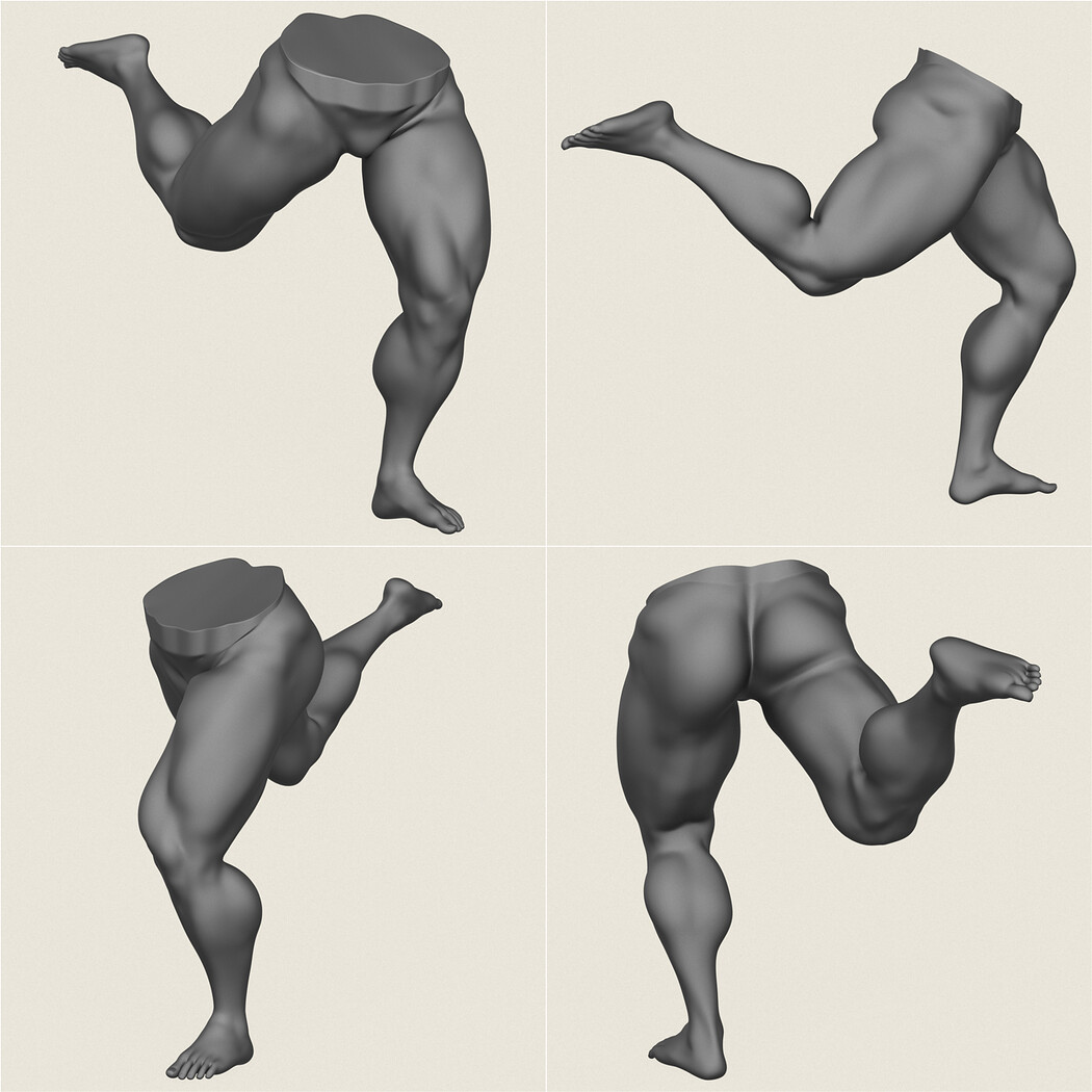 Muscular Man Leg Pose Collection.