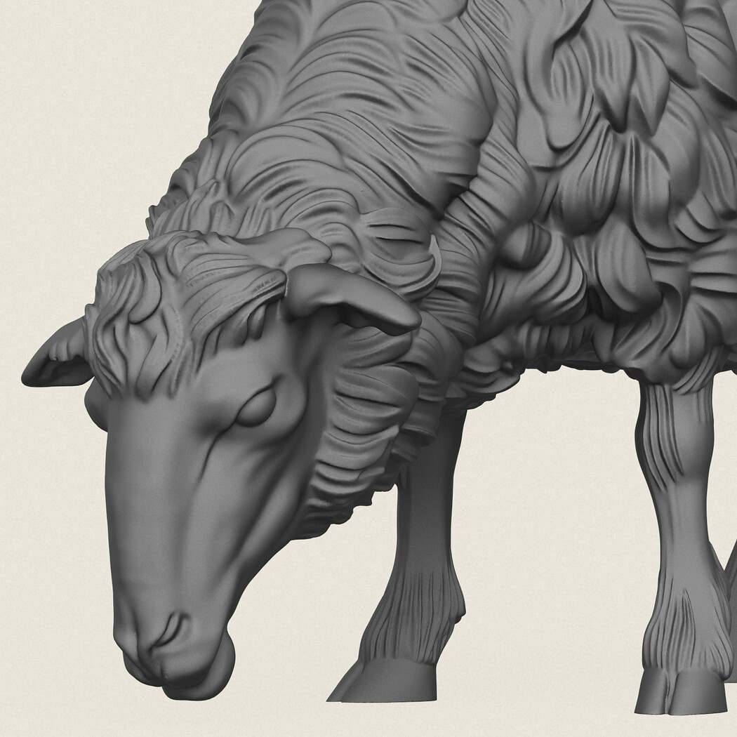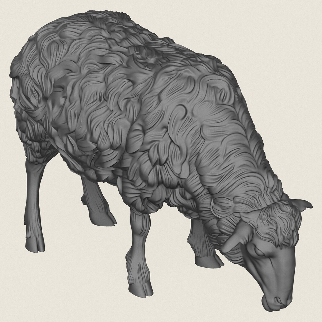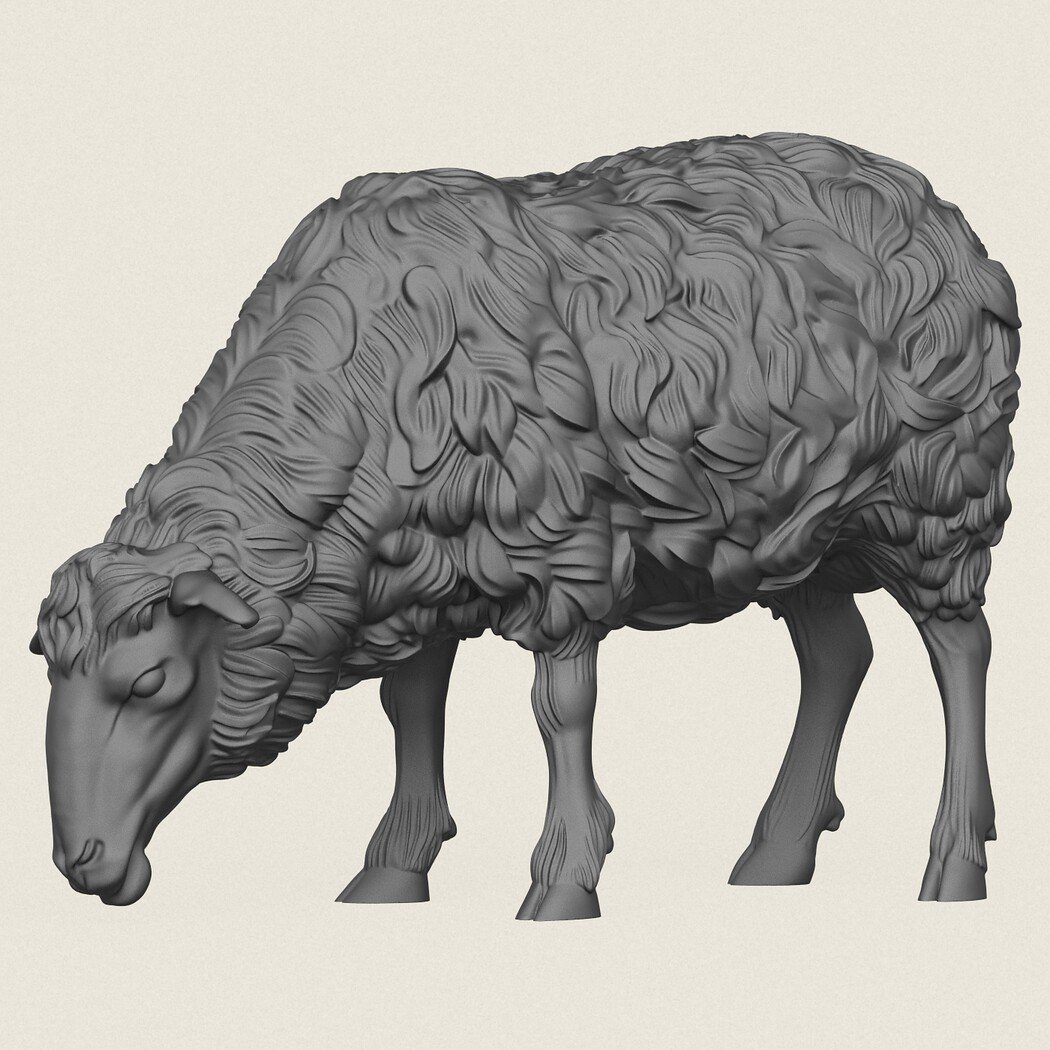 Sheep Eating Pose, Print Ready 3D Model.