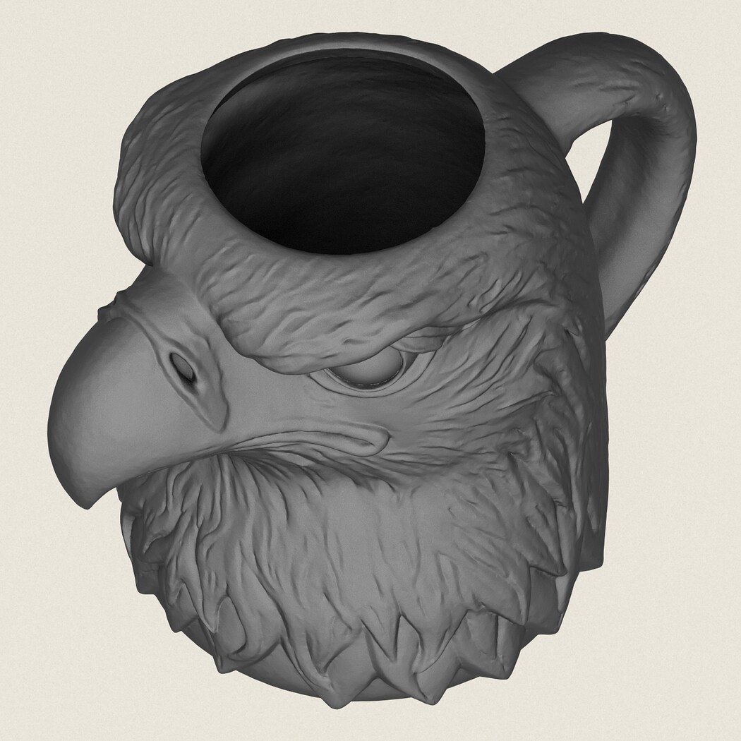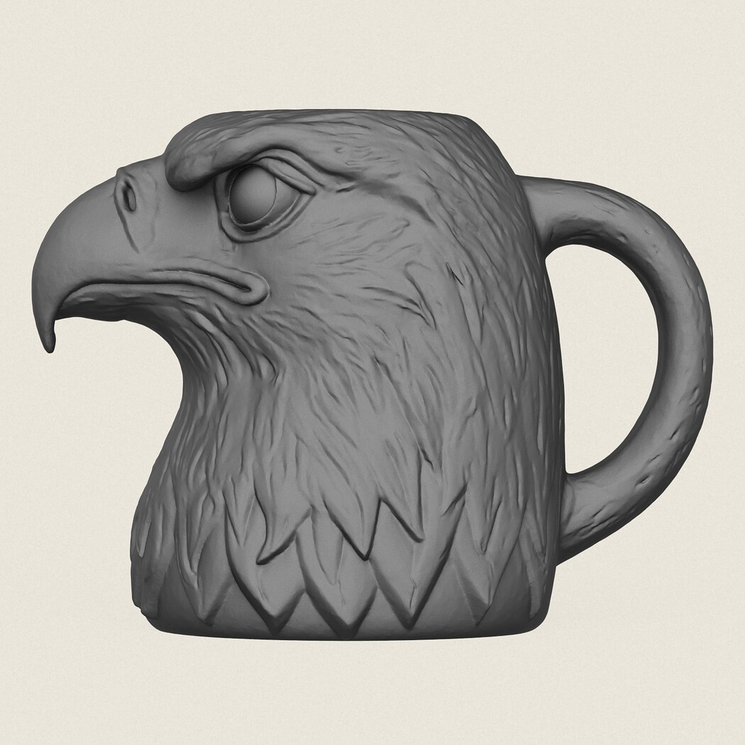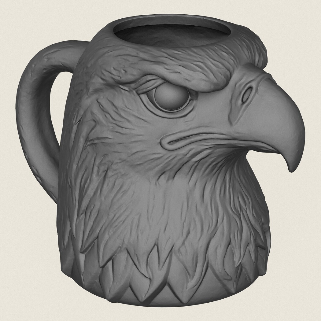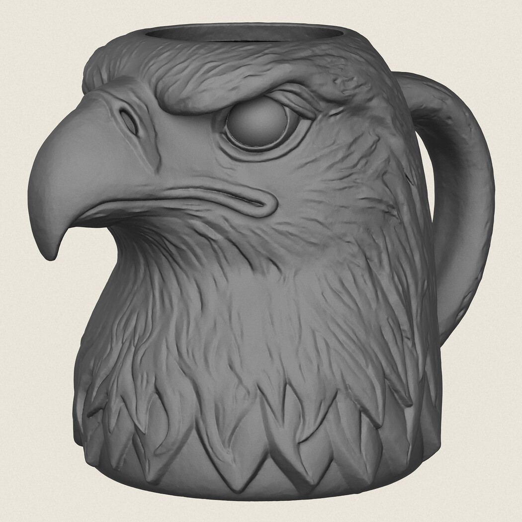 Eagle Head Decorative Mug, Print Ready 3D Model.