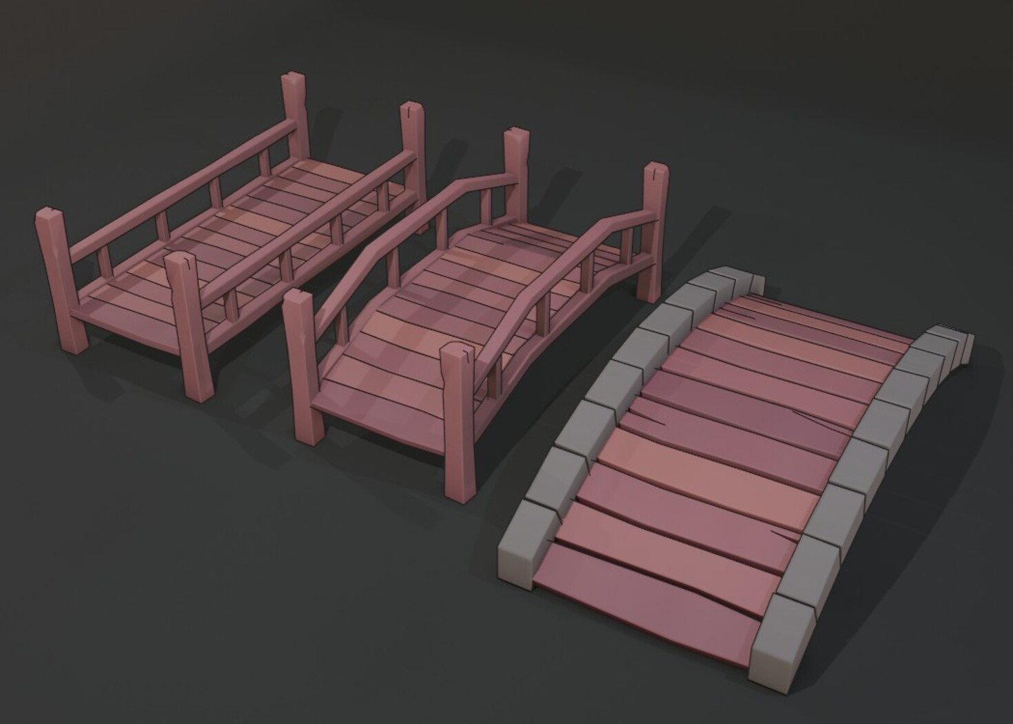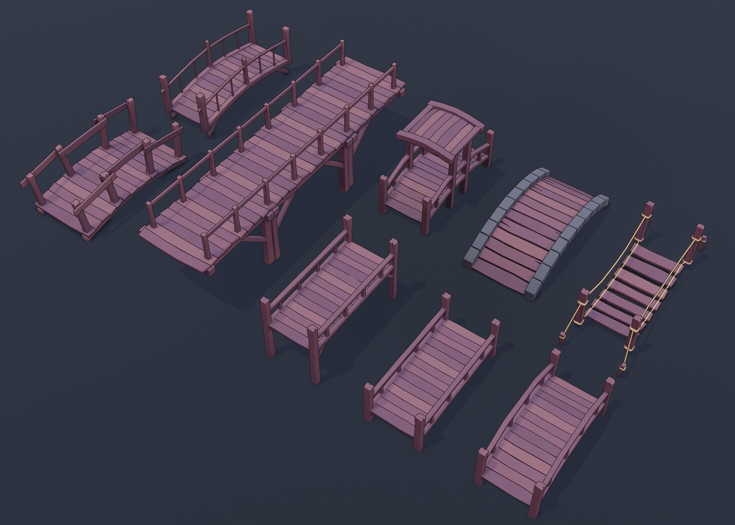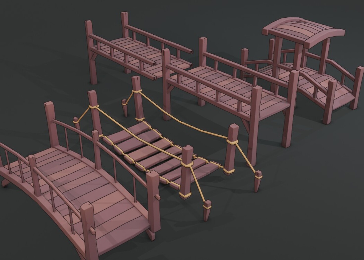 Multiple wooden bridge designs, ideal for adventure, RPG, and open-world games.
