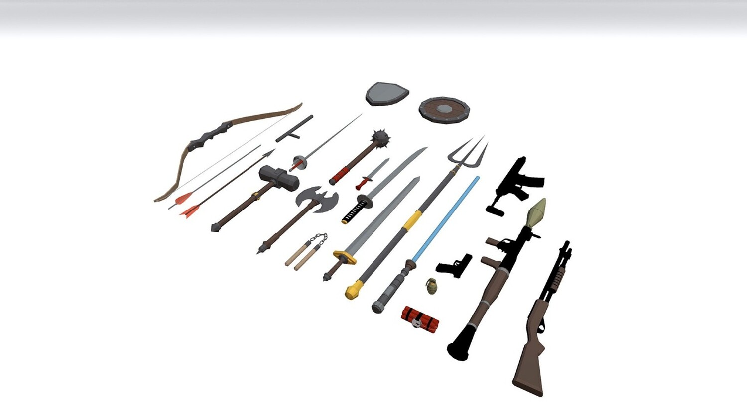 Download now and equip your game characters with these performance-friendly, beautifully crafted low poly weapons!