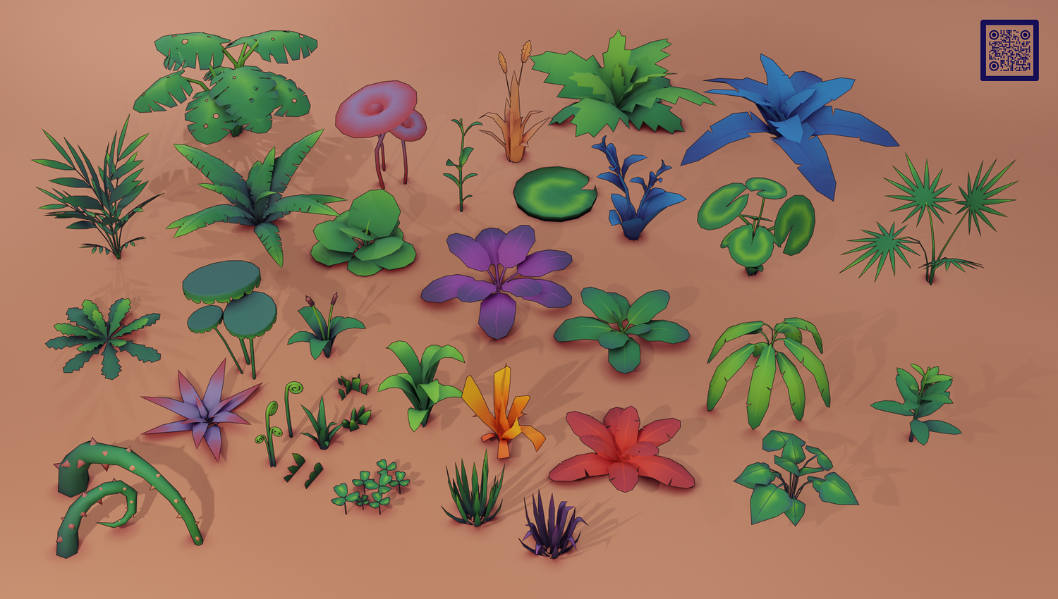 Enhance your game environments with this Stylized Low Poly Plants Pack, featuring a variety of vibrant, hand-crafted plants designed in a charming low poly style. Ideal for game developers, animators, and 3D artists, this asset pack many plants to bring your stylized landscapes to life.