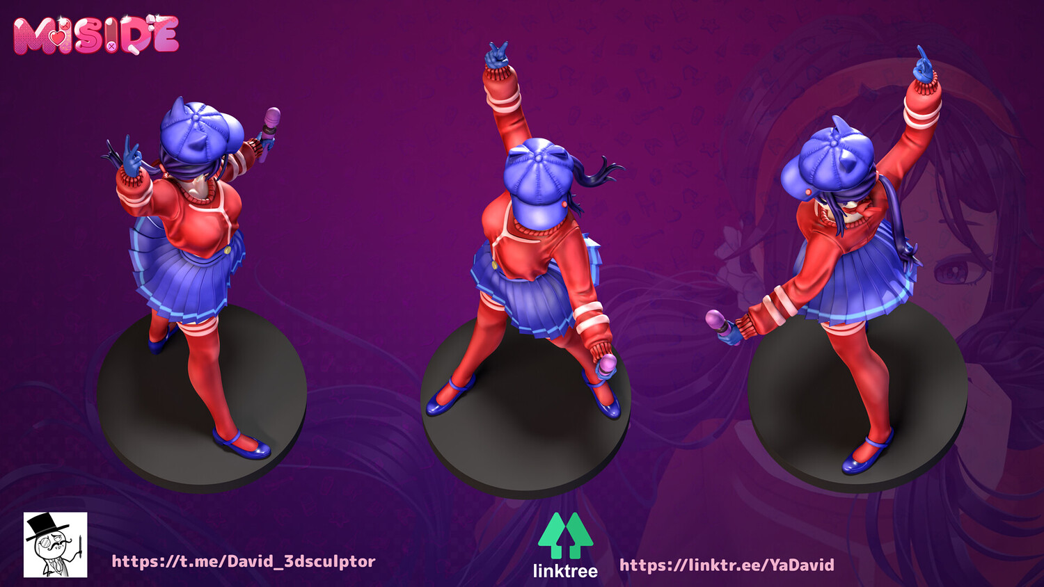 3d model of one of the Mita Caps - one of several Mita games Miside. There are 10 stl files without supports, it is recommended to use a cavity and make a hole, under the scale of 30 cm, heavy supports were used, because the middle ones just broke or did not print.