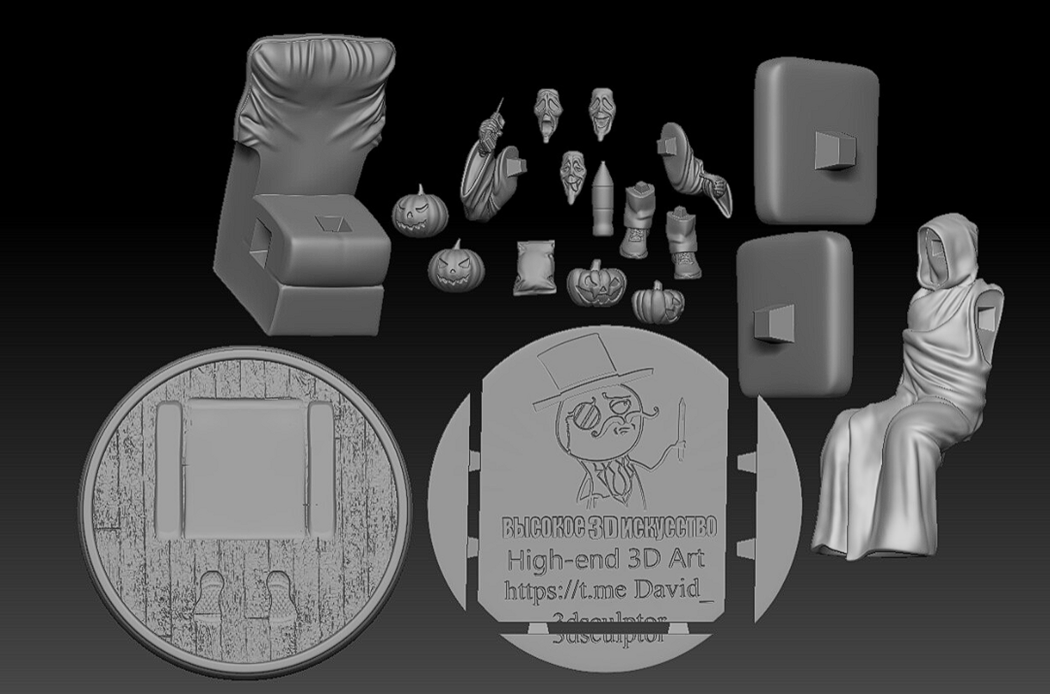 A model for the cults3d - Halloween 3D Printing Contest The model is distributed for free, anyone can download it.All I ask in return is likes, if desired, subscriptions. The height of the model is 17 cm.There is a stand for large and small printers. The process of creating a model - https://www.youtube.com/watch?v=s7MJrX1faFg&t=5s Artstation - artstation.com/artwork/GvNkaQ