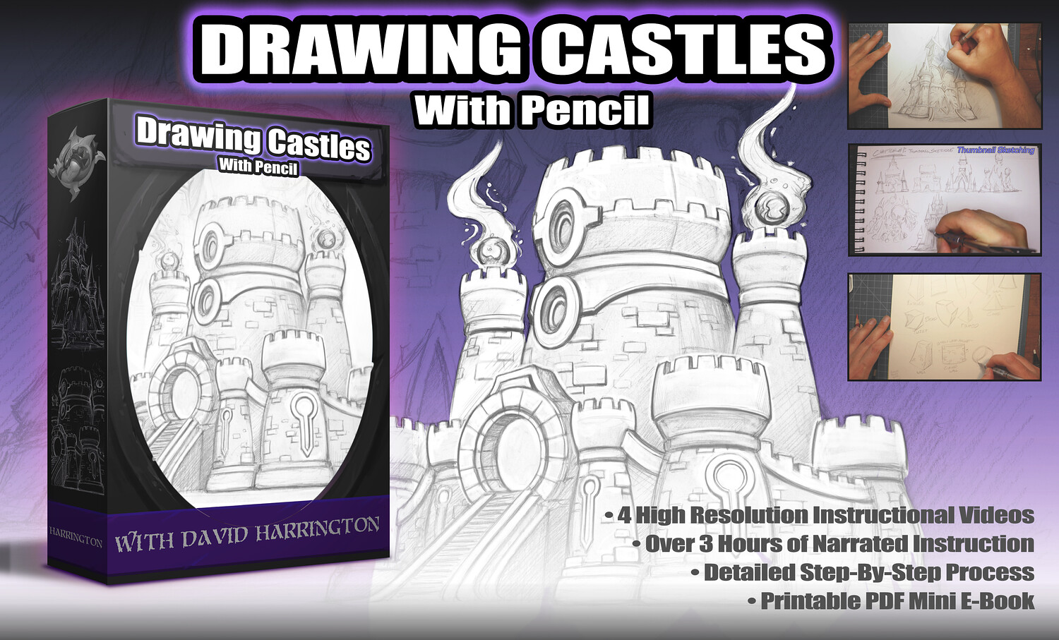 • Chapter 1: Thumbnail Sketching and Basic Constructive drawing methods • Chapter 2: Advanced Idea Development and Advanced Constructive drawing methods • Chapter 3: Final Evil Fantasy Castle Drawing • Chapter 4: Final Heroic Fantasy Castle Drawing