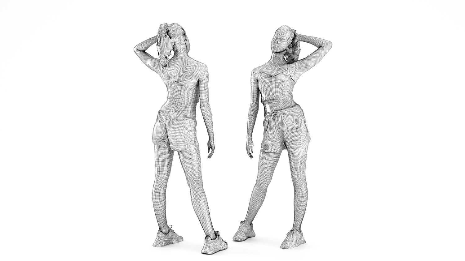 This is a true human size and detailed model of a sporty beautiful young woman of Caucasian appearance. The model is captured in casual pose to be perfectly matching for variety of architectural visualizations, e.g. sport ground, gym, beach, etc.