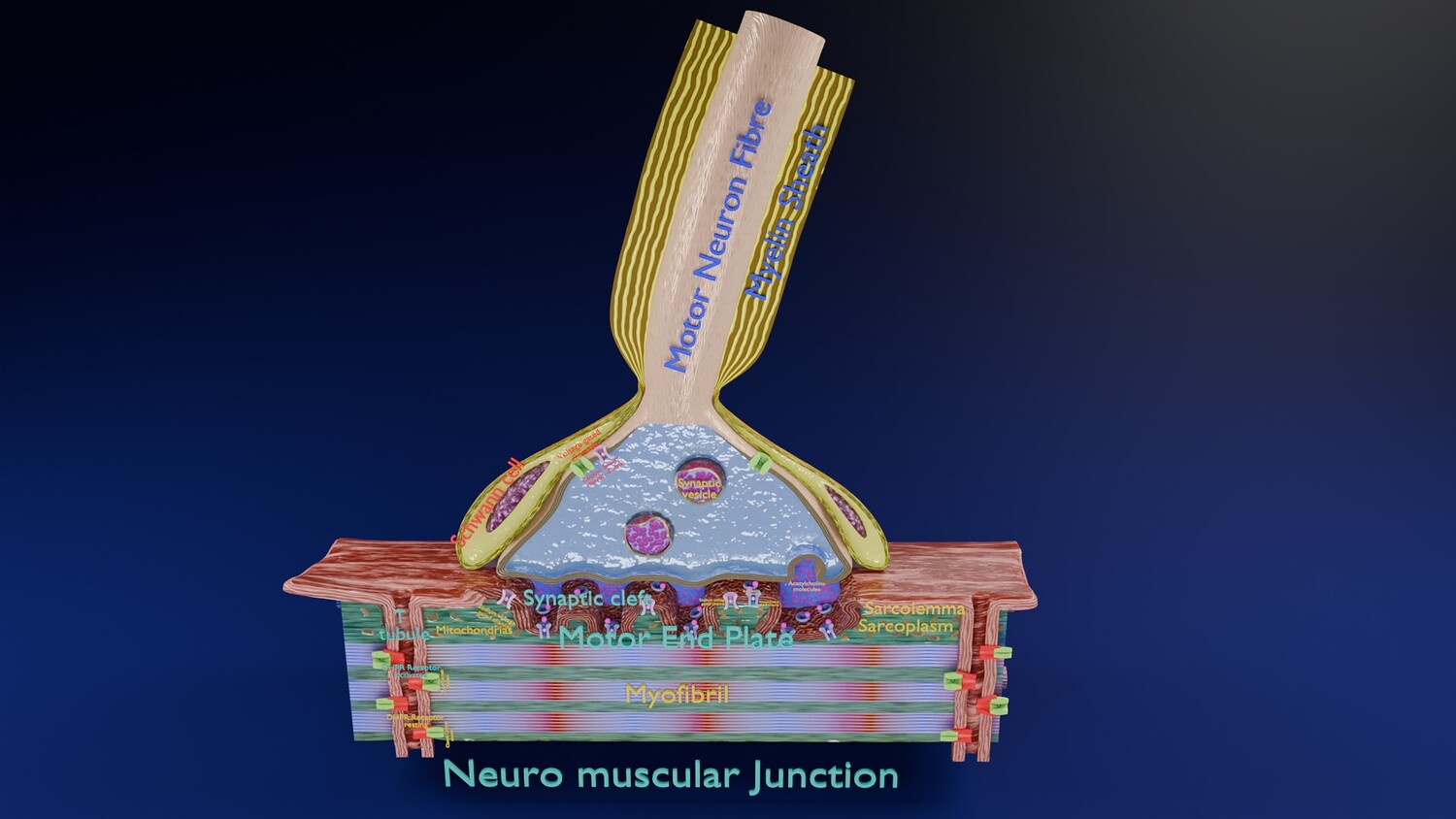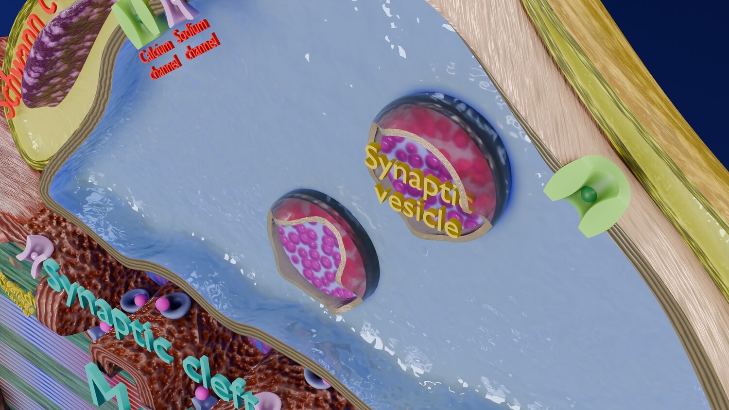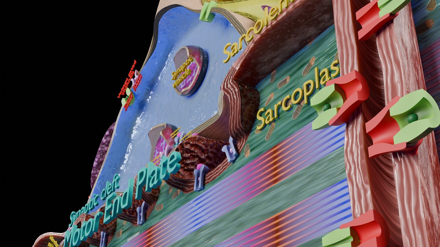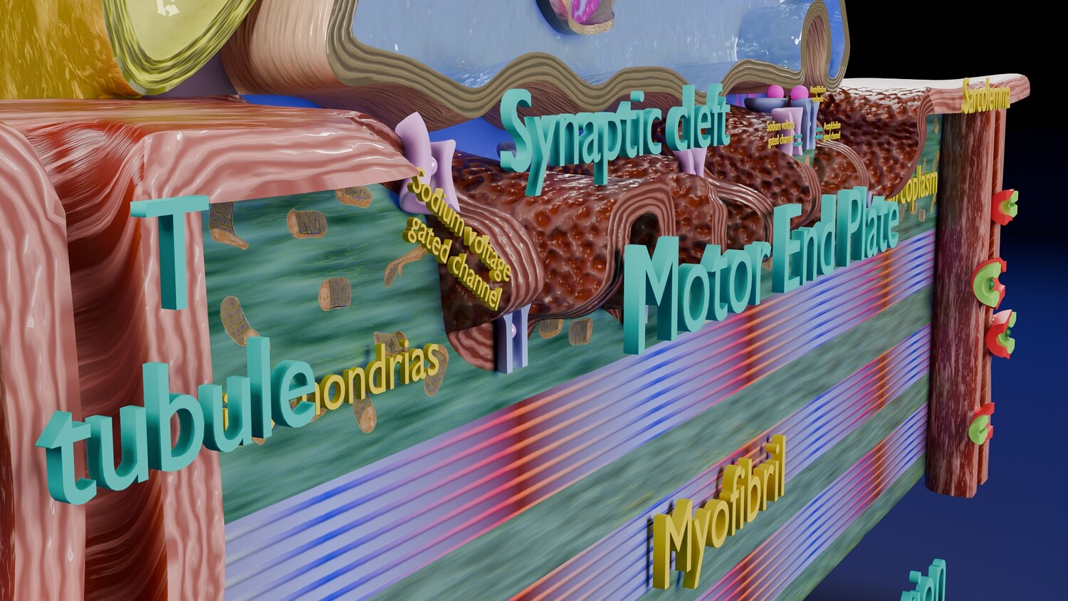The model schematically depicts the neuromuscular junction structural and ultra structural details. The neuron ends have voltage gated sodium and calcium channels which releases acetylcholine molecules stored in synaptic vesicles into the synaptic cleft. The receptors present in motor end plate and T tubules of muscle fibre finally increase intacelluar calcium which leads to muscle contraction Excellent model for teaching, demonstration and knowledge of human body. The models include both procedural and image textures blend files separately. The texture file includes diffuse, roughness, and normal png and jpeg based on non-overlapping UV maps. The formats 3mf, ply, obj, fbx, USDZ, GLTZ & GLB with applied uv mapped textures have also been included in the downloads along with stl. I have included the various formats needed by various customer for the various 3d modelling software they may be using. The following formats are compressed in rar formats:- 1. blend 2. 3mf 3. stl 4. obj 5. fbx 6. glb 7. gltz