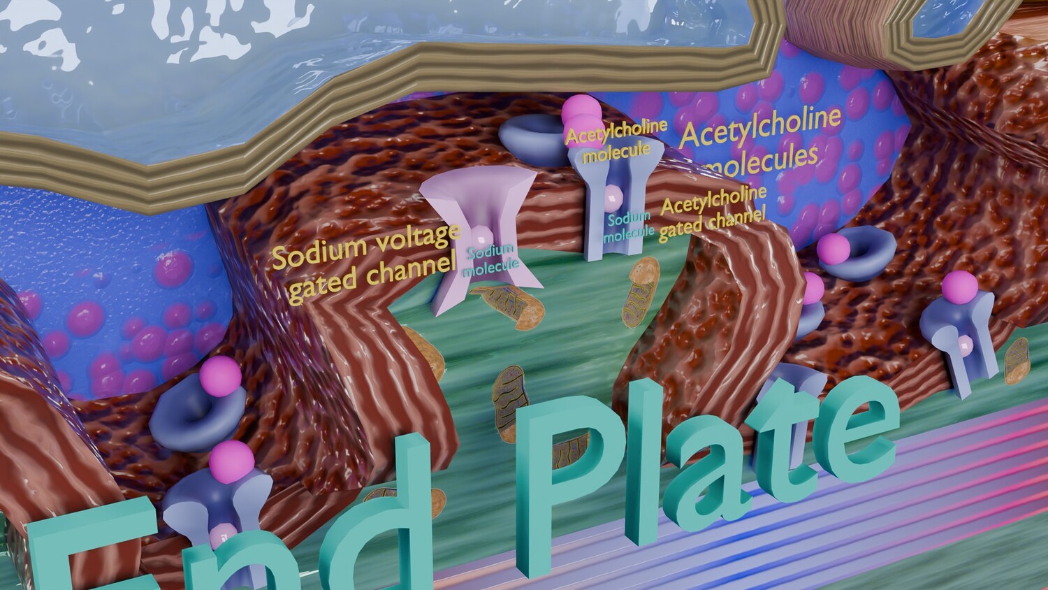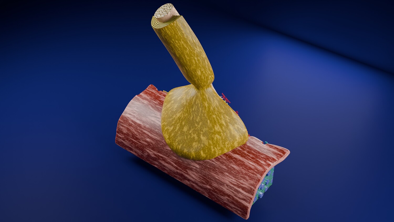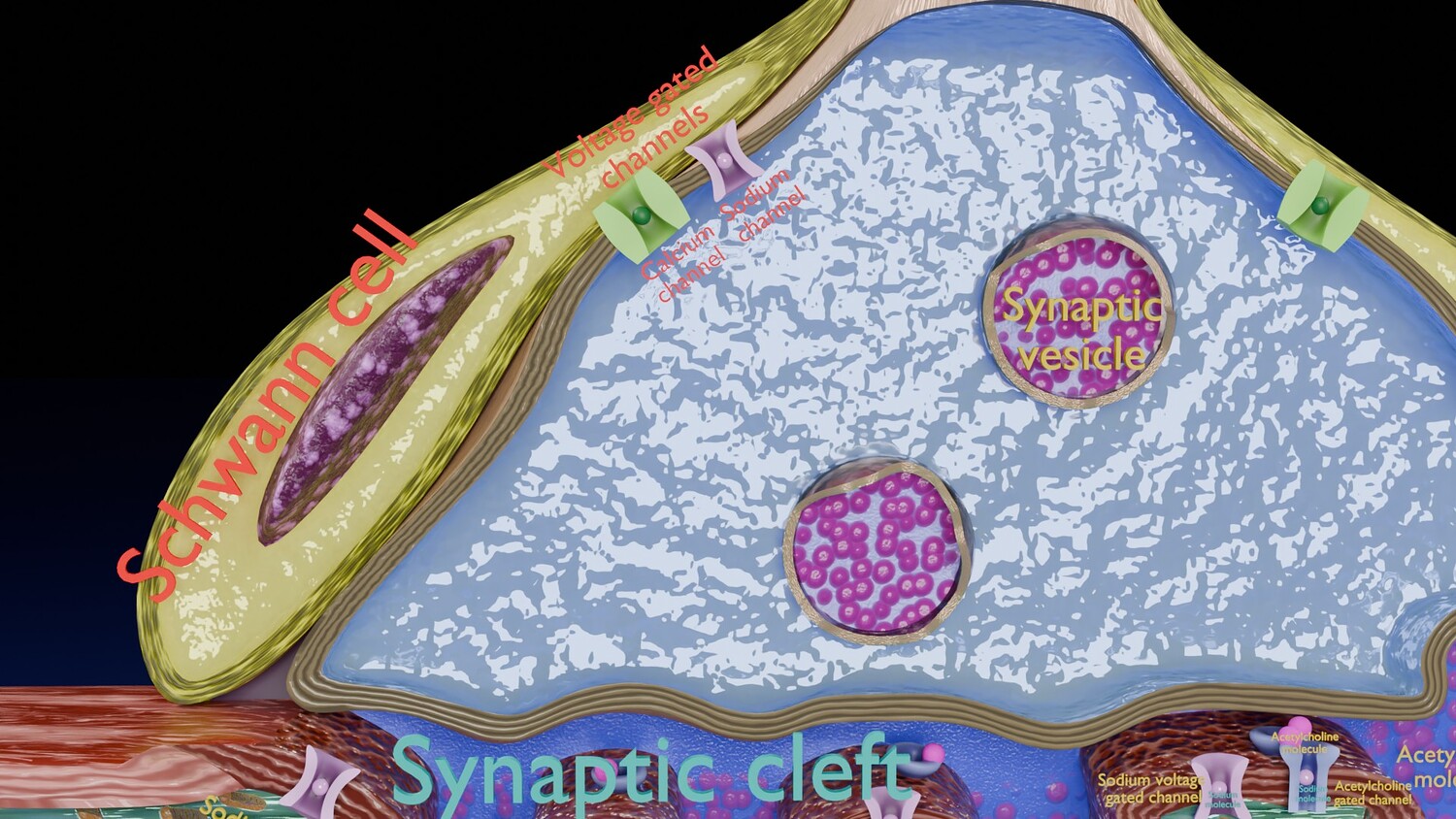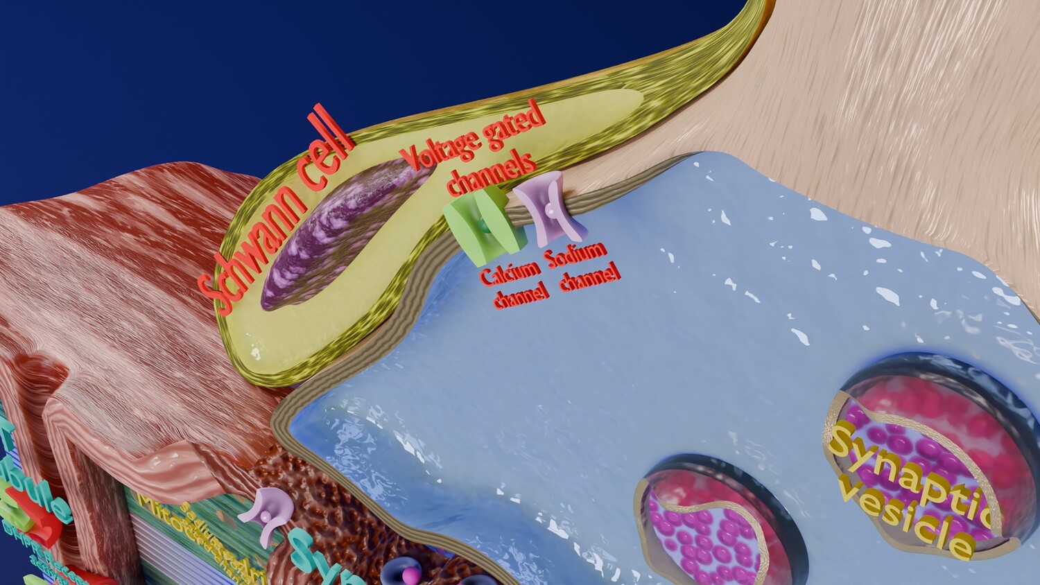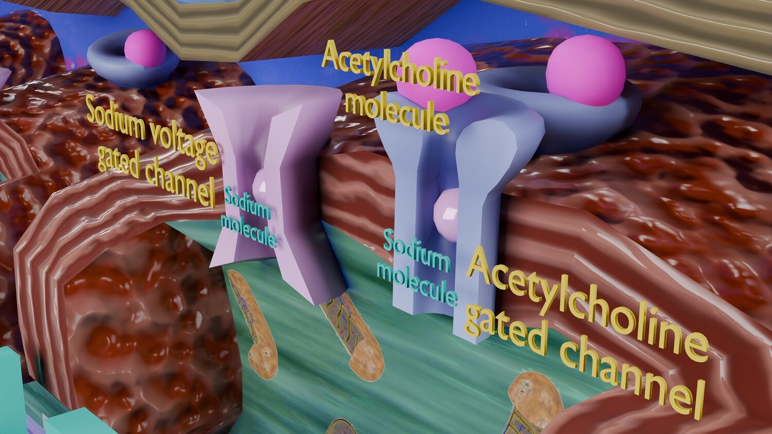 The model schematically depicts the neuromuscular junction structural and ultra structural details. The neuron ends have voltage gated sodium and calcium channels which releases acetylcholine molecules stored in synaptic vesicles into the synaptic cleft. The receptors present in motor end plate and T tubules of muscle fibre finally increase intacelluar calcium which leads to muscle contraction Excellent model for teaching, demonstration and knowledge of human body. The models include both procedural and image textures blend files separately. The texture file includes diffuse, roughness, and normal png and jpeg based on non-overlapping UV maps. The formats 3mf, ply, obj, fbx, USDZ, GLTZ & GLB with applied uv mapped textures have also been included in the downloads along with stl. I have included the various formats needed by various customer for the various 3d modelling software they may be using. The following formats are compressed in rar formats:- 1. blend 2. 3mf 3. stl 4. obj 5. fbx 6. glb 7. gltz