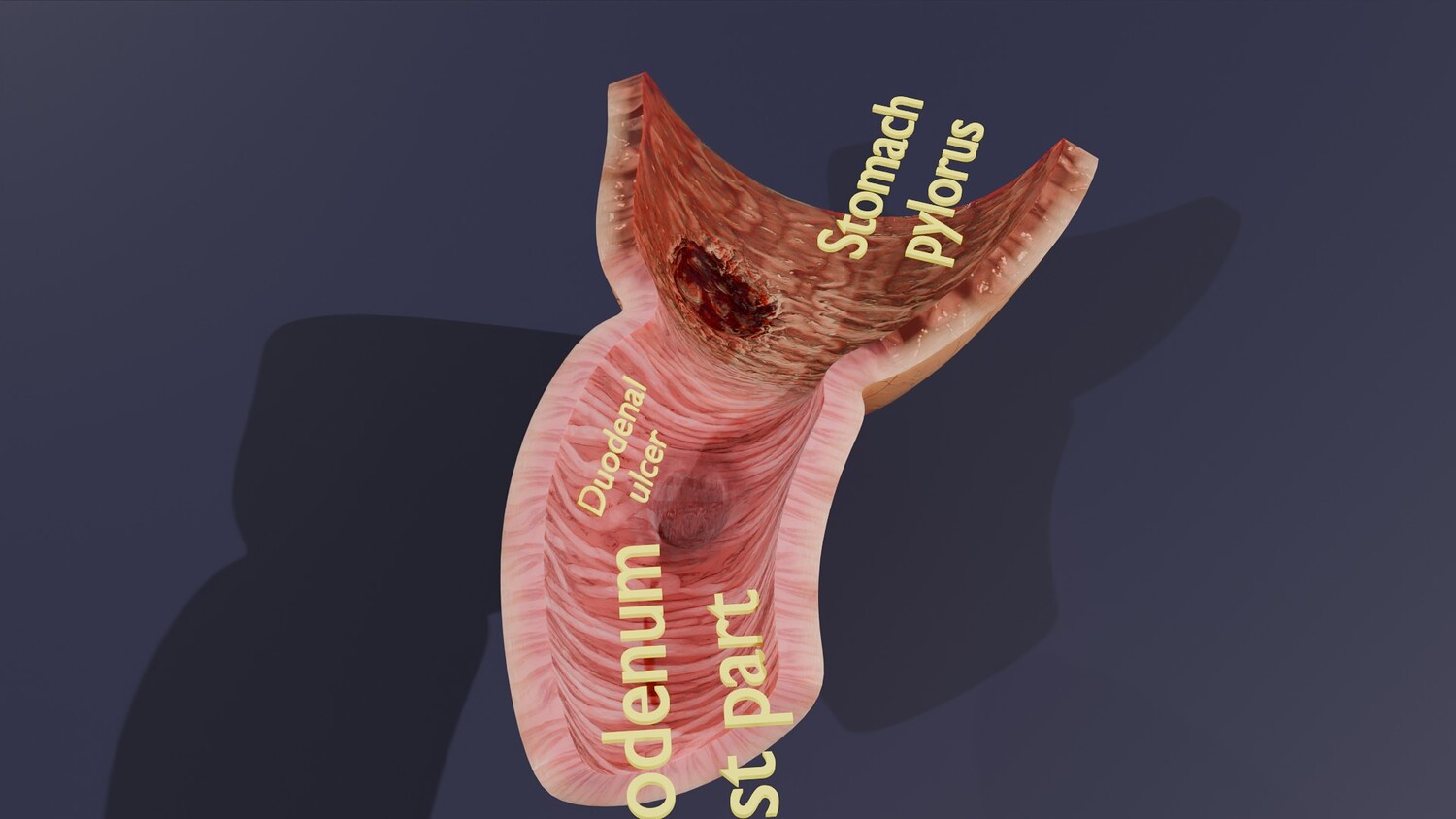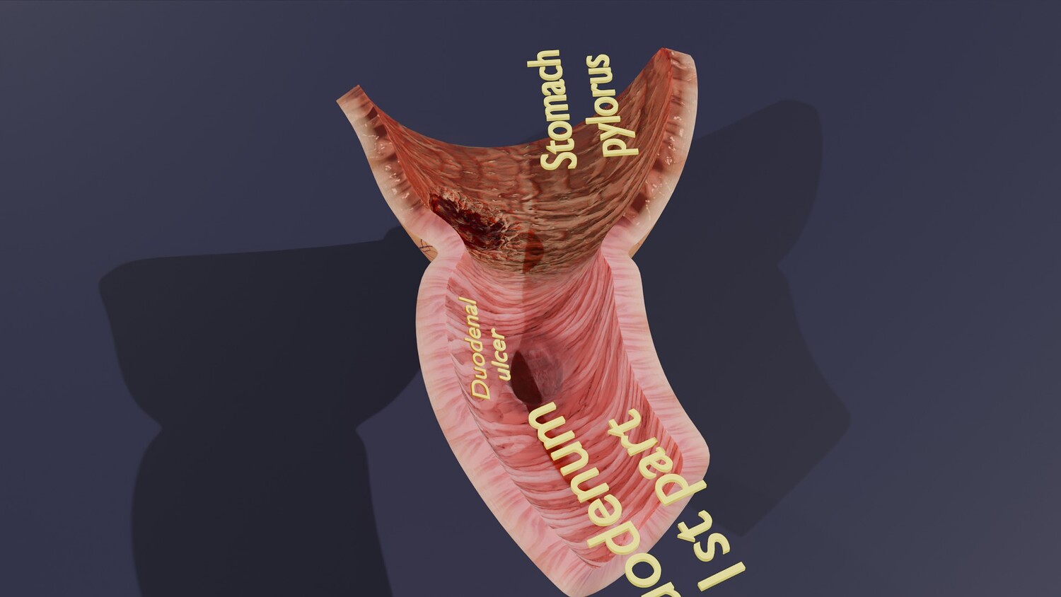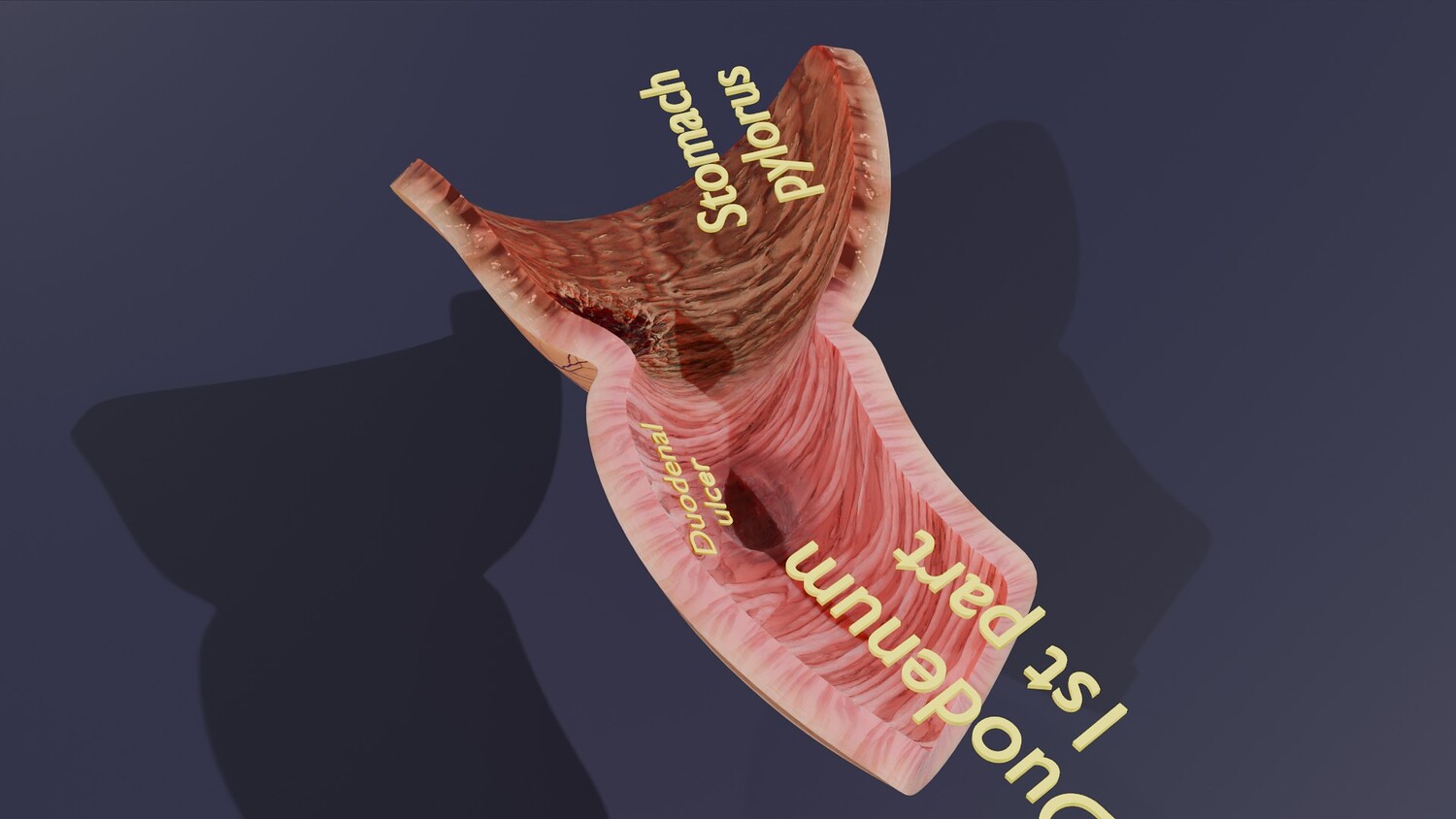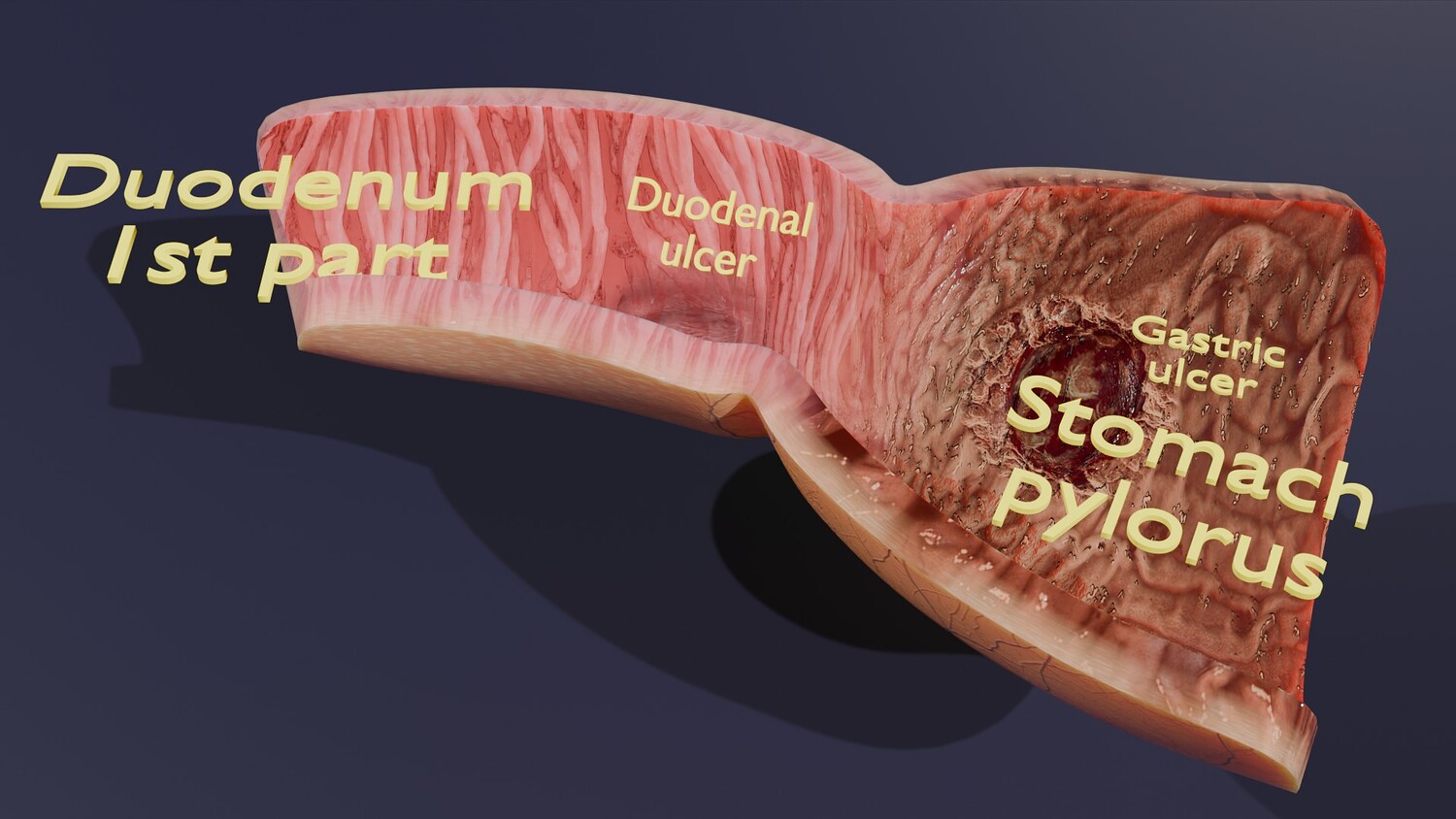 The model shows Cut open pyloric part of stomach and first part of duodenum. The left half of the mesh shows duodenal ulcer in first part duodenum While the right half shows Gastric ulcer in Pylorus of stomach. Excellent model for teaching, demonstration and knowledge of biology. The models include both procedural and image textures .blend files separately. The texture file includes diffuse, roughness, normal png and jpeg based on non-overlapping UV maps. Besides the procedural and image texture based blender model files, the formats 3mf, ply, obj, fbx,, GLTZ & GLB with applied uv mapped textures have also been included in the downloads along with stl. I have included the various formats needed by various customer for the various 3d modelling software they may be using. The following formats are compressed in rar formats:- 1. blend 2. 3mf 3. stl 4. obj 5. fbx 6. glb 7. gltz 8. ply 9. textures The downloaded files have to be unpacked using any rar unpacker. After unpacking, the folder content of the respective formats will be as follows :-. 1. blend :- single file with all applied and packed textures. 2. 3mf :- single file with all applied and packed textures. 3. stl :- single file with only geometry data 4. obj :- mutiple files including .obj,.mtl, images textures. 5. fbx :- single file with all applied and packed textures. 6. glb :- single file with all applied and packed textures. 7. gltz :- mutiple files including .bin, images textures. 8. ply 9. Texture files :- jpg and png The native file is blend so the open source software blender opens mostly all the files, with textures (packed with the files). The best way is to open the files named blend with blender. Other files have to be imported in blender by clicking within blender File >>Import>>select the type of file you want to import>>open file location of the downloaded unzipped files>>select the file>>the model would open in the 3d viewport of the software. The other files including blend can be opened with most of the free and paid 3d modelling software. The files obj & fbx are compatible with other 3d modeling software, example maya. These software's have the open/import options like blender. The files stl and 3mf are compatible with 3d printing software's. The built in3d builder " windows software opens all these files including glb, & gltz. In case you don't have 3d builder installed just download it free from Microsoft store for free. For 3d builder 3mf, fbx, stl, glb are standalone files (right click the model file>>select open with>>3d builder). For obj,ply, & gltz 3d builder will prompt you to select the model files .mtl and image textures (these are packed in the rar files). The textures files have been separately supplied additionally; in case one needs them.