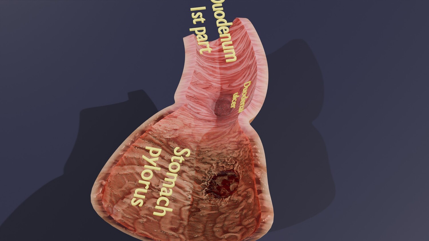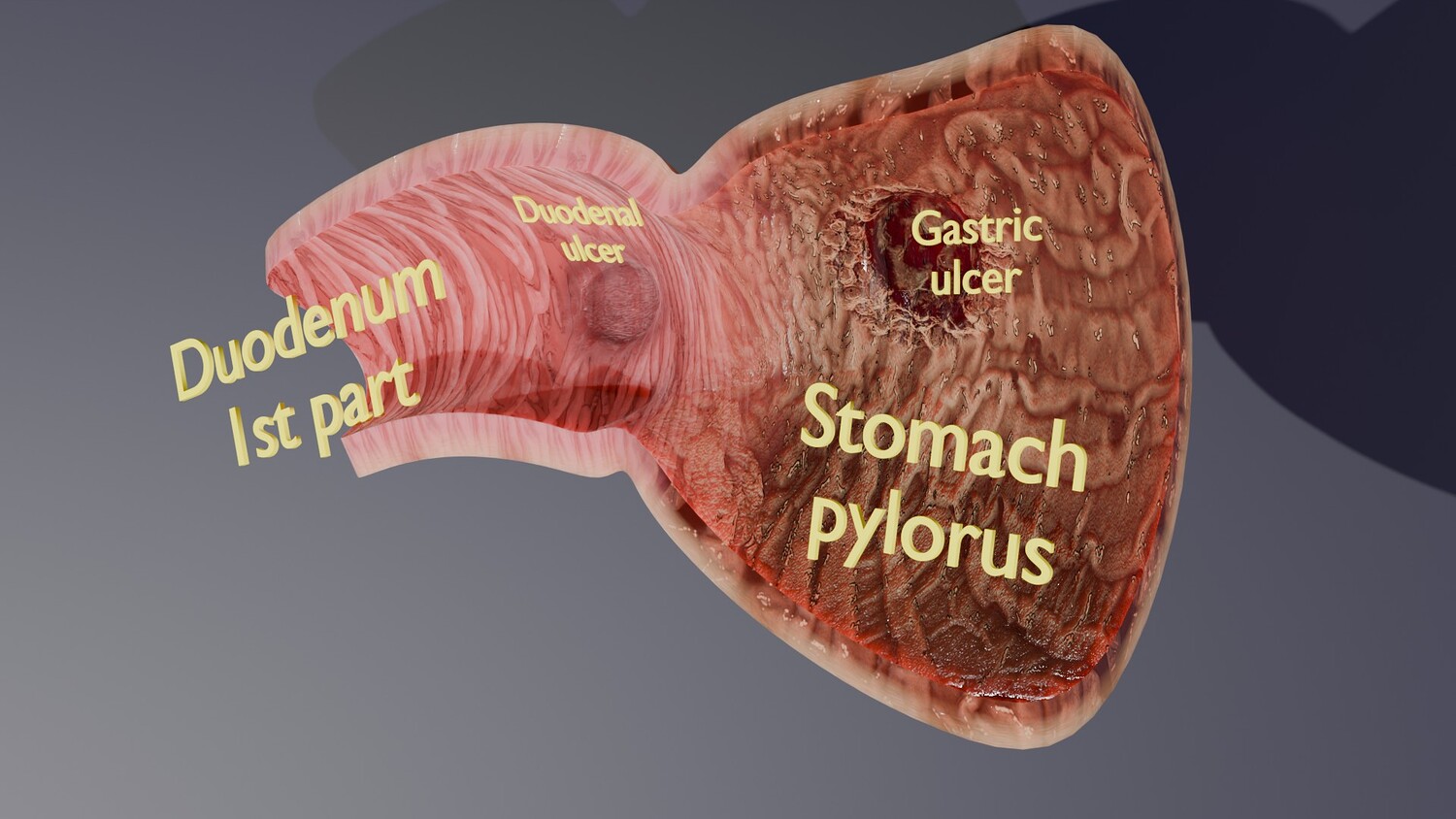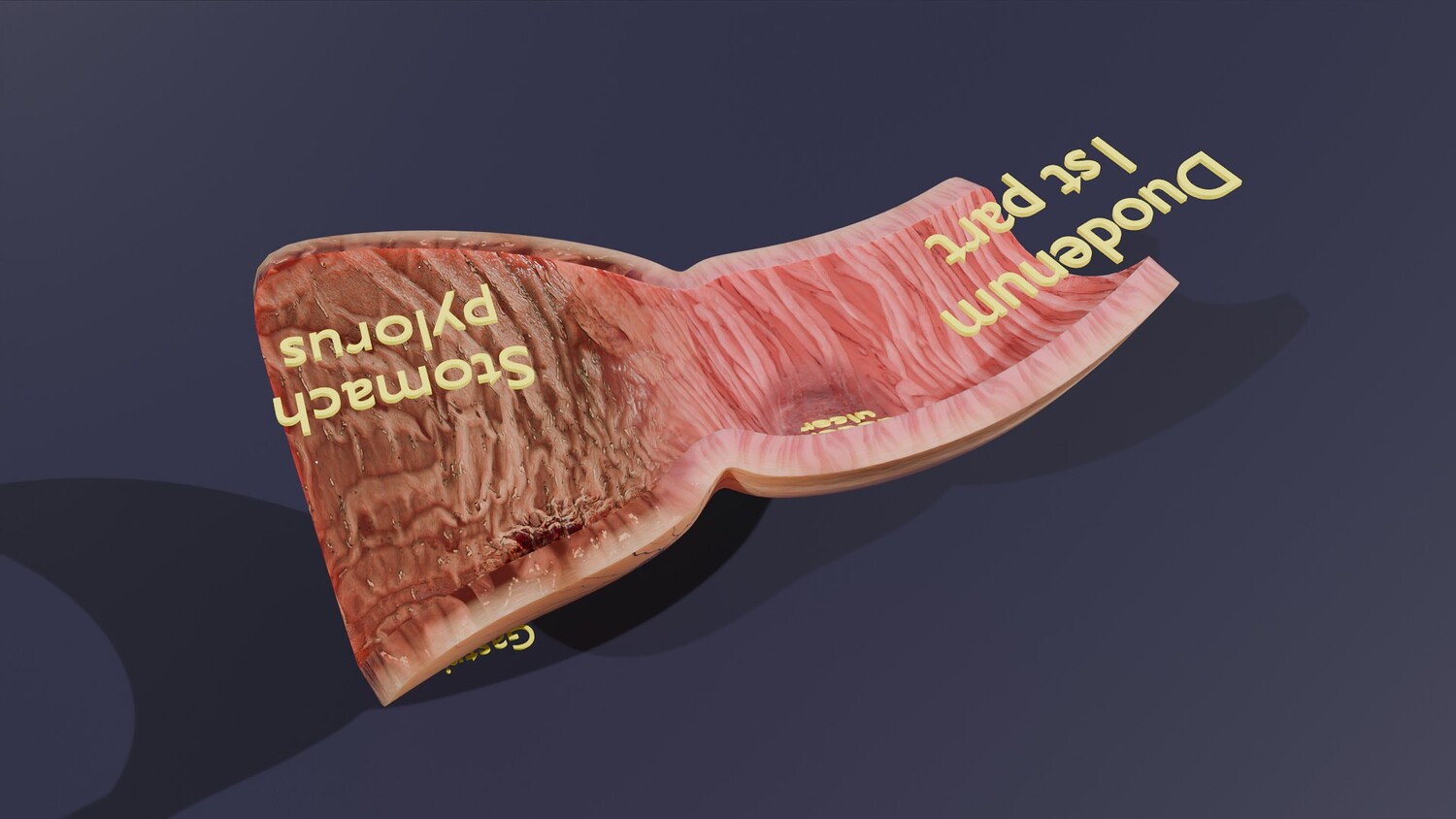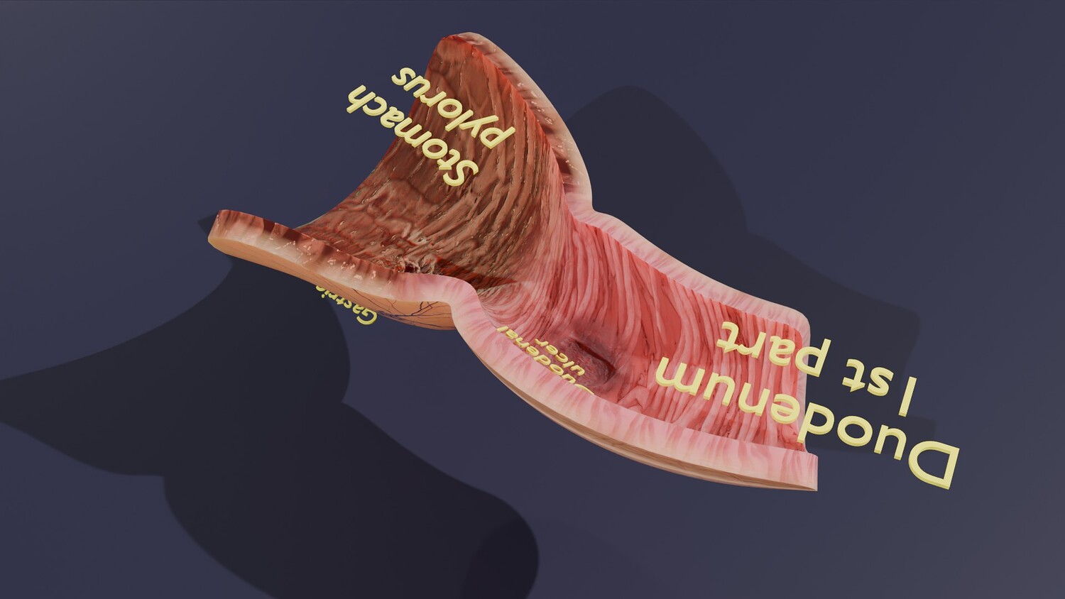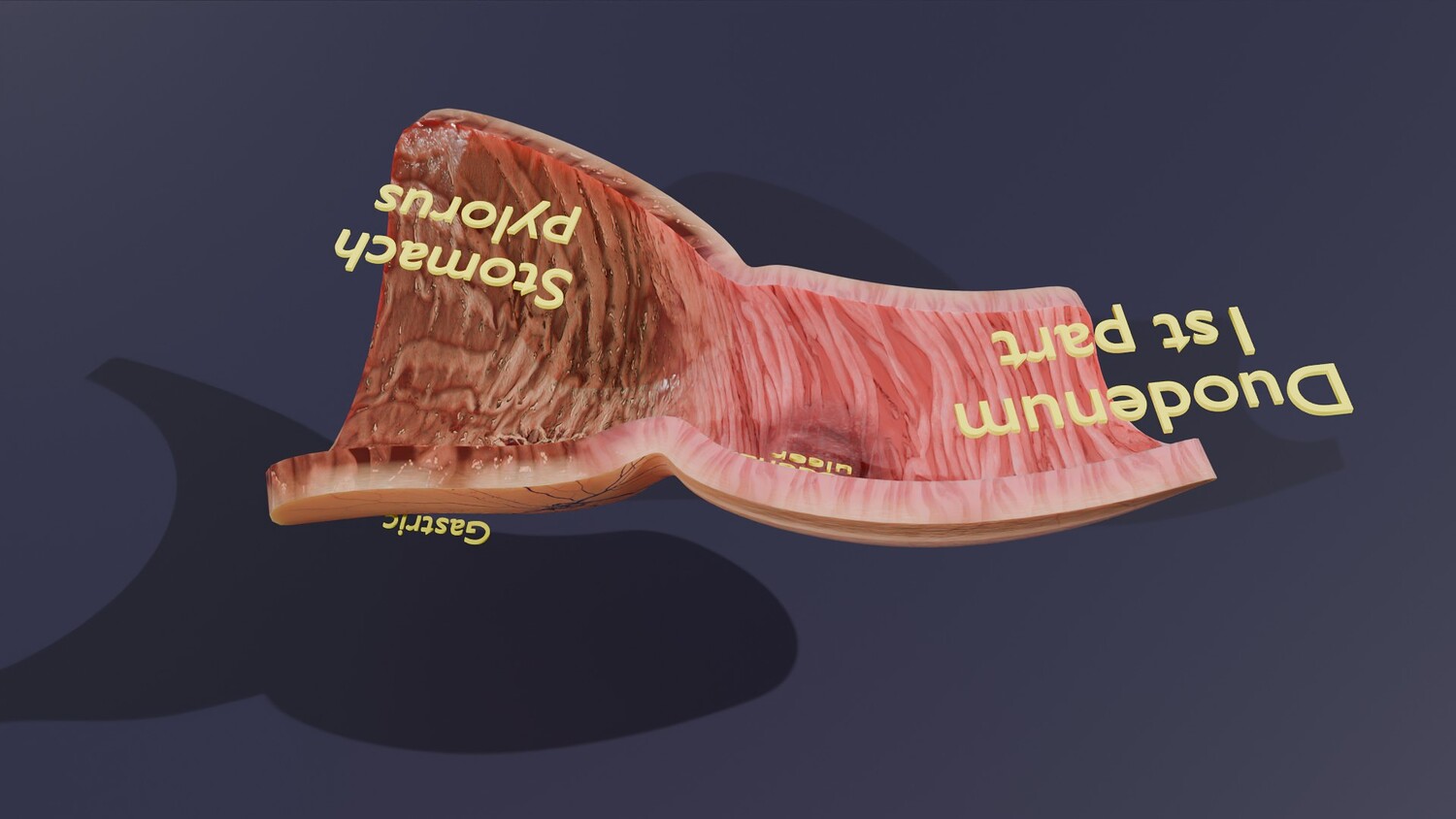 The model shows Cut open pyloric part of stomach and first part of duodenum. The left half of the mesh shows duodenal ulcer in first part duodenum While the right half shows Gastric ulcer in Pylorus of stomach. Excellent model for teaching, demonstration and knowledge of biology. The models include both procedural and image textures .blend files separately. The texture file includes diffuse, roughness, normal png and jpeg based on non-overlapping UV maps. Besides the procedural and image texture based blender model files, the formats 3mf, ply, obj, fbx,, GLTZ & GLB with applied uv mapped textures have also been included in the downloads along with stl. I have included the various formats needed by various customer for the various 3d modelling software they may be using. The following formats are compressed in rar formats:- 1. blend 2. 3mf 3. stl 4. obj 5. fbx 6. glb 7. gltz 8. ply 9. textures The downloaded files have to be unpacked using any rar unpacker. After unpacking, the folder content of the respective formats will be as follows :-. 1. blend :- single file with all applied and packed textures. 2. 3mf :- single file with all applied and packed textures. 3. stl :- single file with only geometry data 4. obj :- mutiple files including .obj,.mtl, images textures. 5. fbx :- single file with all applied and packed textures. 6. glb :- single file with all applied and packed textures. 7. gltz :- mutiple files including .bin, images textures. 8. ply 9. Texture files :- jpg and png The native file is blend so the open source software blender opens mostly all the files, with textures (packed with the files). The best way is to open the files named blend with blender. Other files have to be imported in blender by clicking within blender File >>Import>>select the type of file you want to import>>open file location of the downloaded unzipped files>>select the file>>the model would open in the 3d viewport of the software. The other files including blend can be opened with most of the free and paid 3d modelling software. The files obj & fbx are compatible with other 3d modeling software, example maya. These software's have the open/import options like blender. The files stl and 3mf are compatible with 3d printing software's. The built in3d builder " windows software opens all these files including glb, & gltz. In case you don't have 3d builder installed just download it free from Microsoft store for free. For 3d builder 3mf, fbx, stl, glb are standalone files (right click the model file>>select open with>>3d builder). For obj,ply, & gltz 3d builder will prompt you to select the model files .mtl and image textures (these are packed in the rar files). The textures files have been separately supplied additionally; in case one needs them.