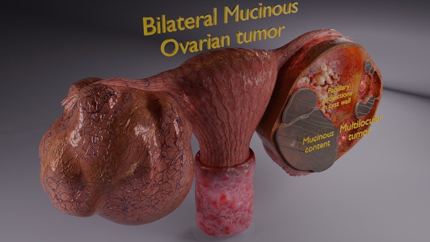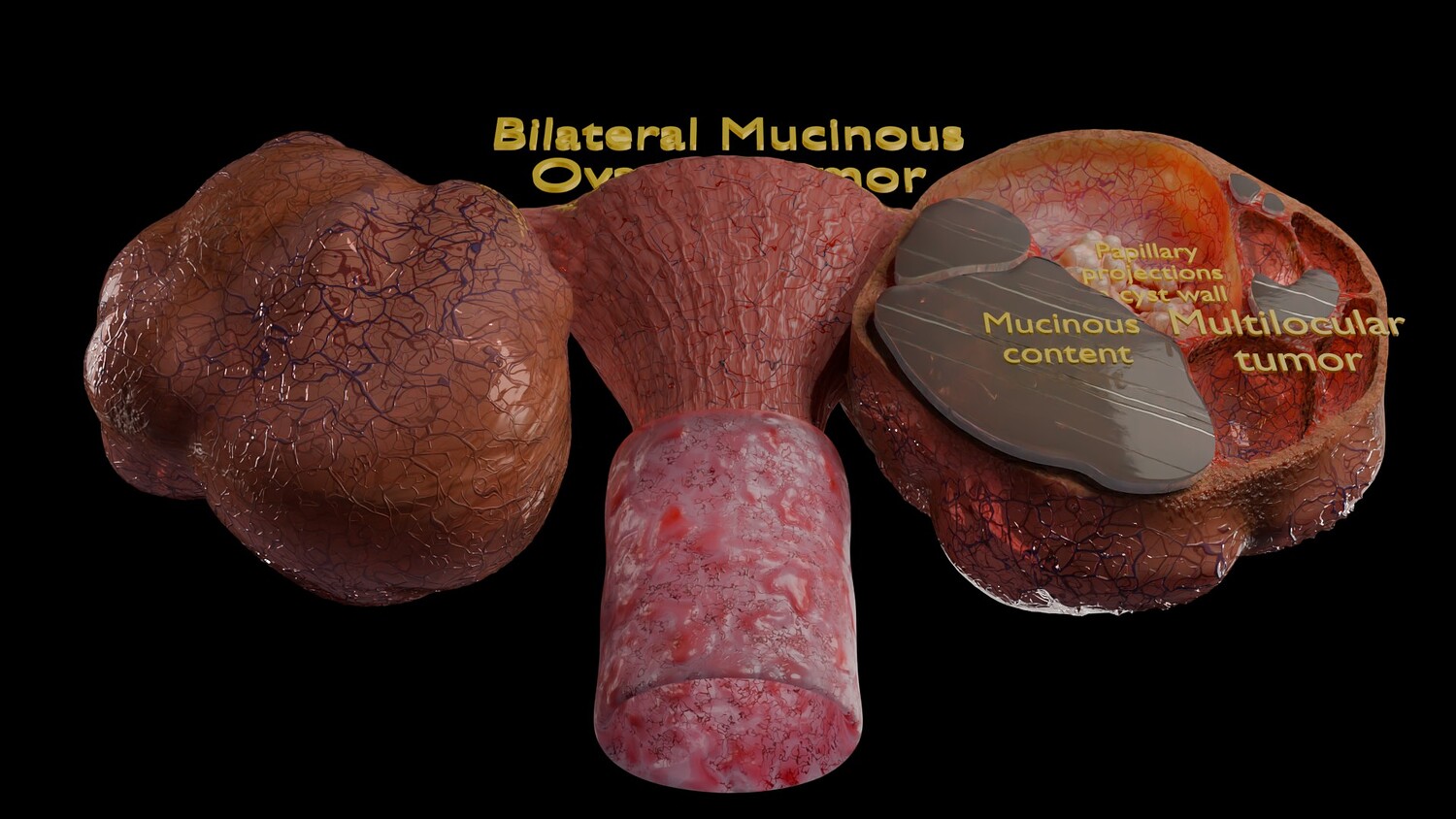 An ovarian mucinous cystic tumor is a smooth-surfaced tumor that is usually unilateral and multiloculated, containing viscous, mucoid fluid within its many cysts. Sizes can vary greatly, from a few centimeters to over 30 cm, with smaller tumors being more suggestive of benign pathology and the presence of solid components or papillary projections often indicating malignancy. The papillary (finger-like) projections on the inner walls or surface, as depicted in this model, may indicate a boderline or malignant potential. Excellent model for teaching, demonstration and knowledge of biology. The models include both procedural and image textures blend files separately. The texture file includes diffuse, roughness, normal and metal jpeg based on non-overlapping UV maps. The formats 3mf, ply, obj, fbx,, GLTZ & GLB with applied uv mapped textures have also been included in the downloads along with stl. I have included the various formats needed by various customer for the various 3d modelling software they may be using. The following formats are compressed in zip formats:- 1. blend 2. 3mf 3. stl 4. obj 5. fbx 6. glb 7. gltz 8. textures