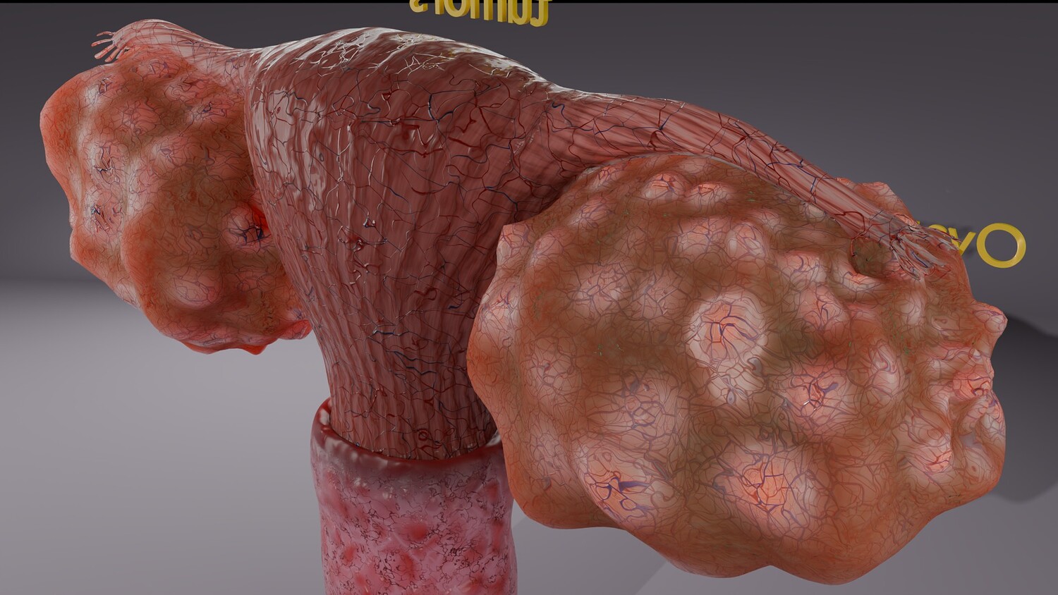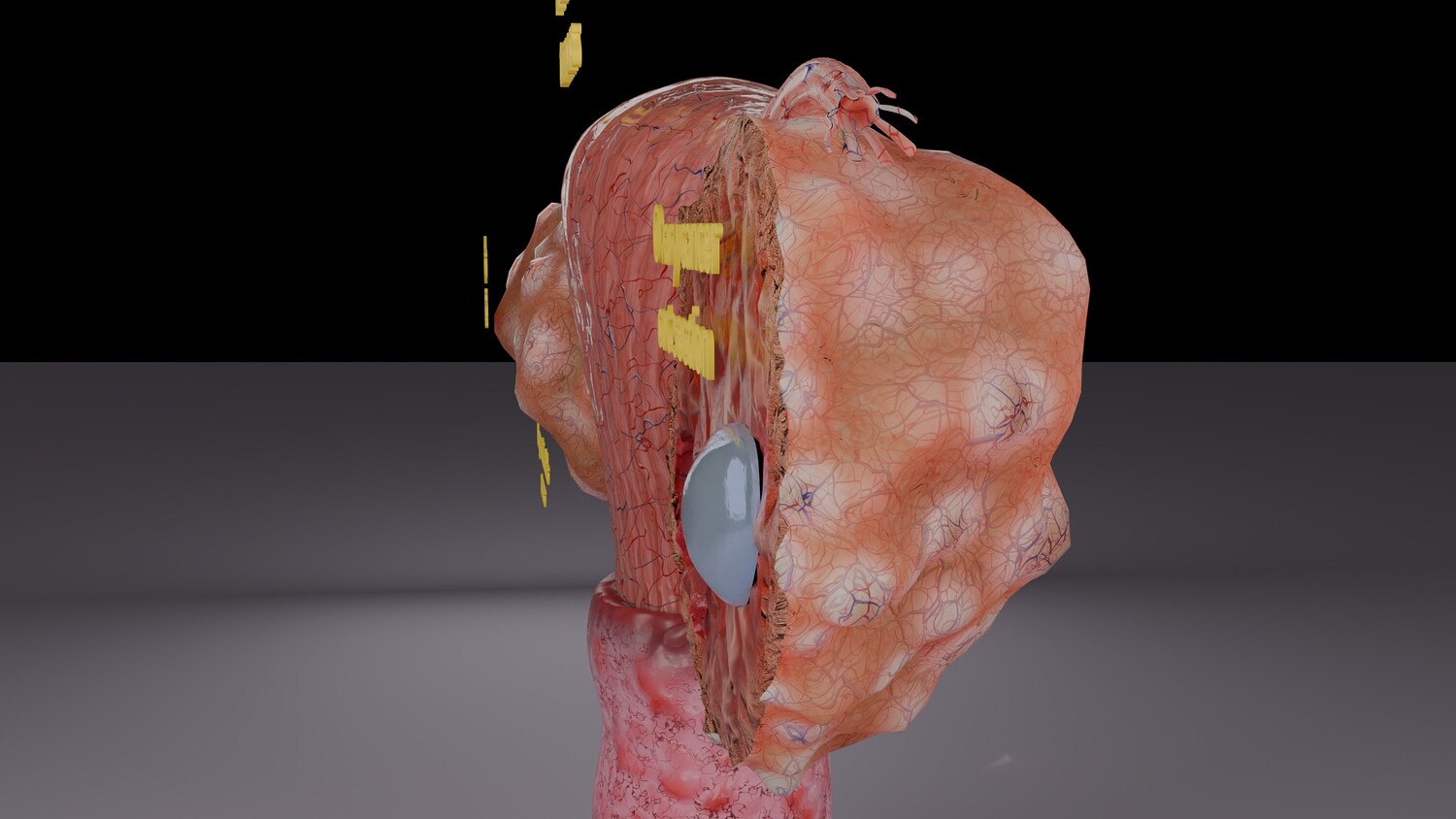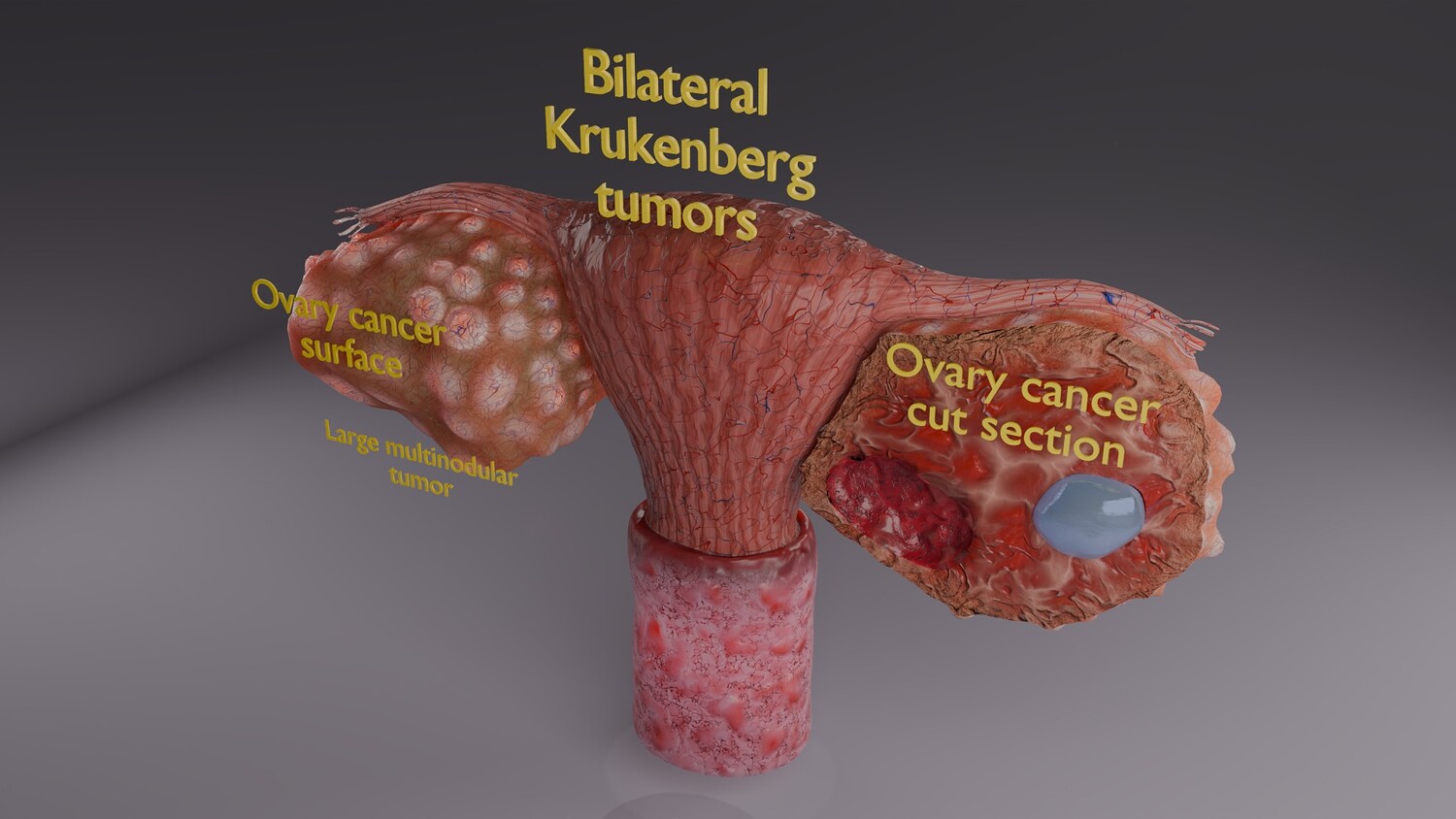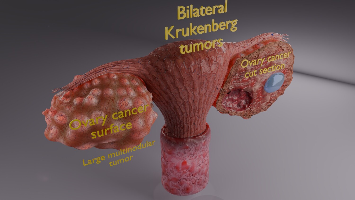 The model shows a Krukenberg tumor. It is a cancer in the ovary that metastasized from a primary cancer of other body site, classically the stomach pyloric cancer and the breast. Excellent model for teaching, demonstration and knowledge of biology. The models include both procedural and image textures blend files separately. The texture file includes diffuse, roughness, normal and metal jpeg based on non-overlapping UV maps. The formats 3mf, ply, obj, fbx,, GLTZ & GLB with applied uv mapped textures have also been included in the downloads along with stl. I have included the various formats needed by various customer for the various 3d modelling software they may be using. The following formats are compressed in rar formats:- 1. blend 2. 3mf 3. stl 4. obj 5. fbx 6. glb 7. gltz 8. textures