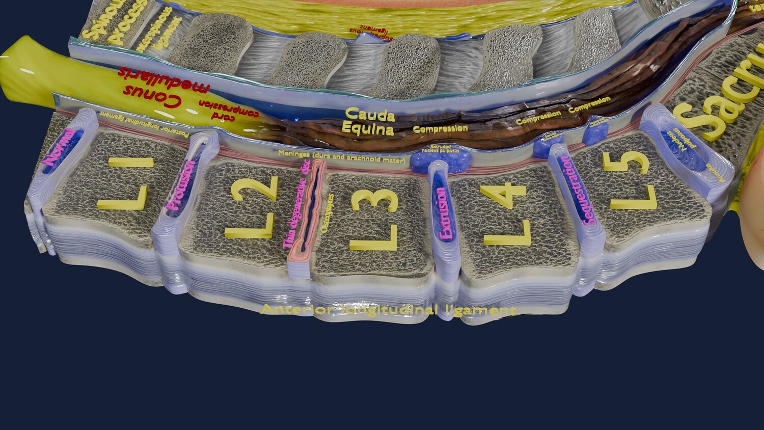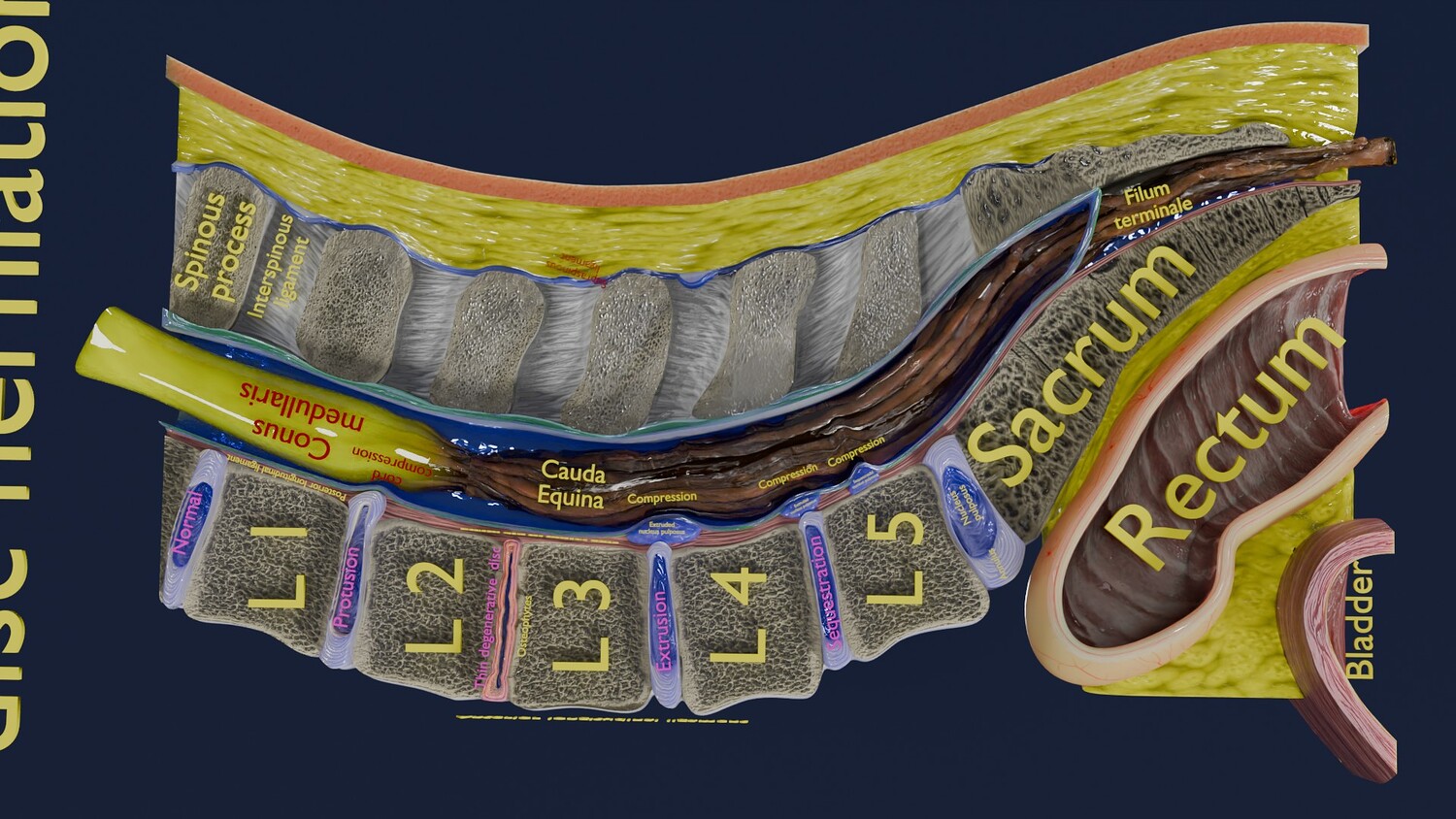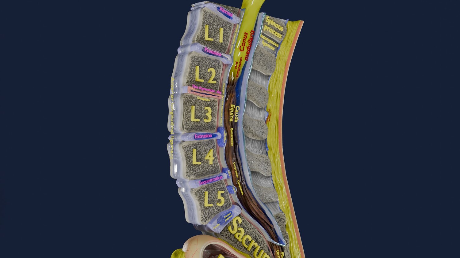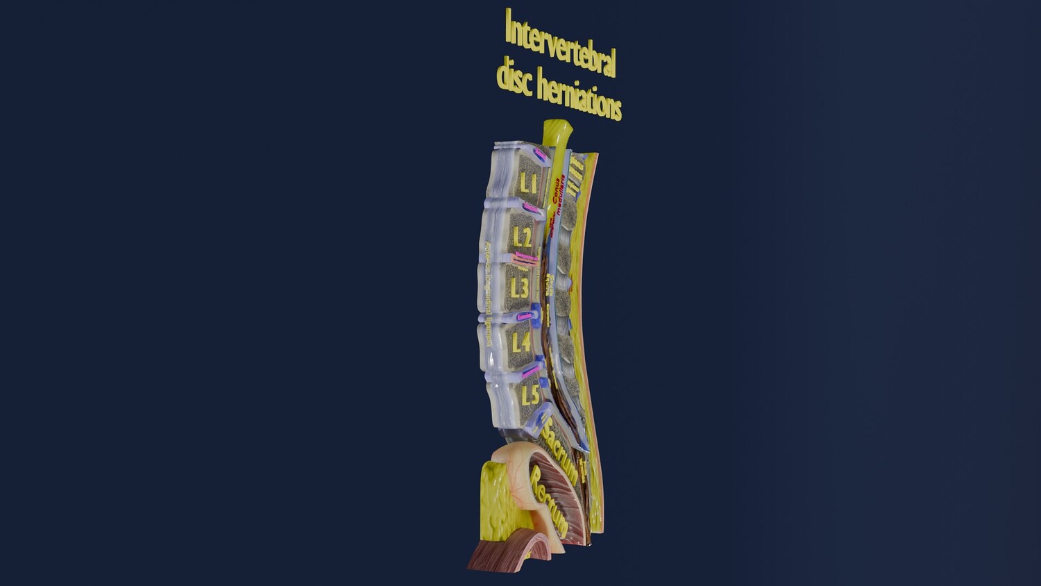 The model shows four Stages of a Herniated Disc, i.e degeneration, protrusion, extrusion and sequestration along with it its effect that is cord compression. The two parts of the i Intervertebral disc that is the nucleus pulposus and the annulus parts are nicely delineated in different injuries of Intervertebral disc. Excellent model for teaching, demonstration and knowledge of biology. The models include both procedural and image textures .blend files separately. The texture file includes diffuse, roughness, normal and metal png and jpeg based on non-overlapping UV maps. Besides the procedural and image texture based blender model files, the formats 3mf, ply, obj, fbx,, GLTZ & GLB with applied uv mapped textures have also been included in the downloads along with stl. I have included the various formats needed by various customer for the various 3d modelling software they may be using. The following formats are compressed in rar formats:- 1. blend 2. 3mf 3. stl 4. obj 5. fbx 6. glb 7. gltz 8. ply 9. textures