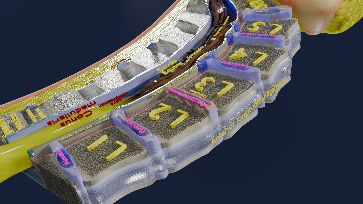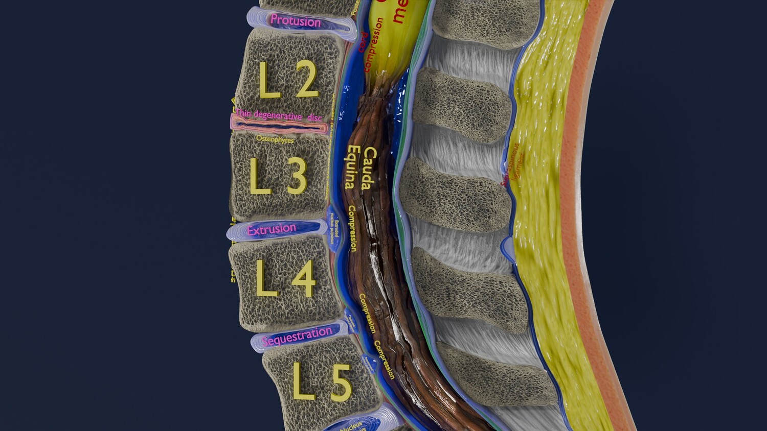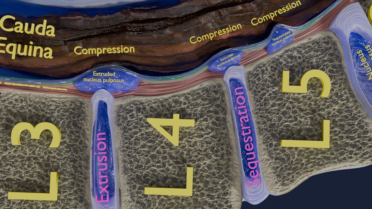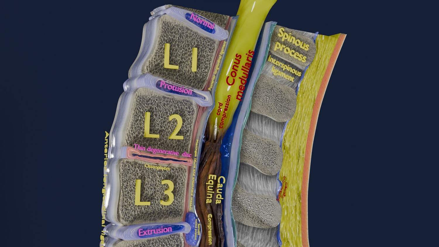 The model shows four Stages of a Herniated Disc, i.e degeneration, protrusion, extrusion and sequestration along with it its effect that is cord compression. The two parts of the i Intervertebral disc that is the nucleus pulposus and the annulus parts are nicely delineated in different injuries of Intervertebral disc. Excellent model for teaching, demonstration and knowledge of biology. The models include both procedural and image textures .blend files separately. The texture file includes diffuse, roughness, normal and metal png and jpeg based on non-overlapping UV maps. Besides the procedural and image texture based blender model files, the formats 3mf, ply, obj, fbx,, GLTZ & GLB with applied uv mapped textures have also been included in the downloads along with stl. I have included the various formats needed by various customer for the various 3d modelling software they may be using. The following formats are compressed in rar formats:- 1. blend 2. 3mf 3. stl 4. obj 5. fbx 6. glb 7. gltz 8. ply 9. textures