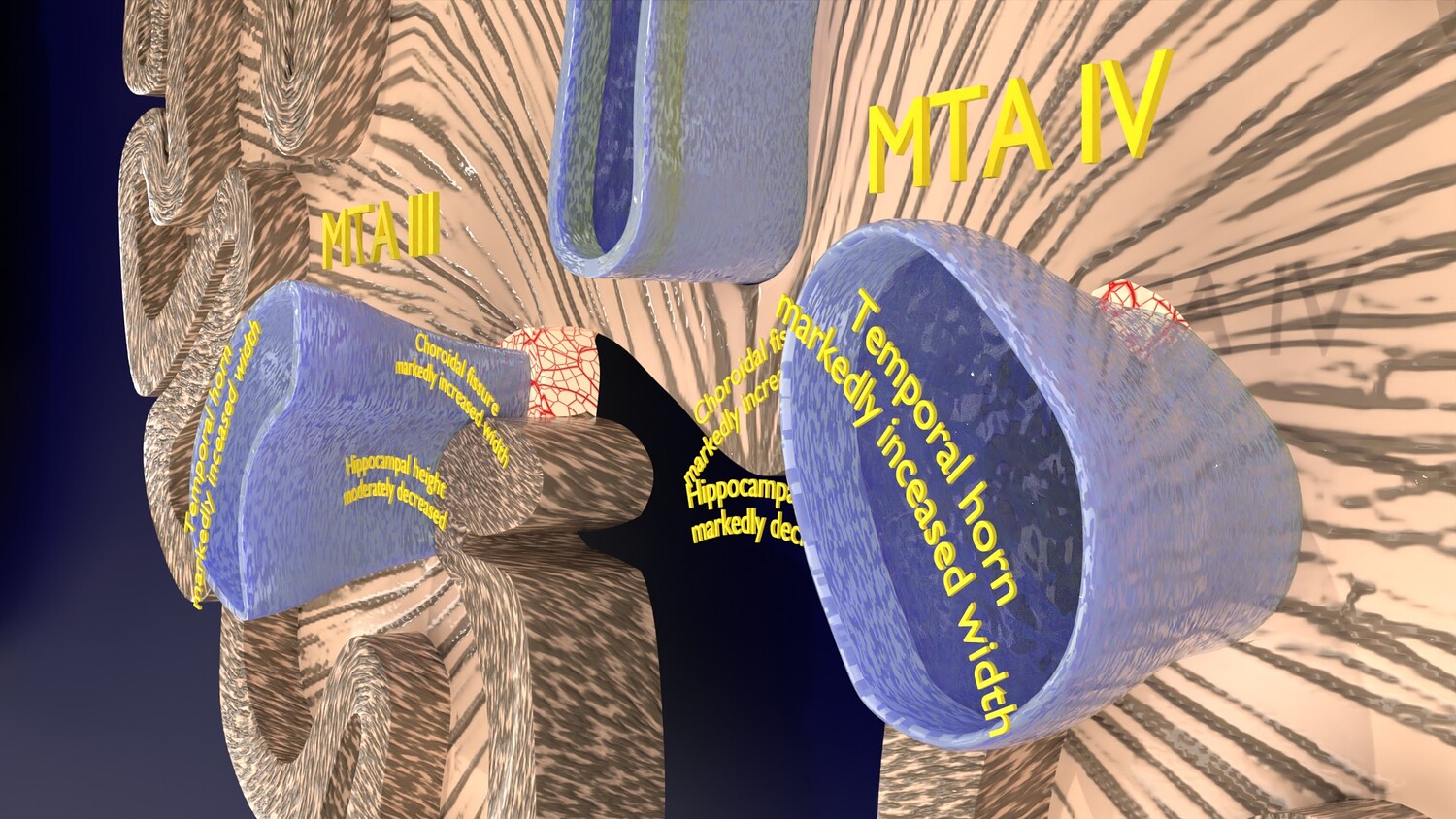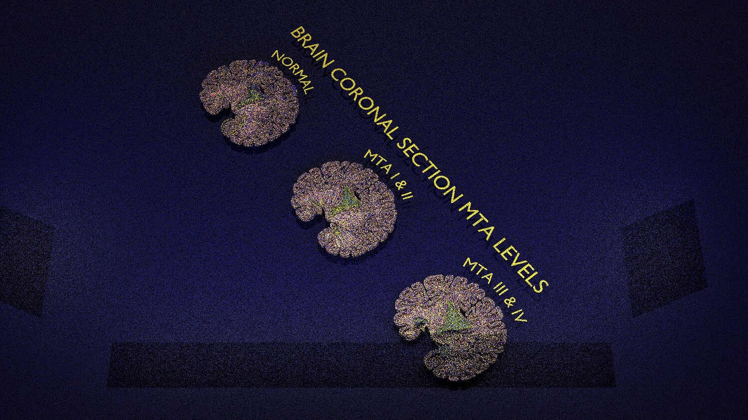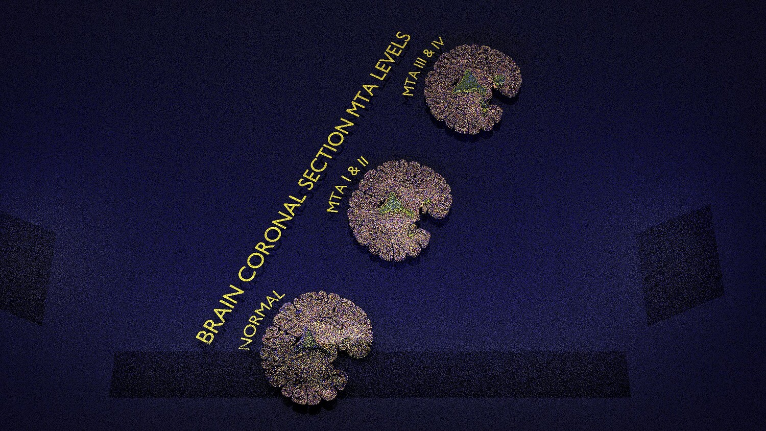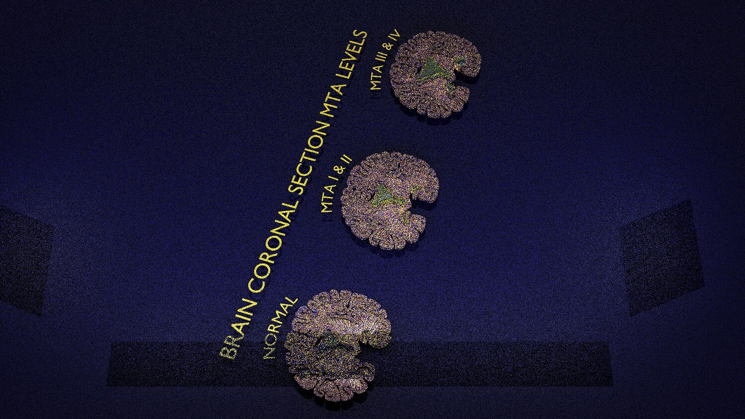 The model mesh includes coronal sectional model of brain schematically depicting the Hippocampus atrophy levels MTA (mesiotemporal atrophy) 1-4. Score 0 indicates no atrophy, score 1 indicates widening of the choroidal fissure, score 2 includes additional widening of the temporal horn of the lateral ventricle and slightly decreased hippocampal formation height, score 3 includes moderate loss of hippocampal formation volume, and 4 indicates an increase in all of these findings in the final stage. Excellent model for teaching, demonstration and knowledge of medical science. The models include image textures .blend file. The texture file includes diffuse, roughness, and normal png and jpeg based on non-overlapping UV maps. Besides the procedural and image texture based blender model files, the formats 3mf, ply, obj, fbx,, GLTZ & GLB with applied uv mapped textures have also been included in the downloads along with stl. I have included the various formats needed by various customer for the various 3d modelling software they may be using. The following formats are compressed in rar formats:- 1. blend 2. 3mf 3. stl 4. obj 5. fbx 6. glb 7. gltz 8. ply 9. textures