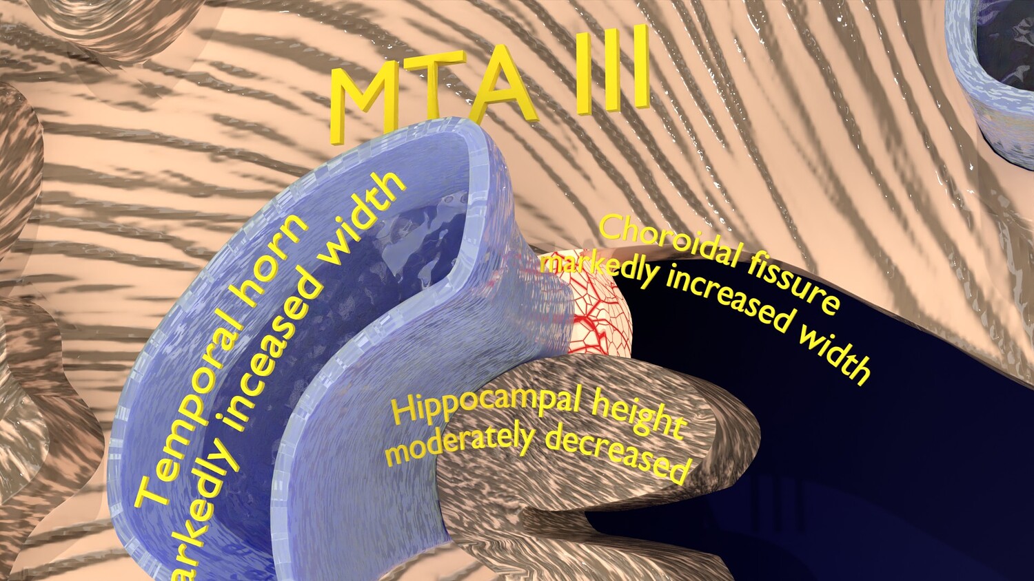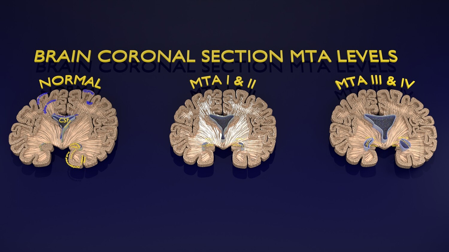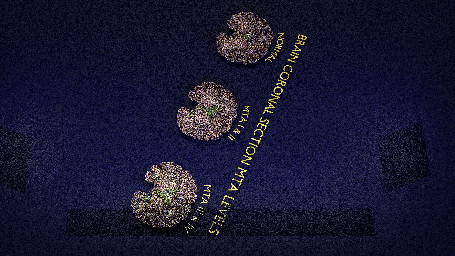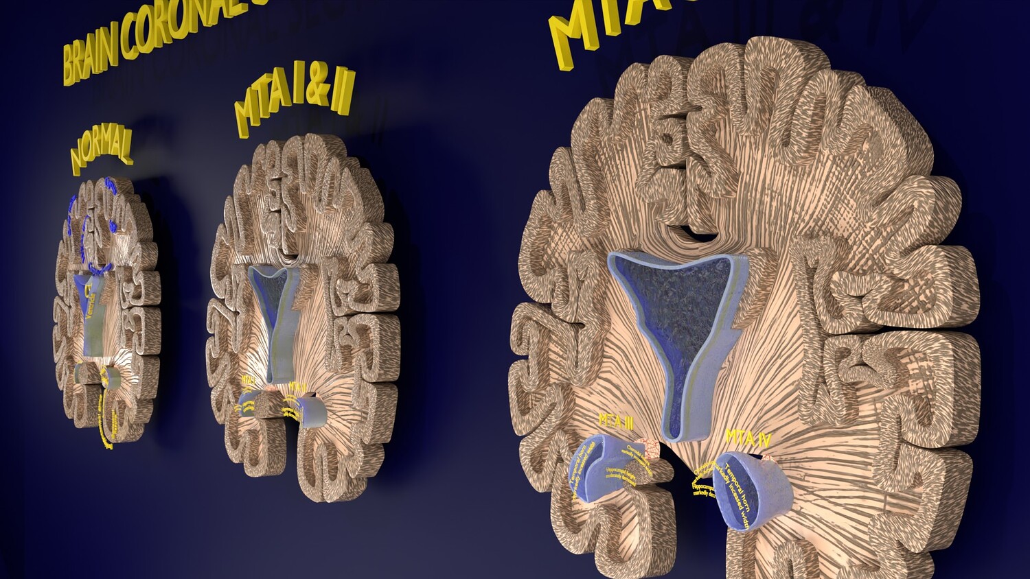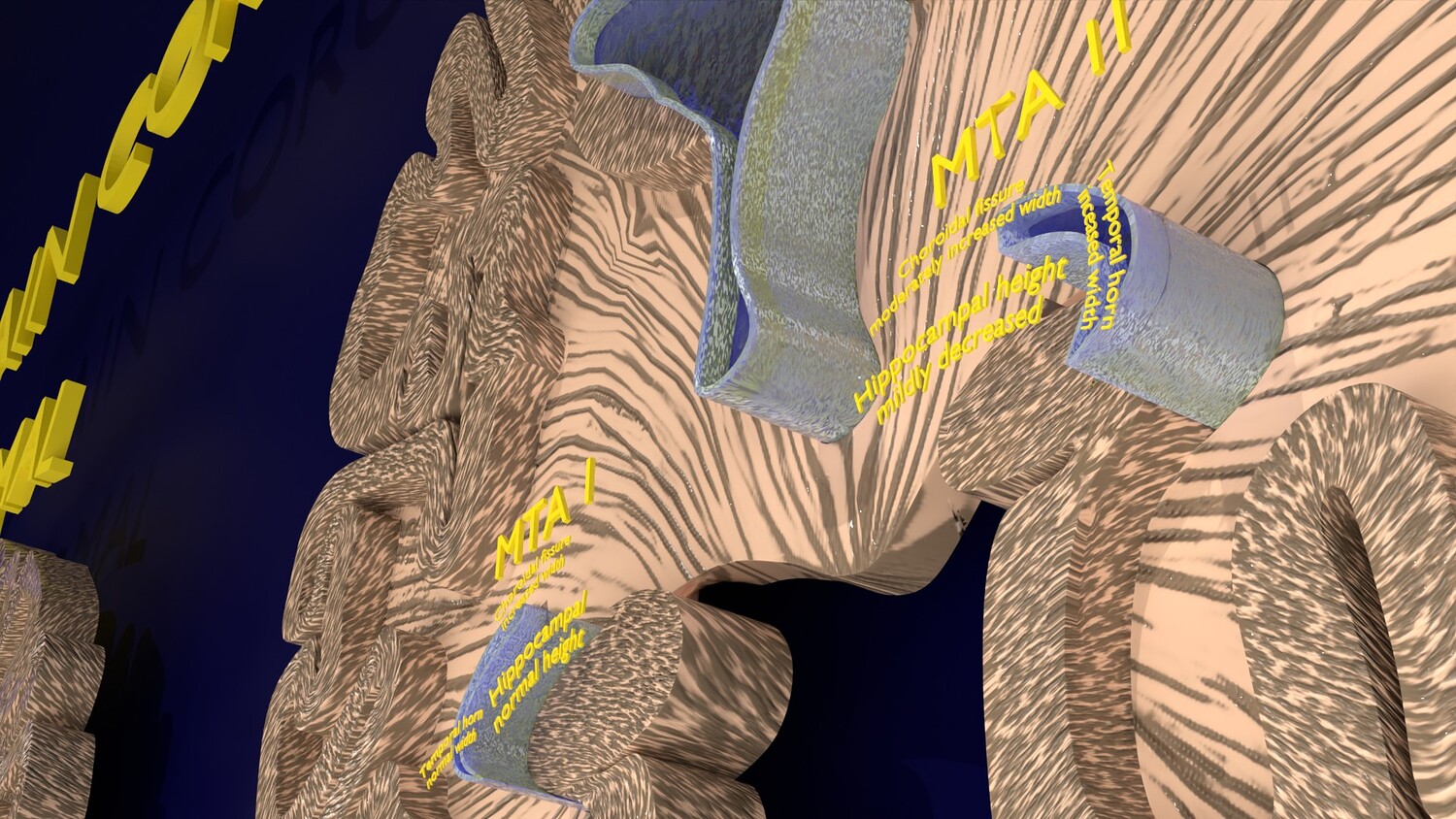 The model mesh includes coronal sectional model of brain schematically depicting the Hippocampus atrophy levels MTA (mesiotemporal atrophy) 1-4. Score 0 indicates no atrophy, score 1 indicates widening of the choroidal fissure, score 2 includes additional widening of the temporal horn of the lateral ventricle and slightly decreased hippocampal formation height, score 3 includes moderate loss of hippocampal formation volume, and 4 indicates an increase in all of these findings in the final stage. Excellent model for teaching, demonstration and knowledge of medical science. The models include image textures .blend file. The texture file includes diffuse, roughness, and normal png and jpeg based on non-overlapping UV maps. Besides the procedural and image texture based blender model files, the formats 3mf, ply, obj, fbx,, GLTZ & GLB with applied uv mapped textures have also been included in the downloads along with stl. I have included the various formats needed by various customer for the various 3d modelling software they may be using. The following formats are compressed in rar formats:- 1. blend 2. 3mf 3. stl 4. obj 5. fbx 6. glb 7. gltz 8. ply 9. textures