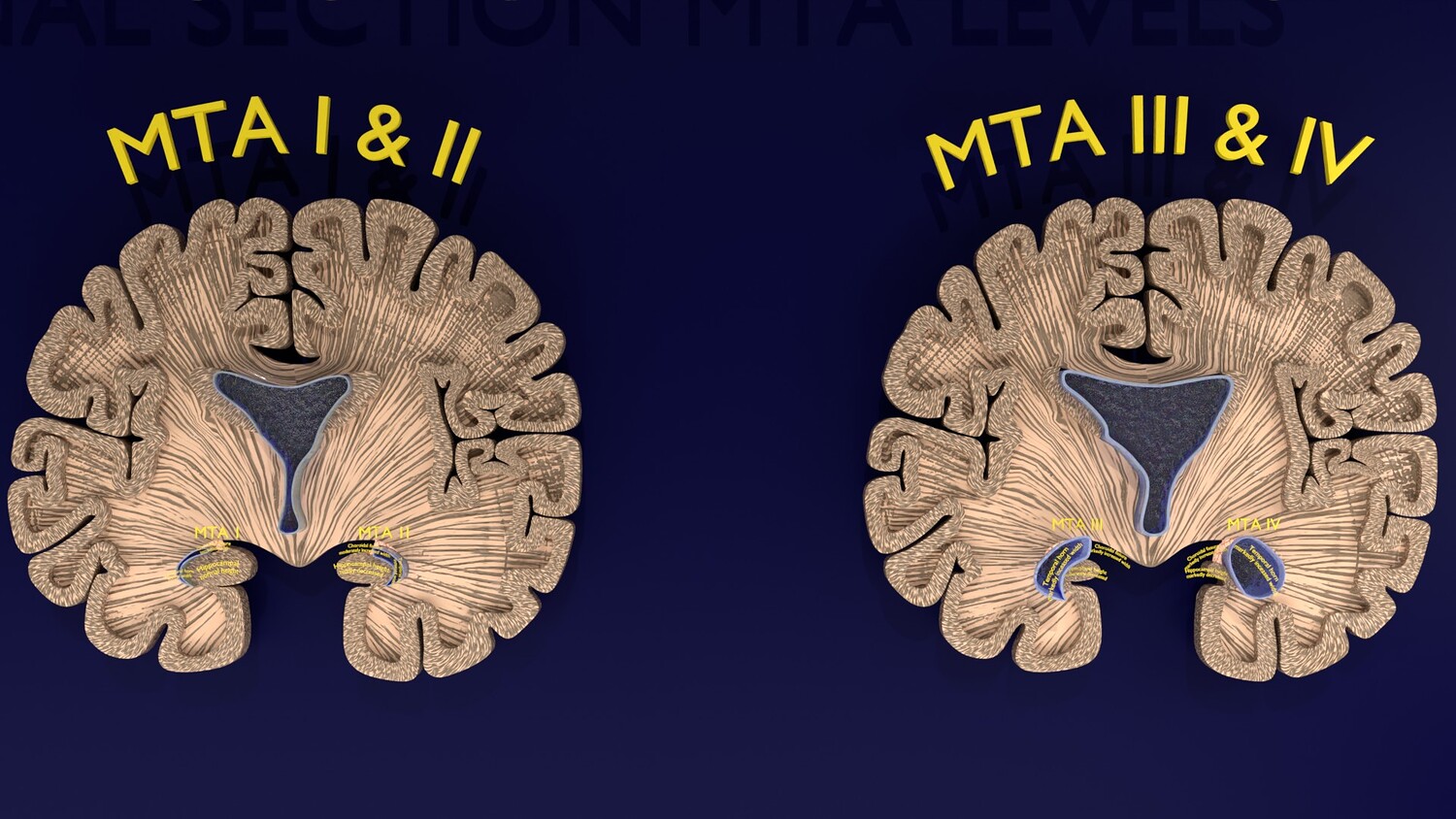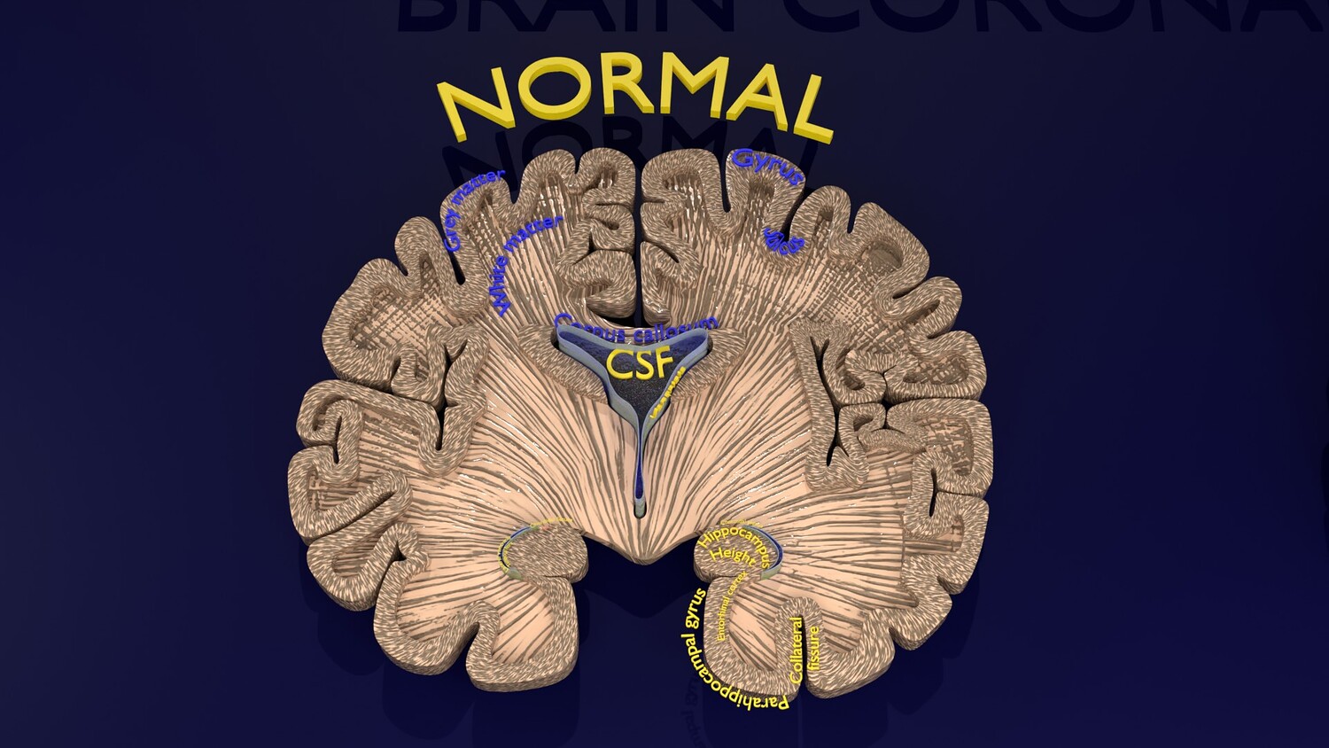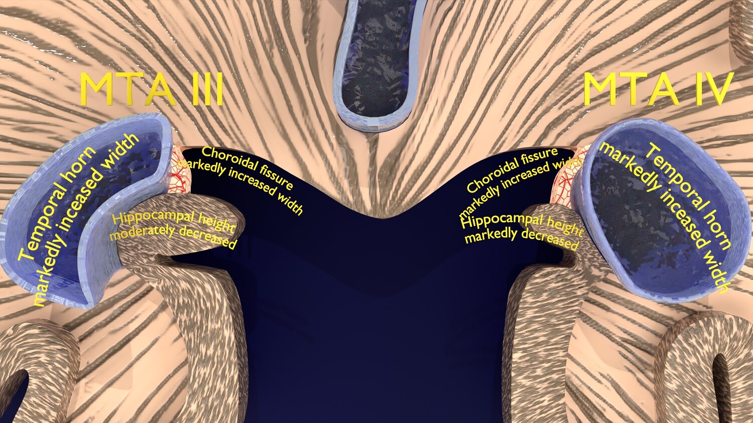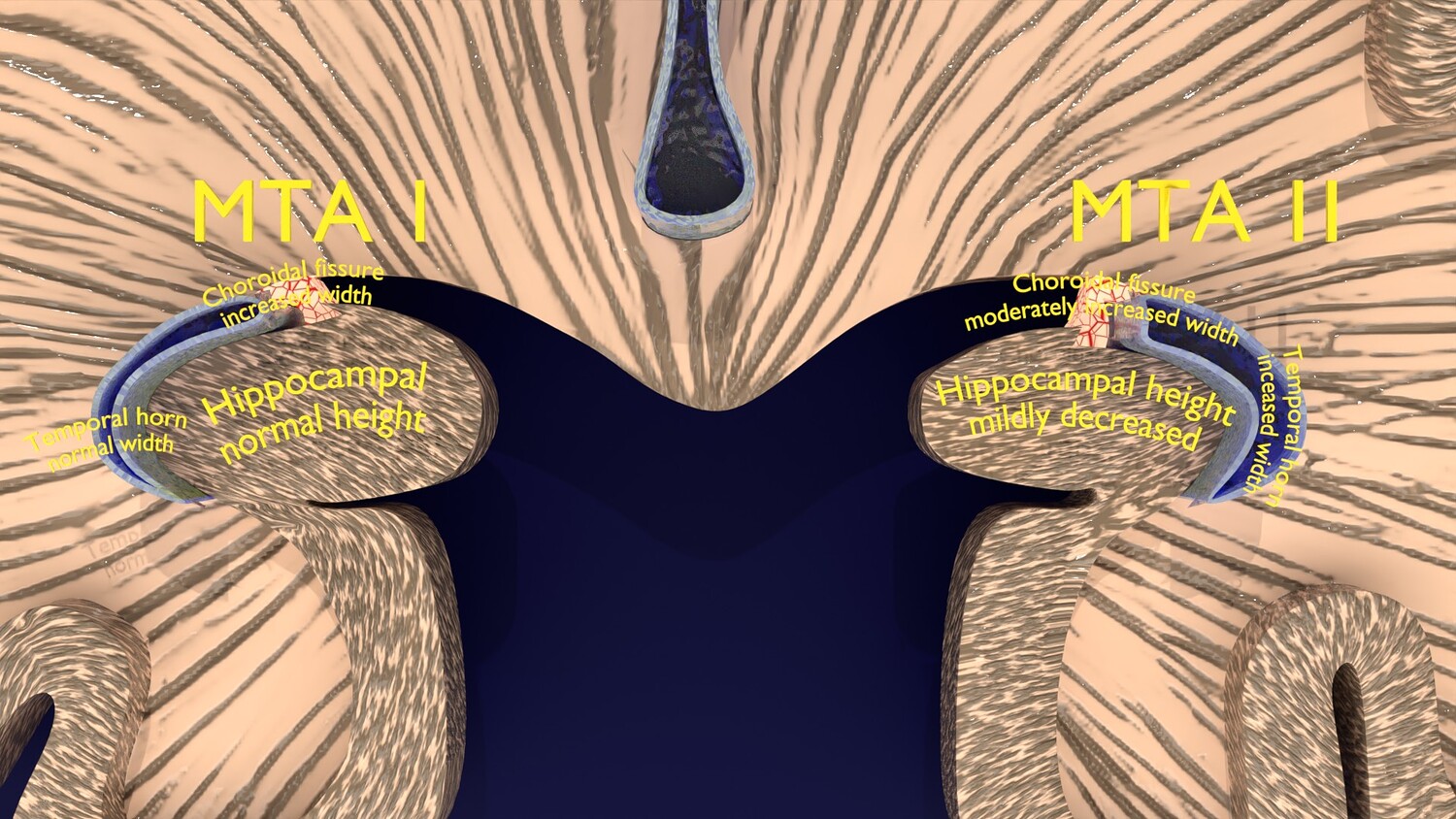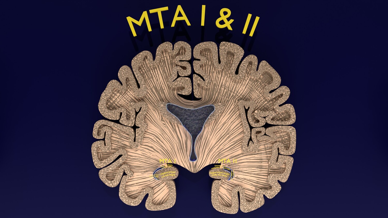 The model mesh includes coronal sectional model of brain schematically depicting the Hippocampus atrophy levels MTA (mesiotemporal atrophy) 1-4. Score 0 indicates no atrophy, score 1 indicates widening of the choroidal fissure, score 2 includes additional widening of the temporal horn of the lateral ventricle and slightly decreased hippocampal formation height, score 3 includes moderate loss of hippocampal formation volume, and 4 indicates an increase in all of these findings in the final stage. Excellent model for teaching, demonstration and knowledge of medical science. The models include image textures .blend file. The texture file includes diffuse, roughness, and normal png and jpeg based on non-overlapping UV maps. Besides the procedural and image texture based blender model files, the formats 3mf, ply, obj, fbx,, GLTZ & GLB with applied uv mapped textures have also been included in the downloads along with stl. I have included the various formats needed by various customer for the various 3d modelling software they may be using. The following formats are compressed in rar formats:- 1. blend 2. 3mf 3. stl 4. obj 5. fbx 6. glb 7. gltz 8. ply 9. textures