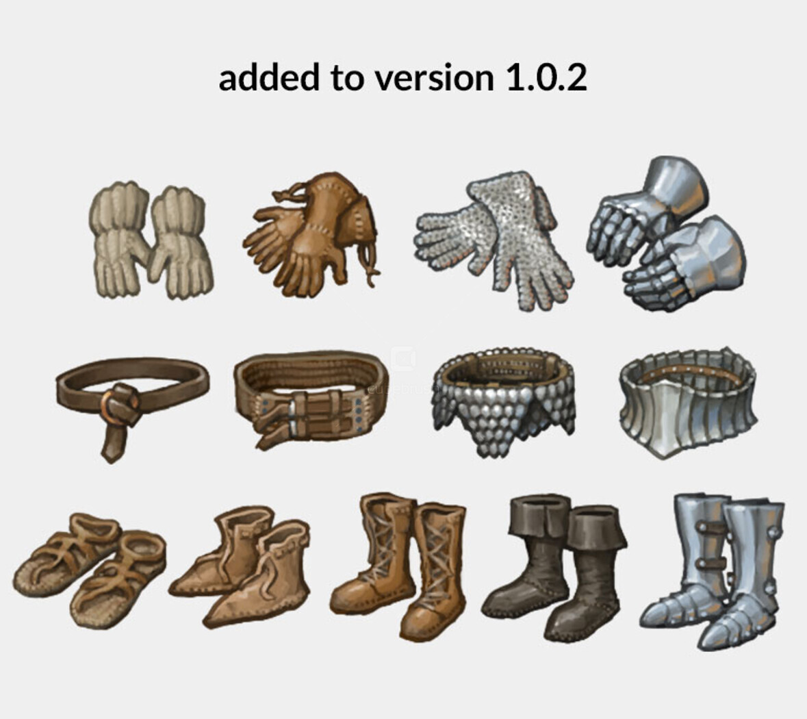 - 1.0.2: 2025 10 October 11: added 13 icons to fill out some new item categories (boots, belts, gloves) for a total of 106 icons