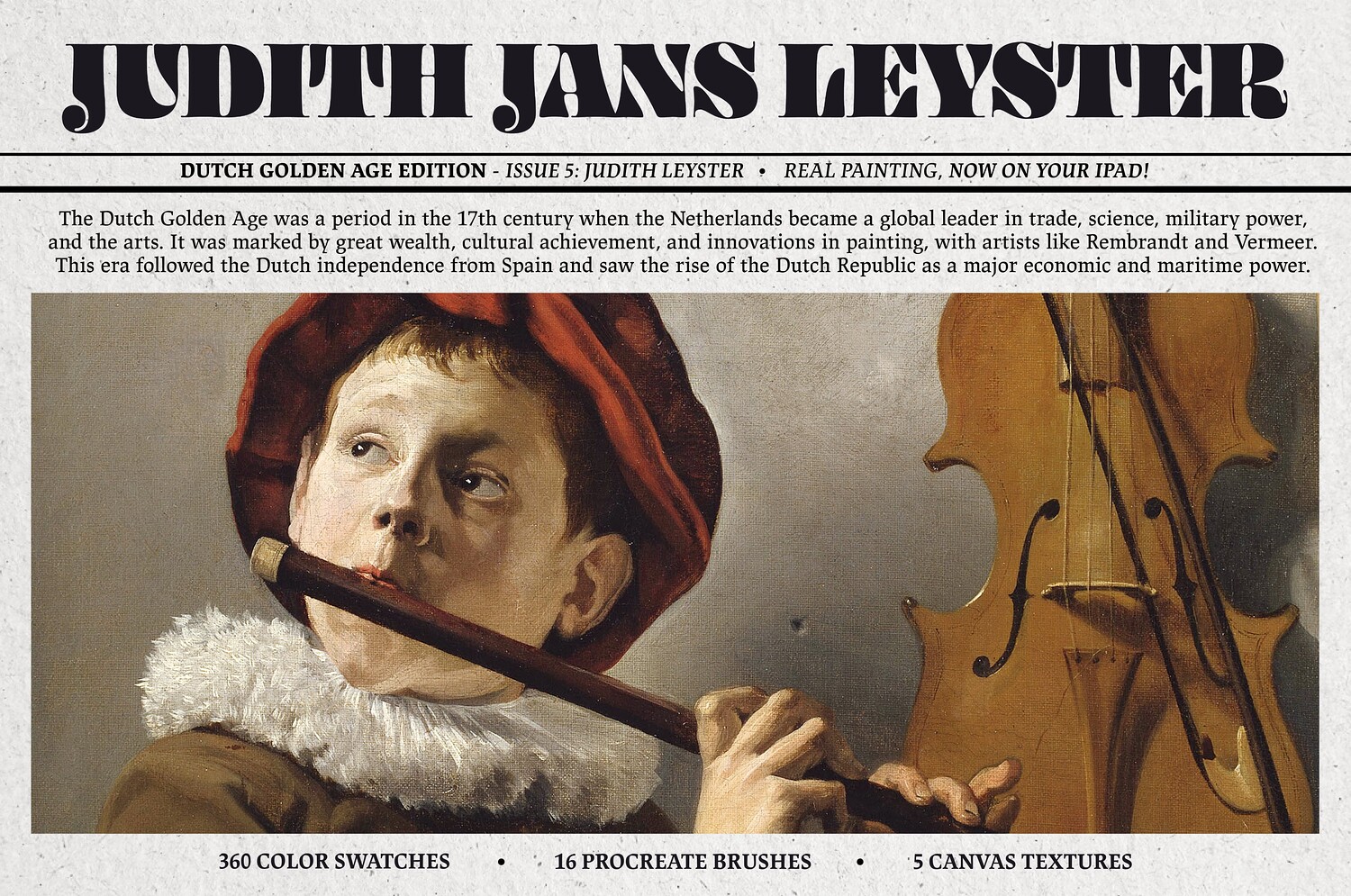 Free Sample - Judith Leyster Procreate Kit (Procreate Brushes, Canvas Textures & Color Palettes)
