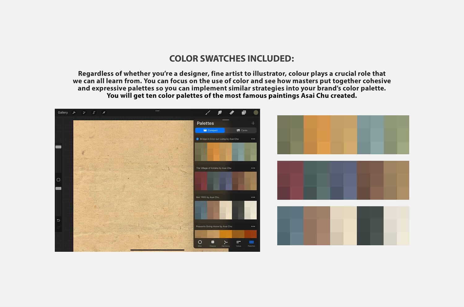 Asai Chu Procreate Kit (Procreate Brushes, Color Palettes & Woodblock Print Textures)