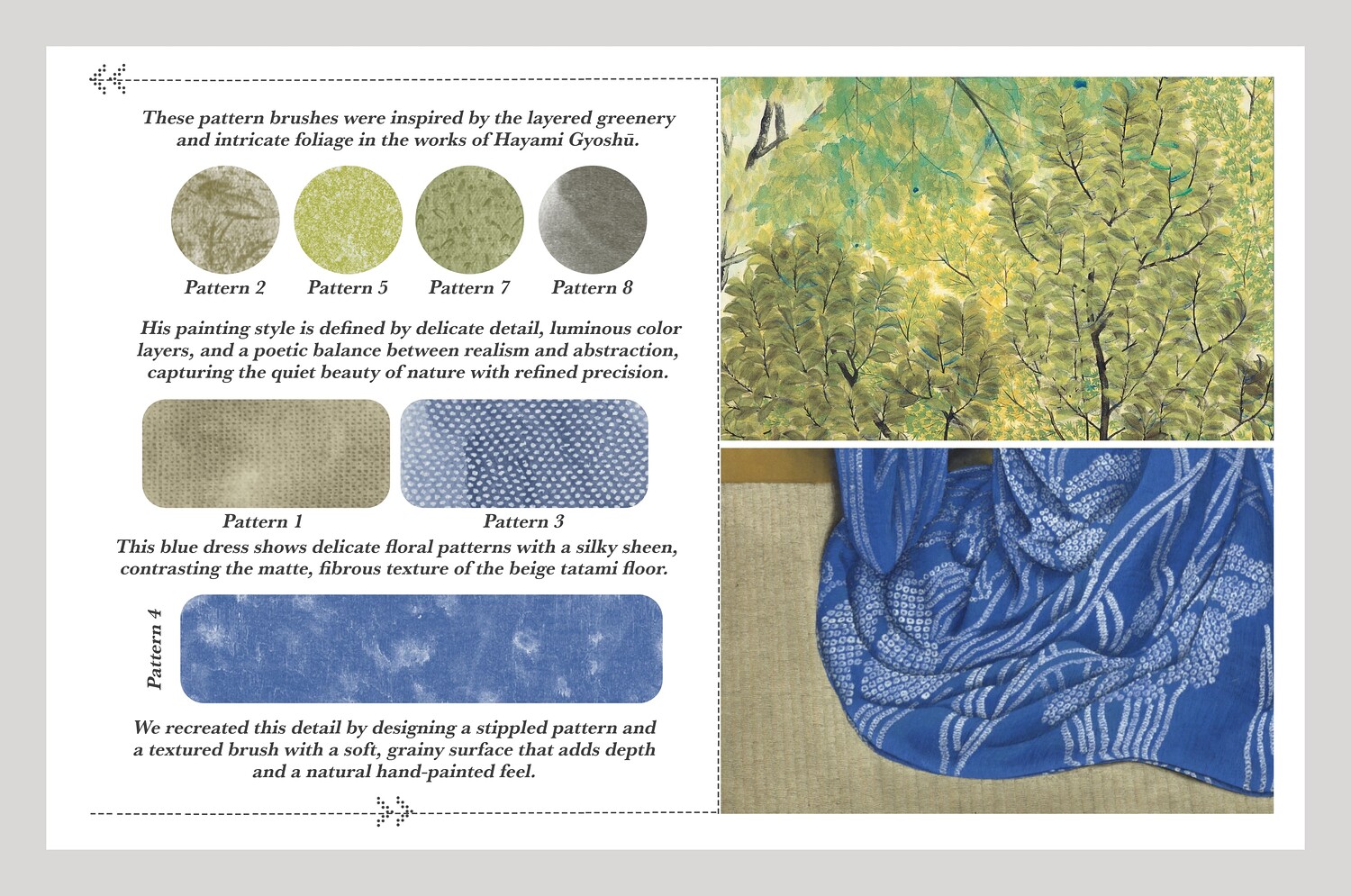 The third product in the series is dedicated to Hayami Gyoshū, an artist whose work embodies the harmony between nature and spirit in early 20th-century Japan. His intricate details, luminous colors, and poetic compositions have inspired the creation of these digital tools, enabling you to explore his serene and expressive style directly on your iPad.