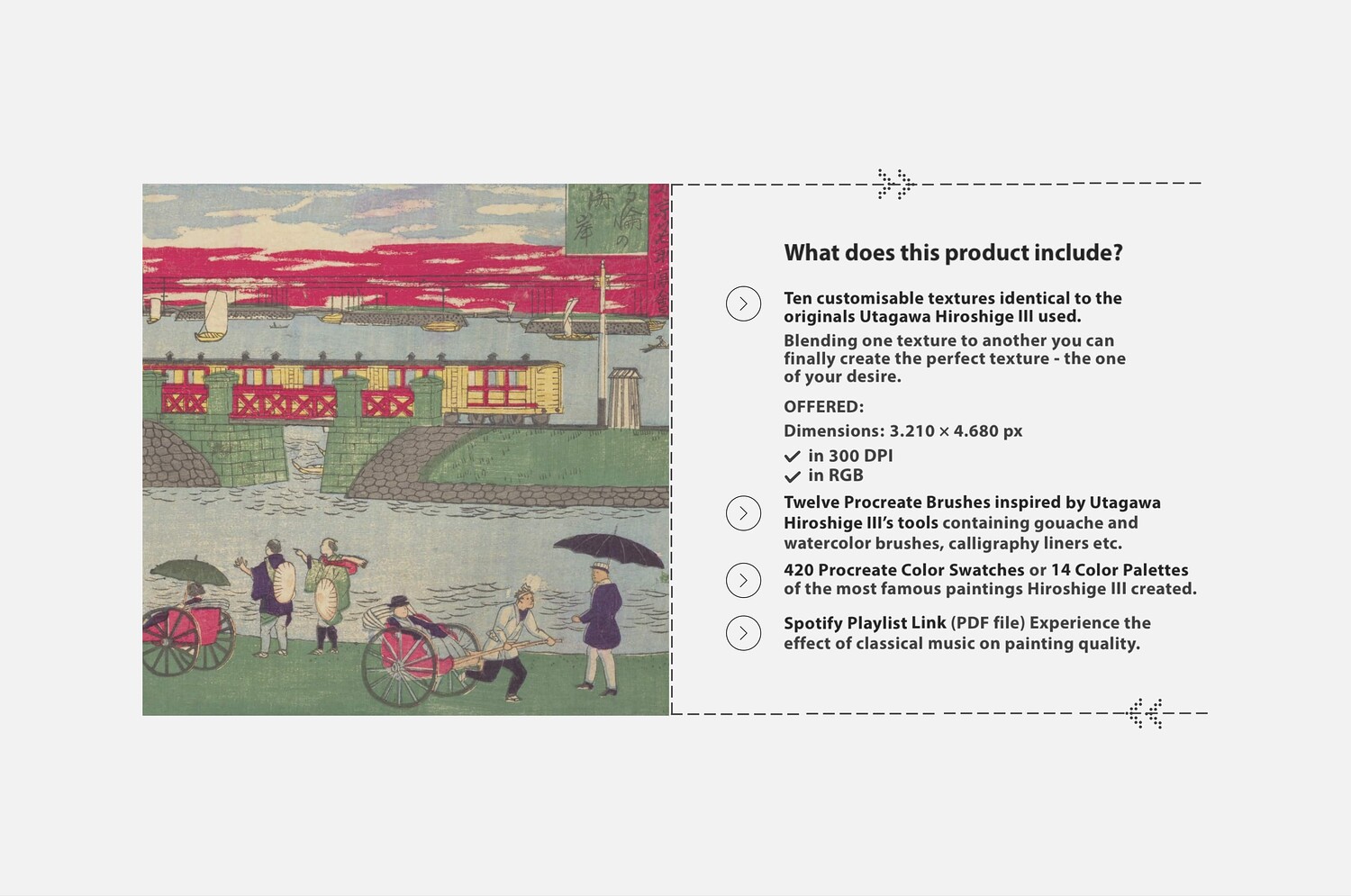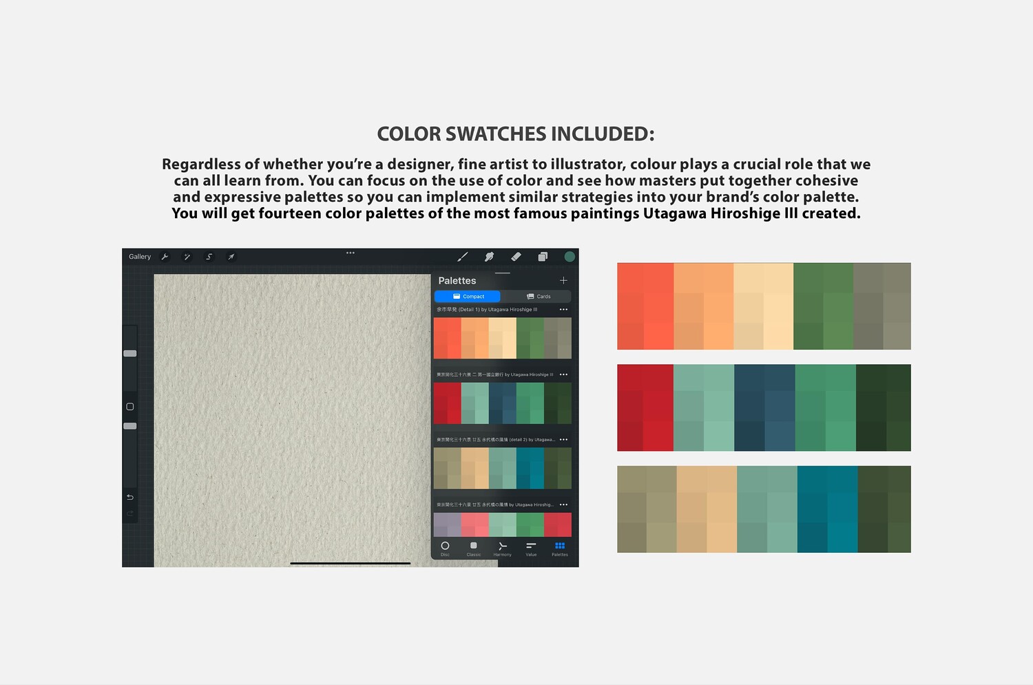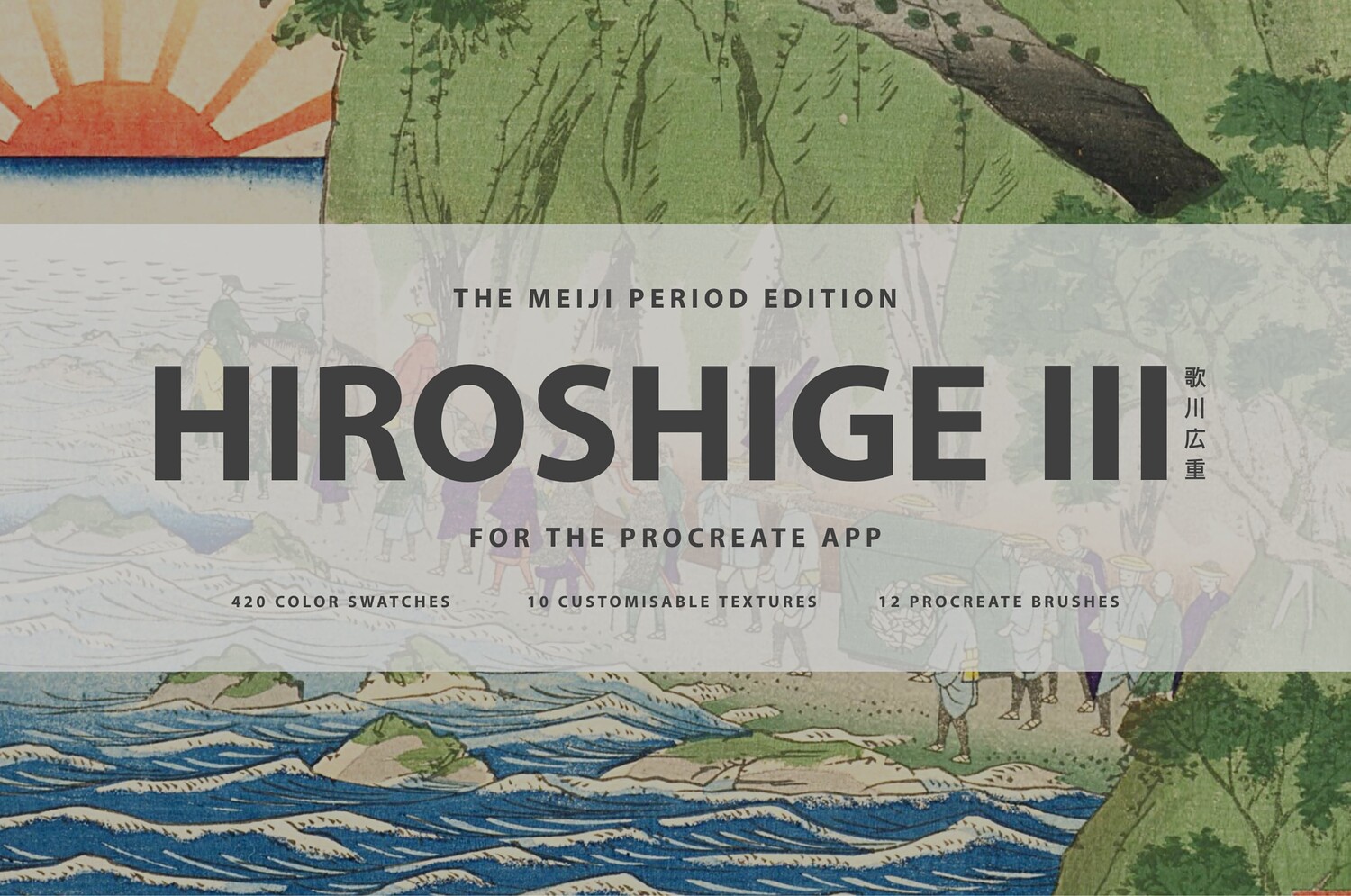 Hiroshige III Procreate Kit (Procreate Brushes, Woodblock Print Textures & Color Palettes)