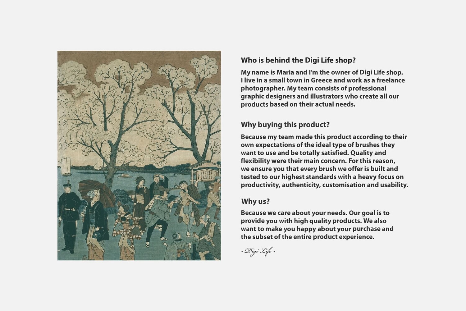 INCLUDED: - 420 Procreate Color Swatches - 12 Procreate Brushes (.brush & .brushset) - ** Free Sample:** https://shorturl.at/hHP19 - 10 Ukiyo-e Textures (.PNG files) inspired by the original textures Hiroshige III used. - Dimensions: 3,210 x 4,680 px - in 300 DPI - in RGB - Spotify Playlist Link - Experience the effect of Japanese music on painting quality - Free Support 24/7