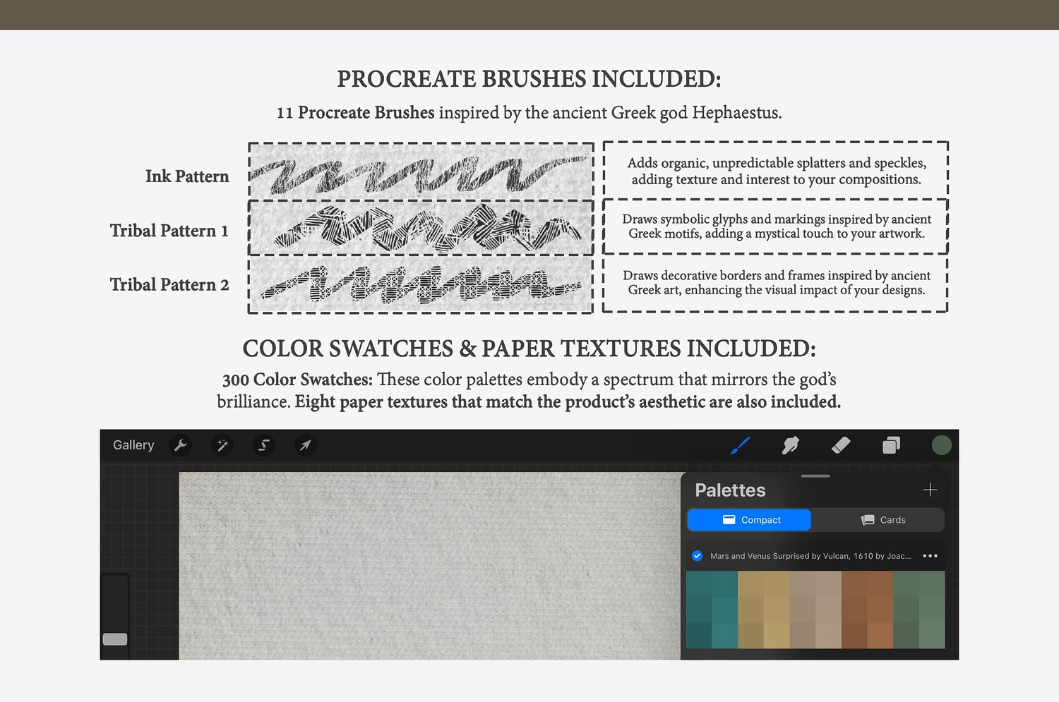 Hephaestus Procreate Kit (Procreate Brushes, Color Palettes & Paper Textures)