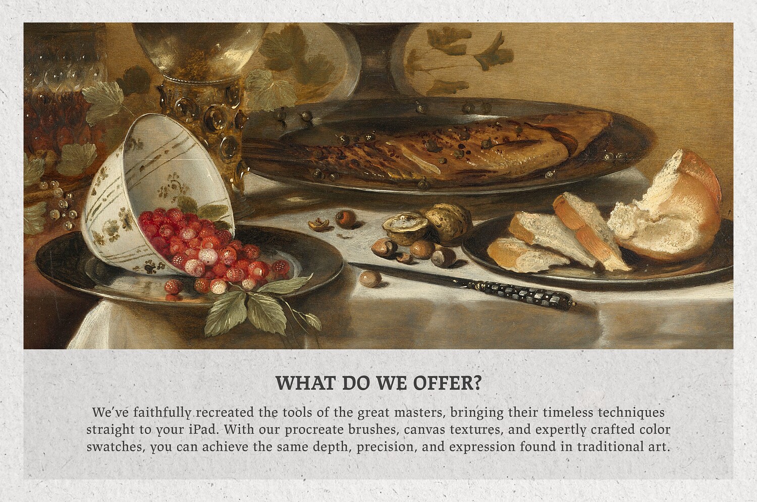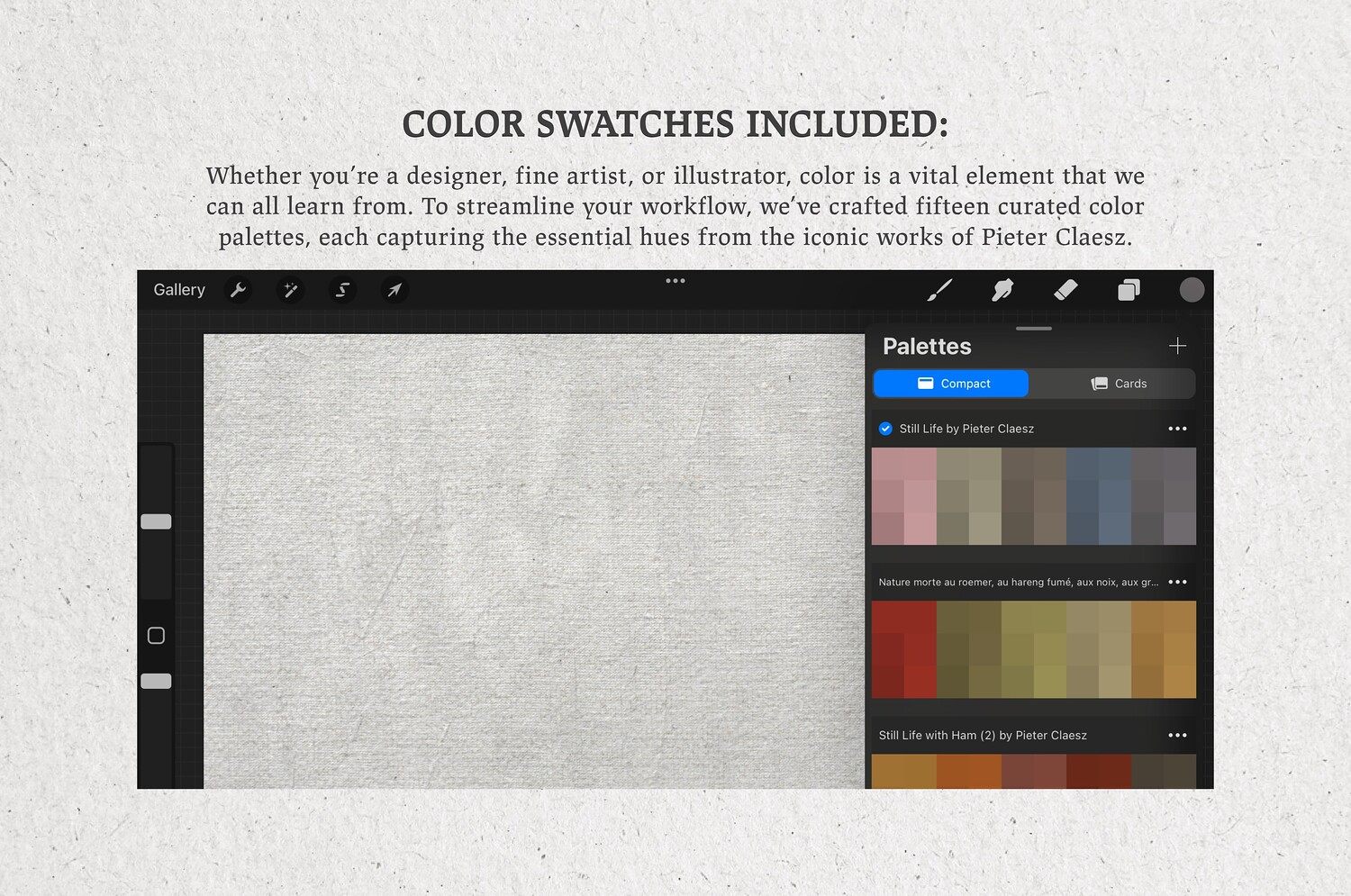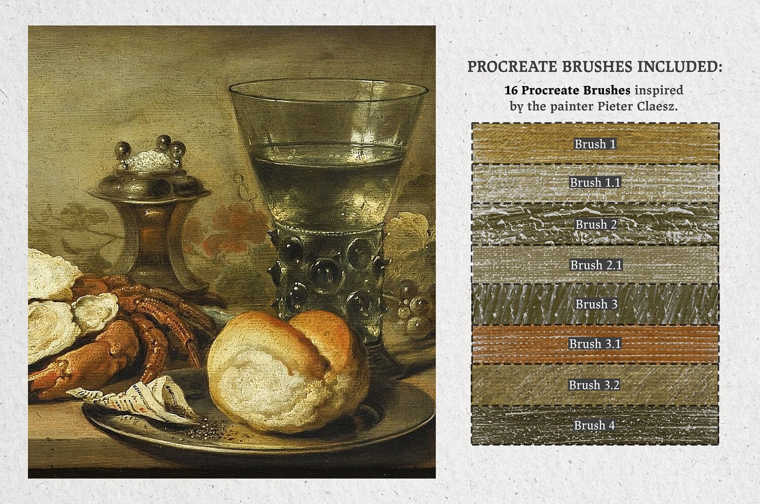 Free Sample - Pieter Claesz Procreate Kit (Procreate Brushes, Color Palettes & Canvas Textures)