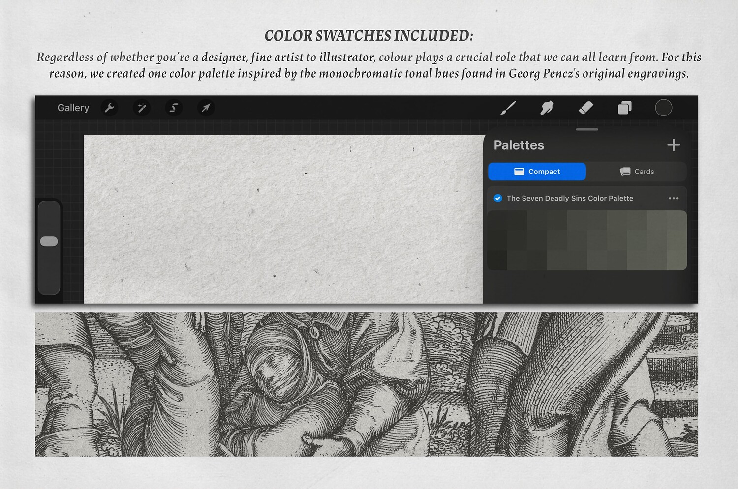 Seven Deadly Sins Procreate Kit (Engraving Procreate Brushes, Paper Textures & Color Palette)